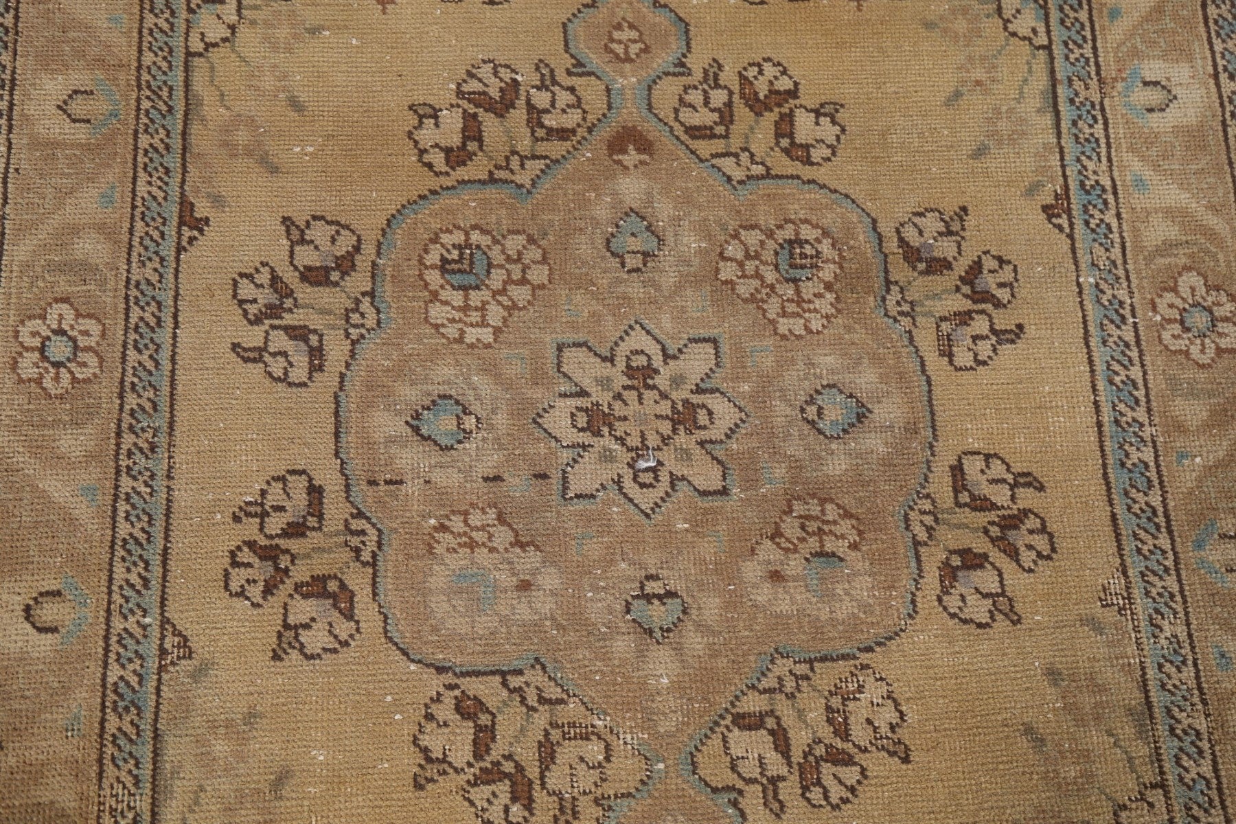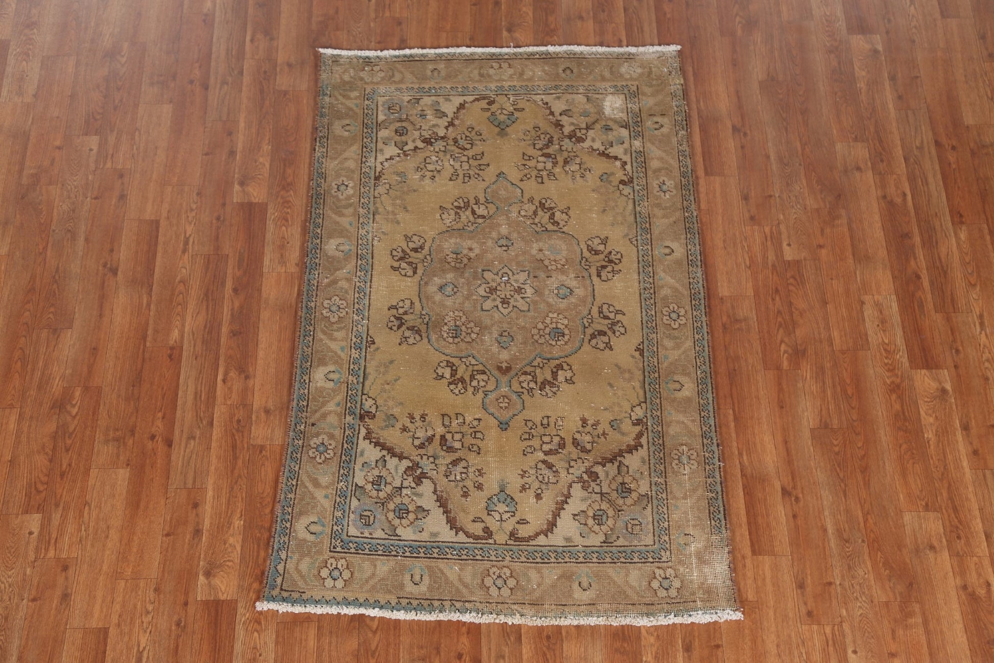 A Beautiful Genuine Persia ( Persia ) Tabriz rug is Hand Knotted by skillful weavers in Persia ( Persia ) with 100% Wool Material. This rug is in Very Good (Evenly Low Pile Or Worn) condition. dimensions are 5' 0'' X 3' 2'' in foot and 152 X 97 in centimeter. the primary color is Brown.