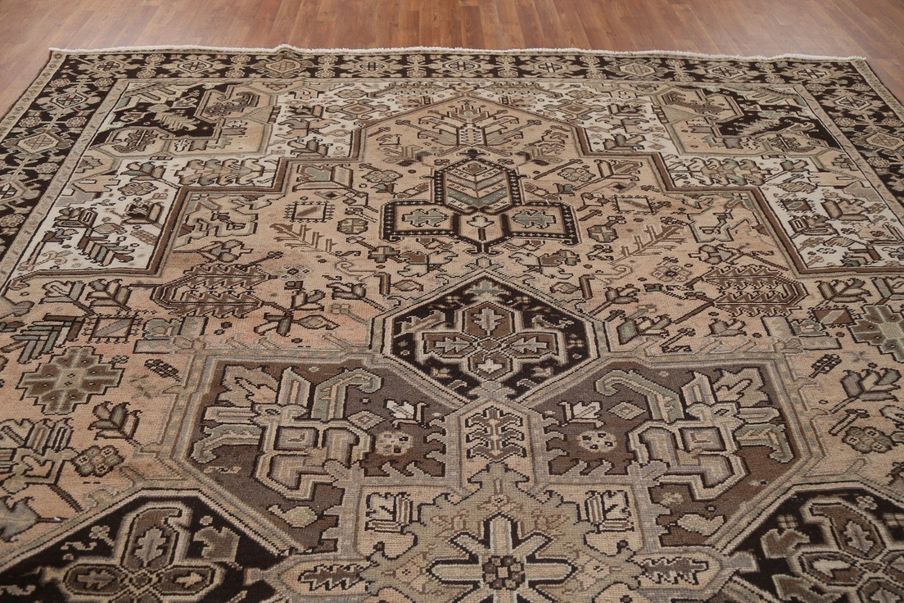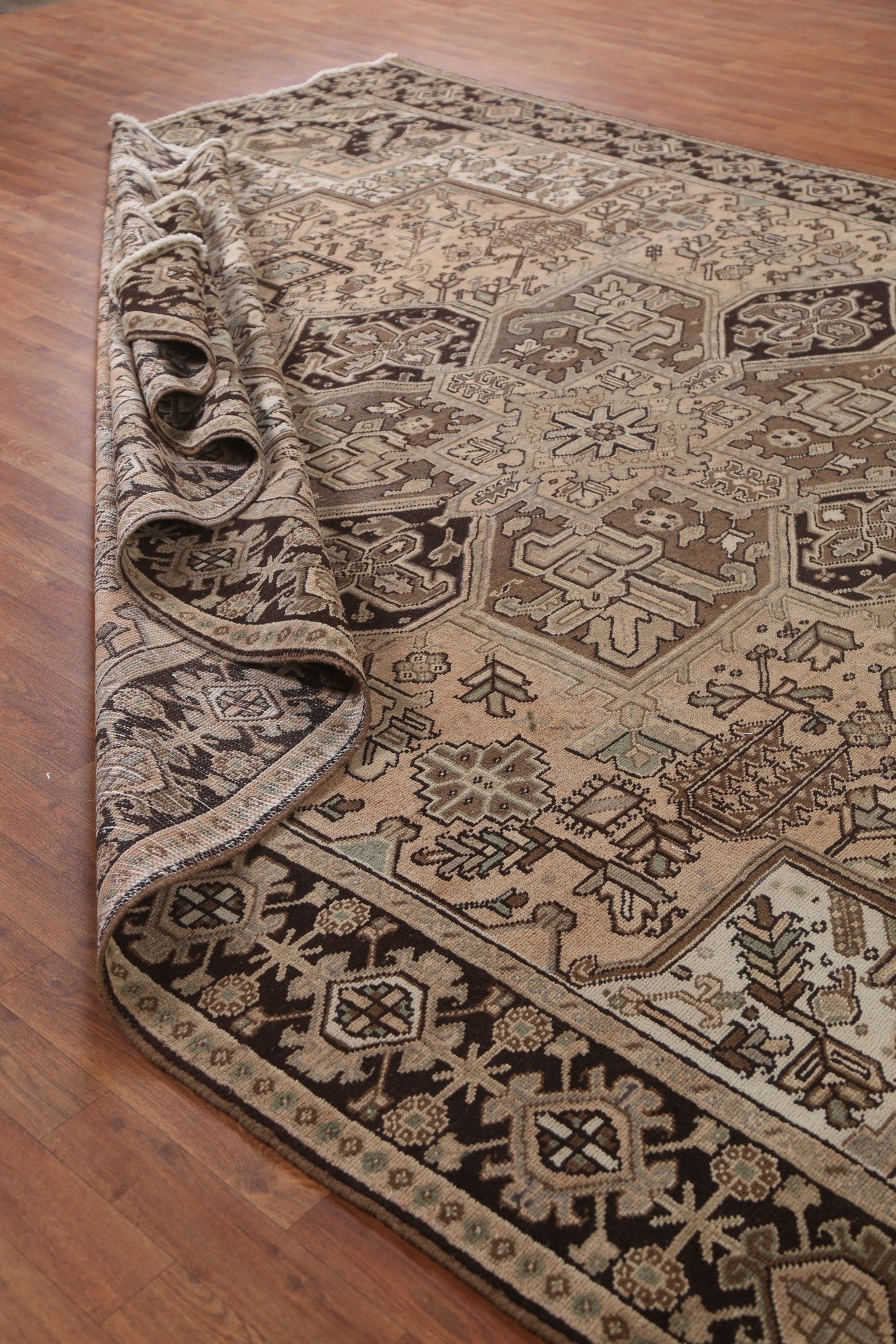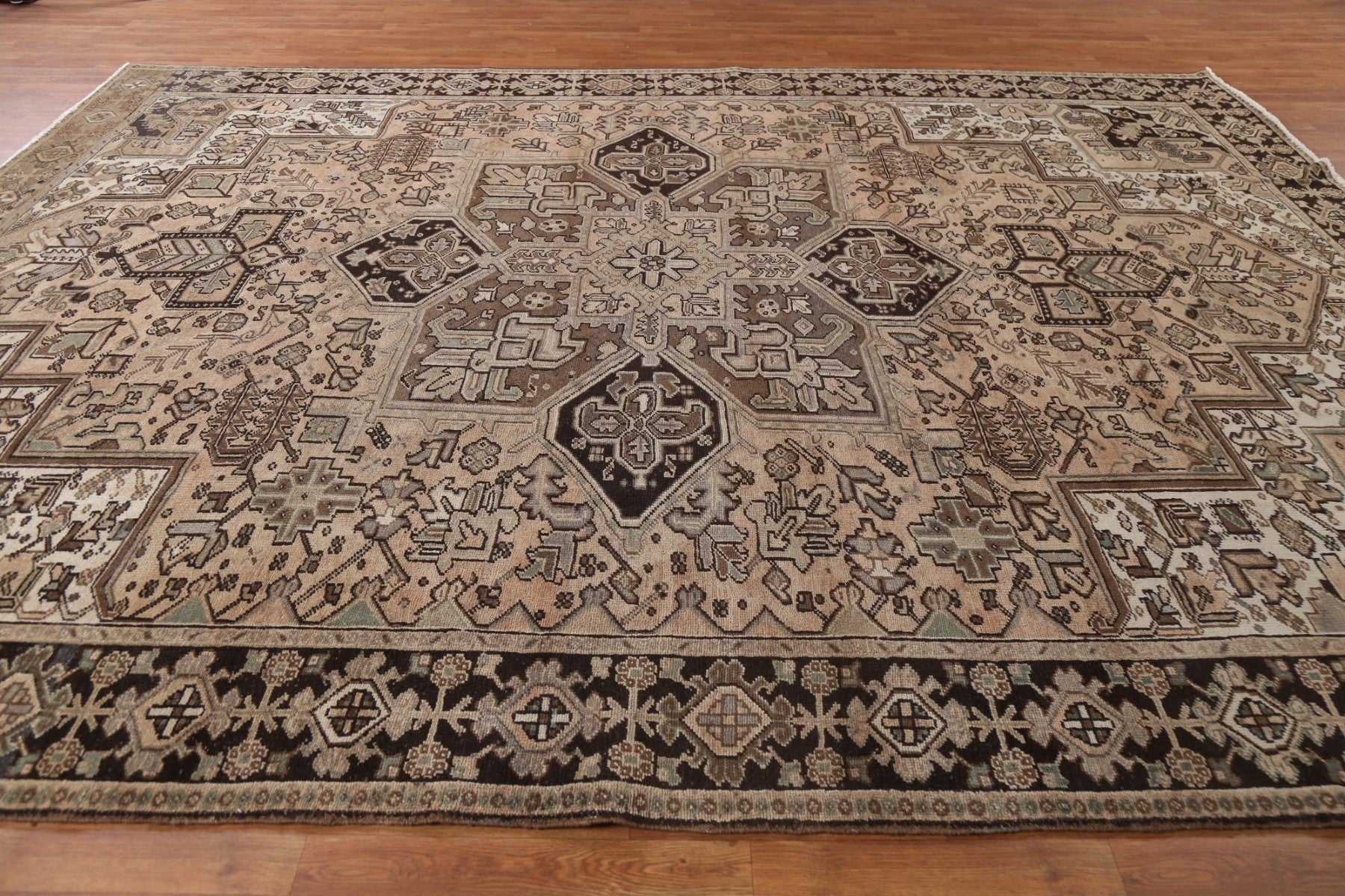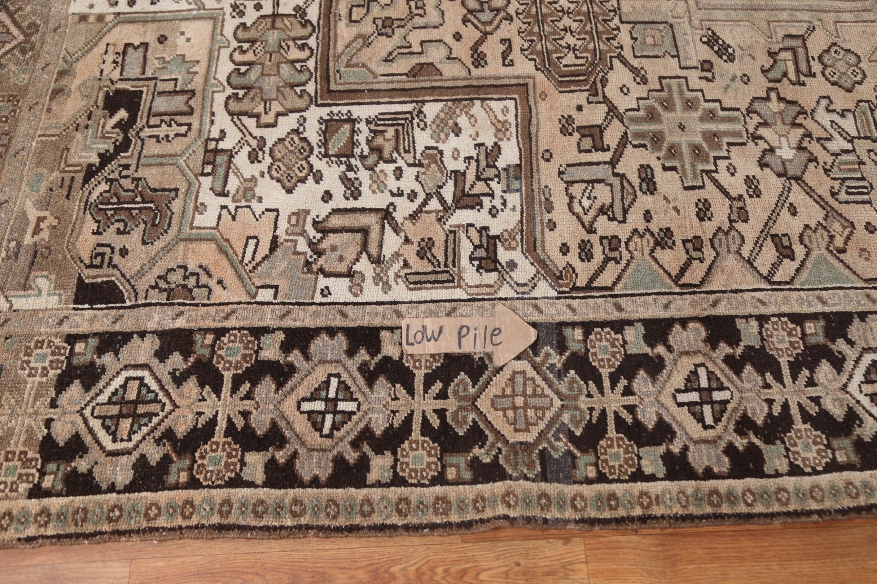 A Beautiful Genuine Persia ( Persia ) Heriz rug is Hand Knotted by skillful weavers in Persia ( Persia ) with 100% Wool Material. This rug is in Very Good (Low Pile-Abrash) condition. dimensions are 12' 5'' X 9' 9'' in foot and 378 X 297 in centimeter. the primary color is Pink.