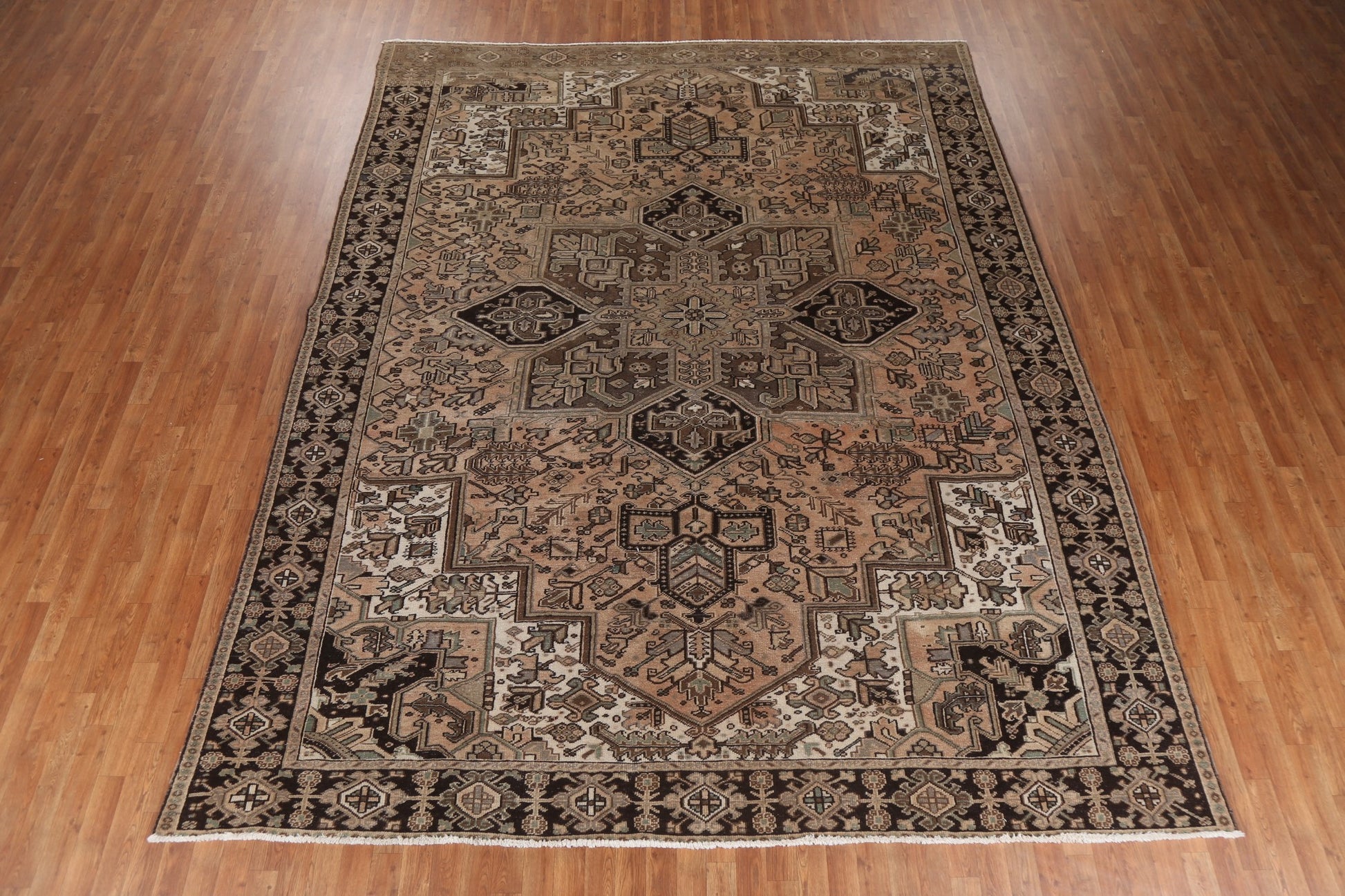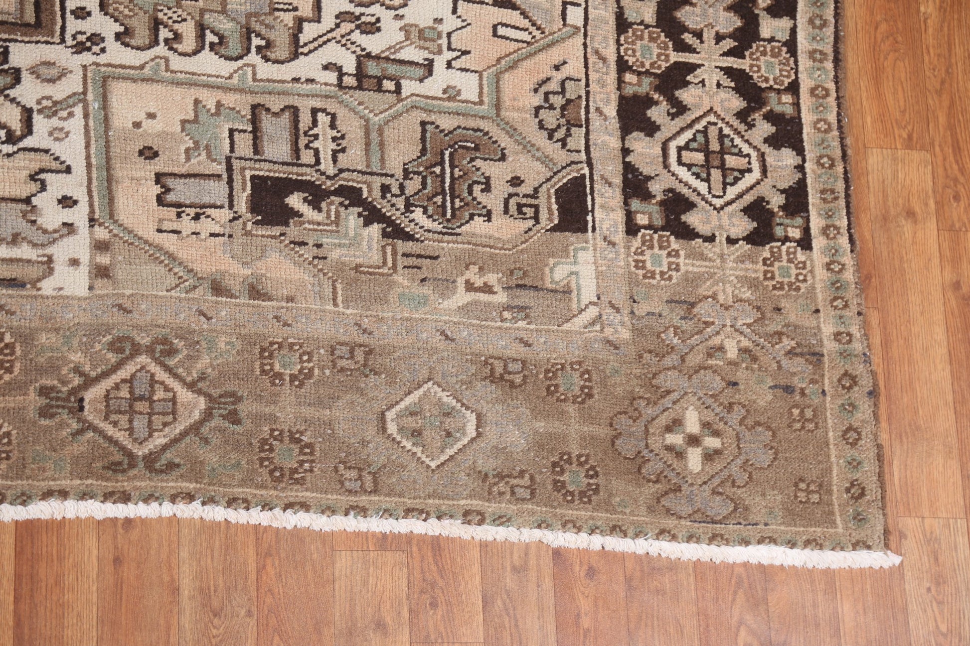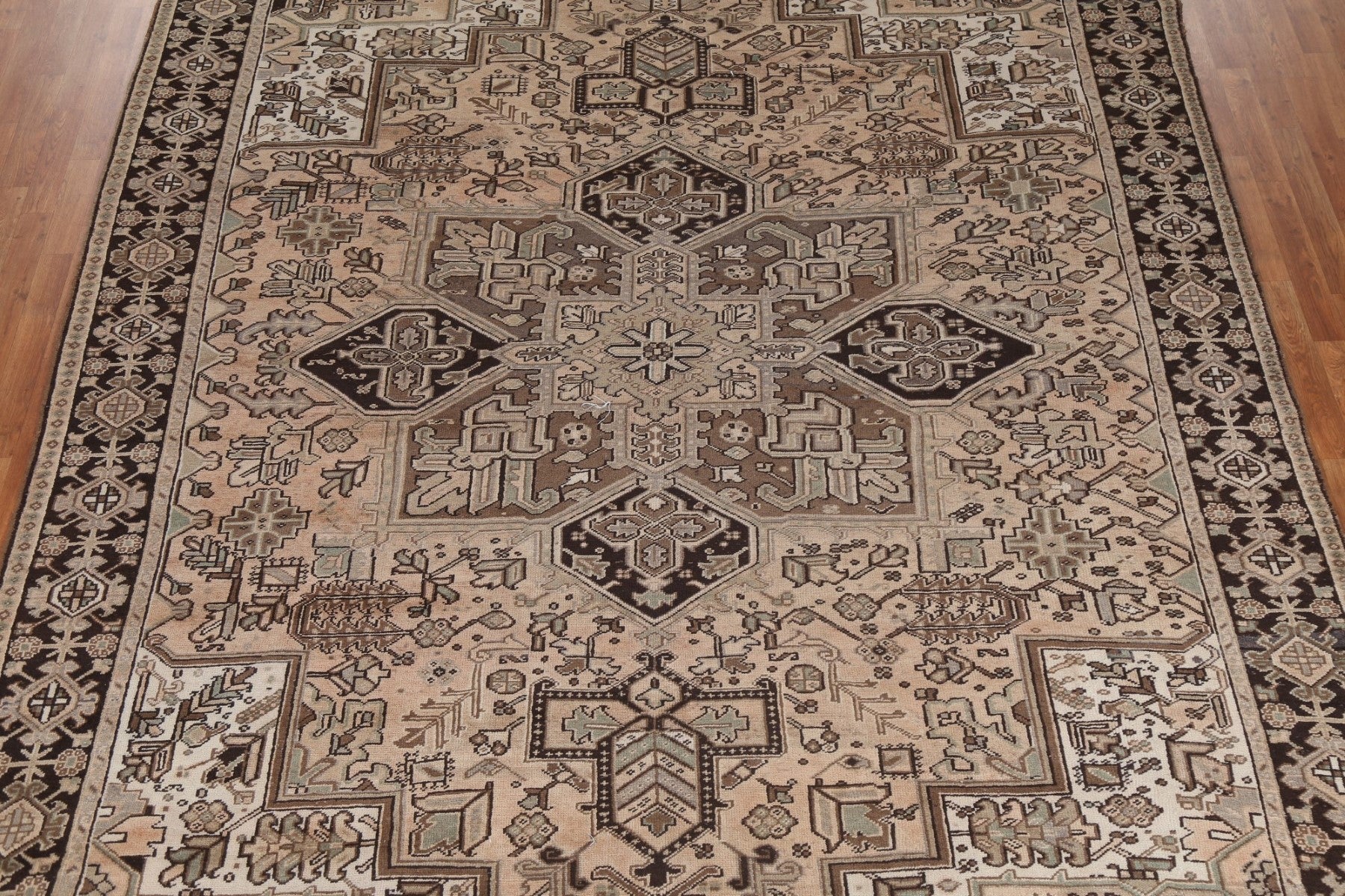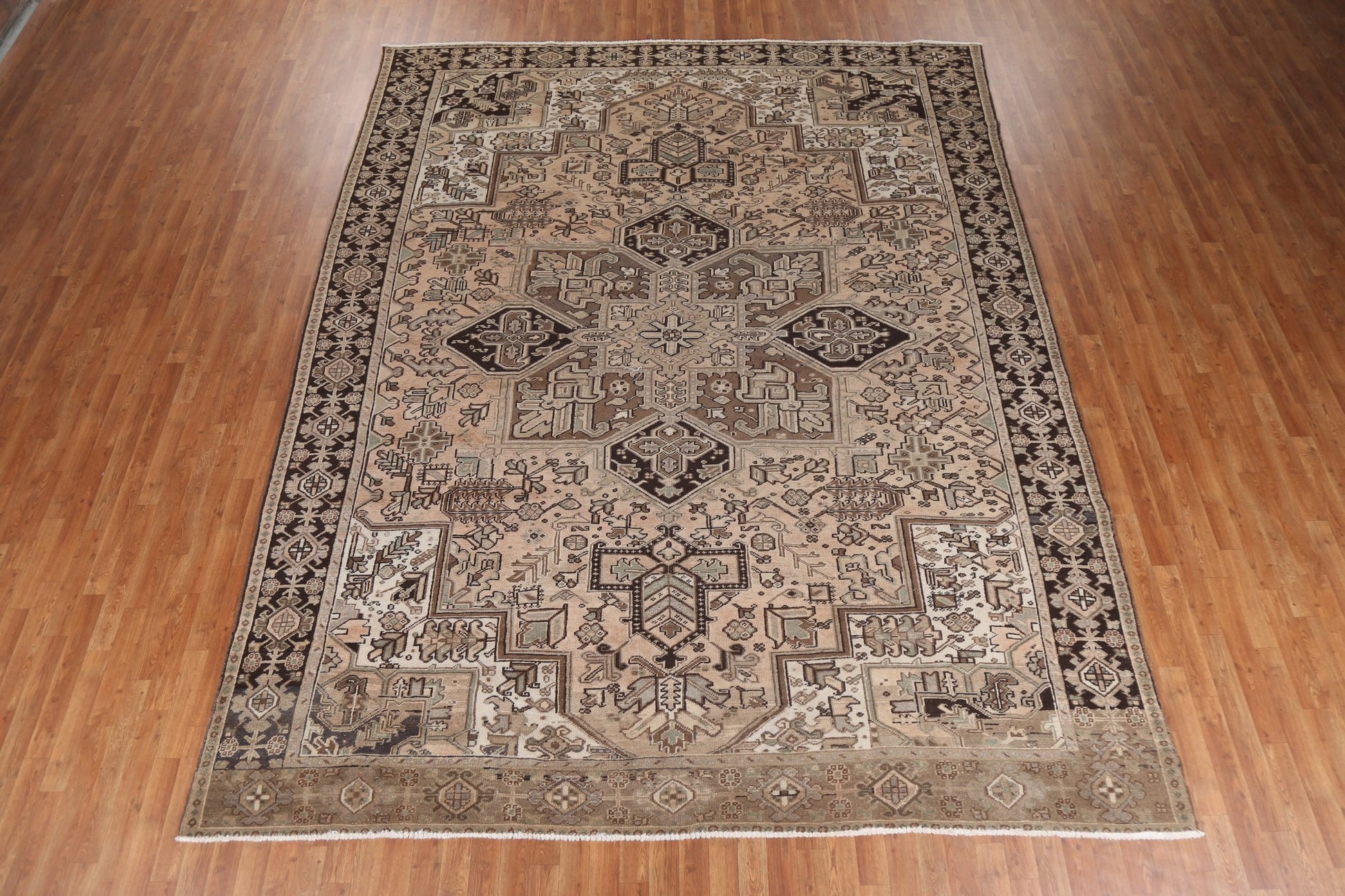 A Beautiful Genuine Persia ( Persia ) Heriz rug is Hand Knotted by skillful weavers in Persia ( Persia ) with 100% Wool Material. This rug is in Very Good (Low Pile-Abrash) condition. dimensions are 12' 5'' X 9' 9'' in foot and 378 X 297 in centimeter. the primary color is Pink.