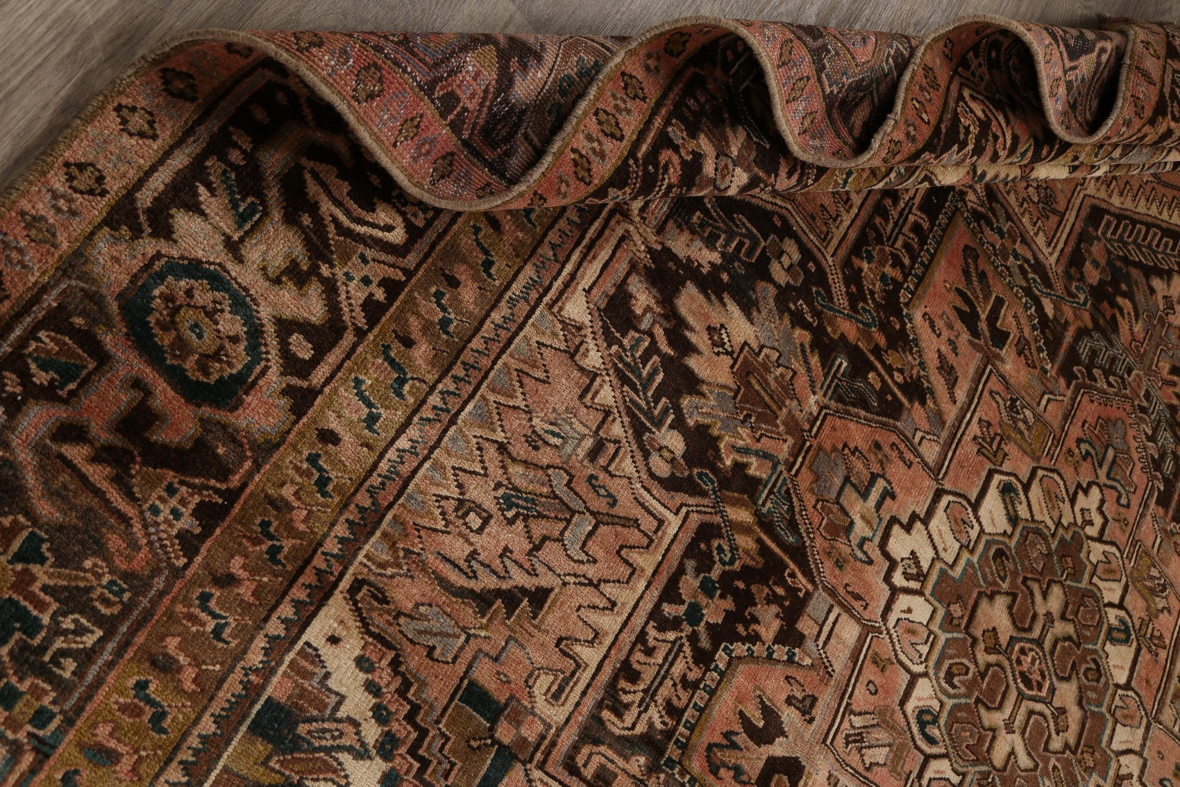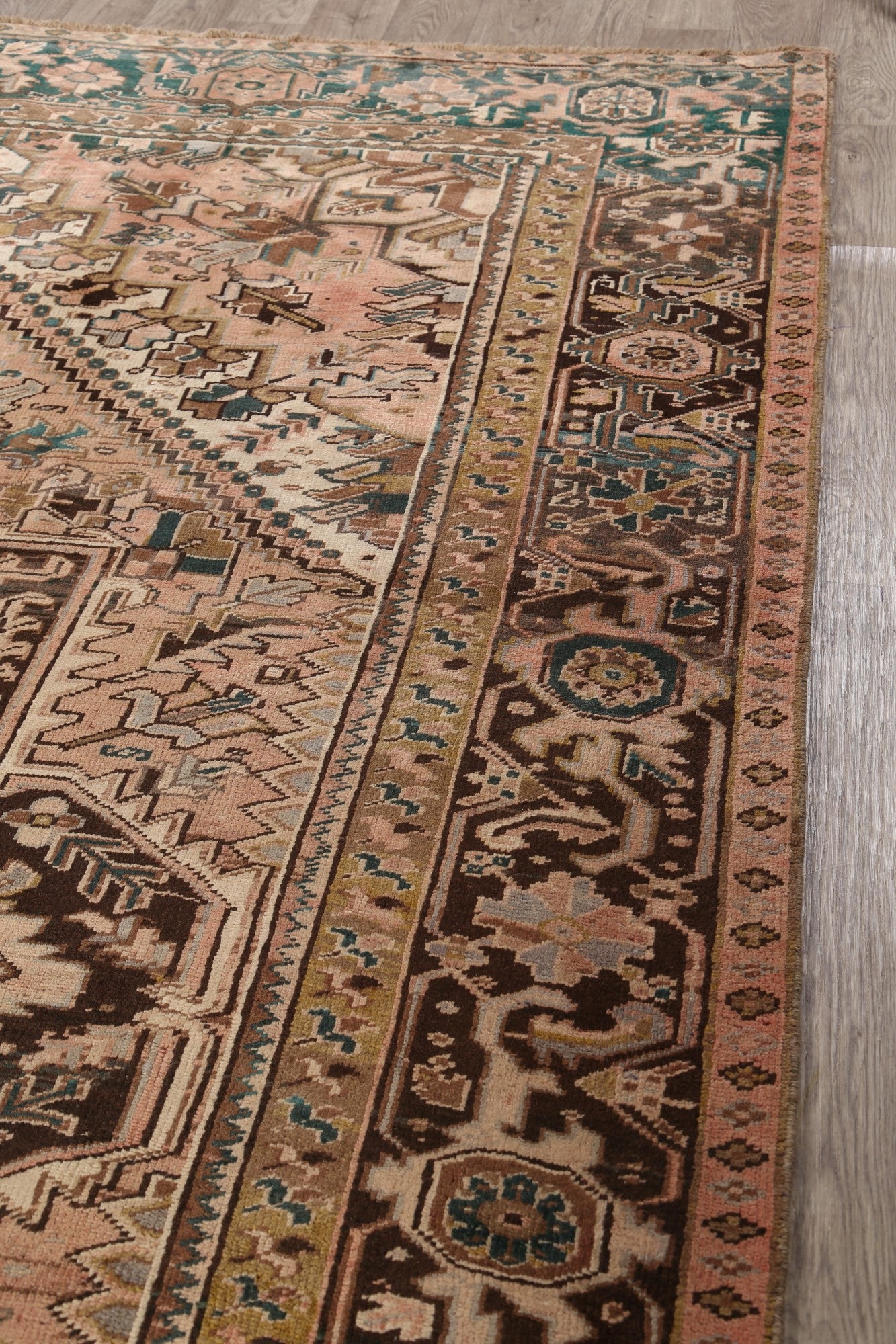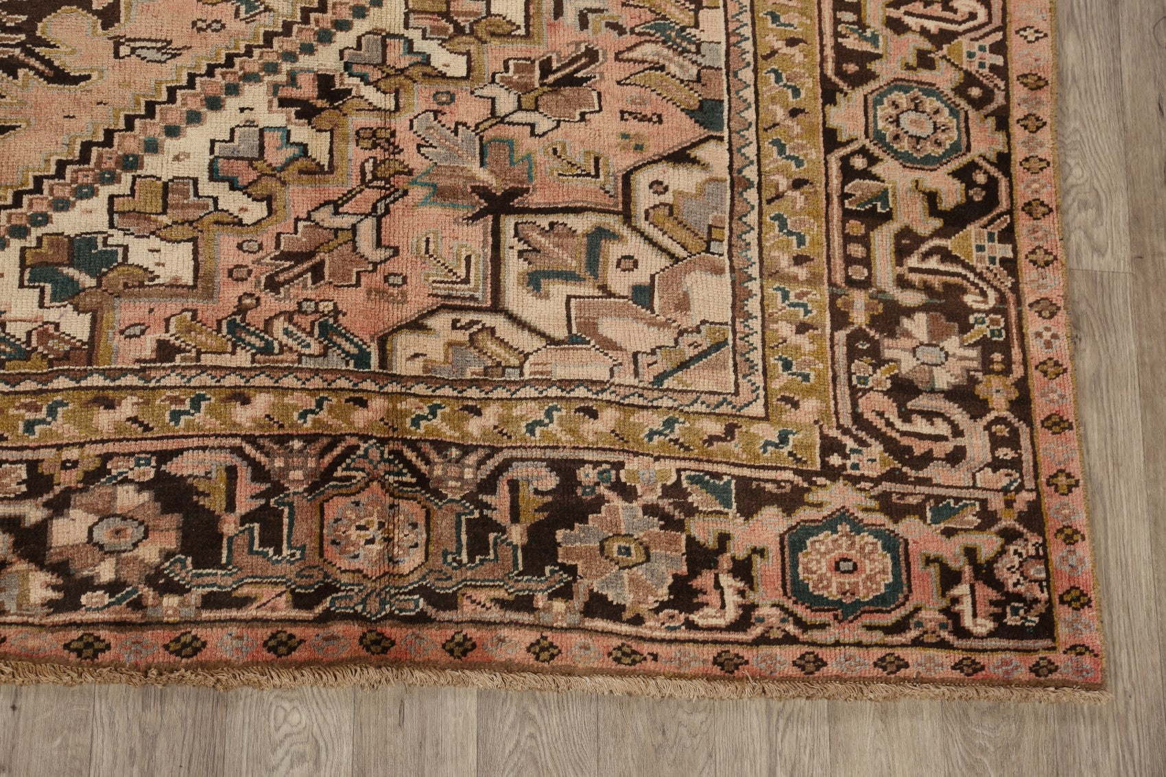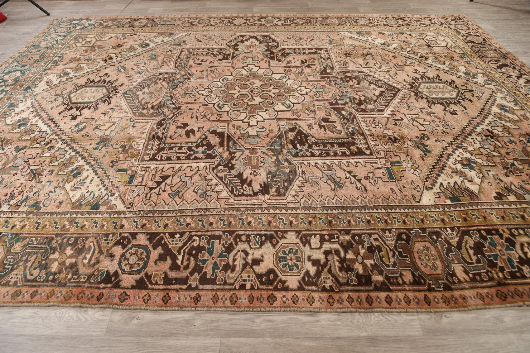 A Beautiful Genuine Persia ( Persia ) Heriz rug is Hand Knotted by skillful weavers in Persia ( Persia ) with 100% Wool Material. This rug is in Very Good condition. dimensions are 12' 3'' X 9' 9'' in foot and 373 X 297 in centimeter. the primary color is Peach.