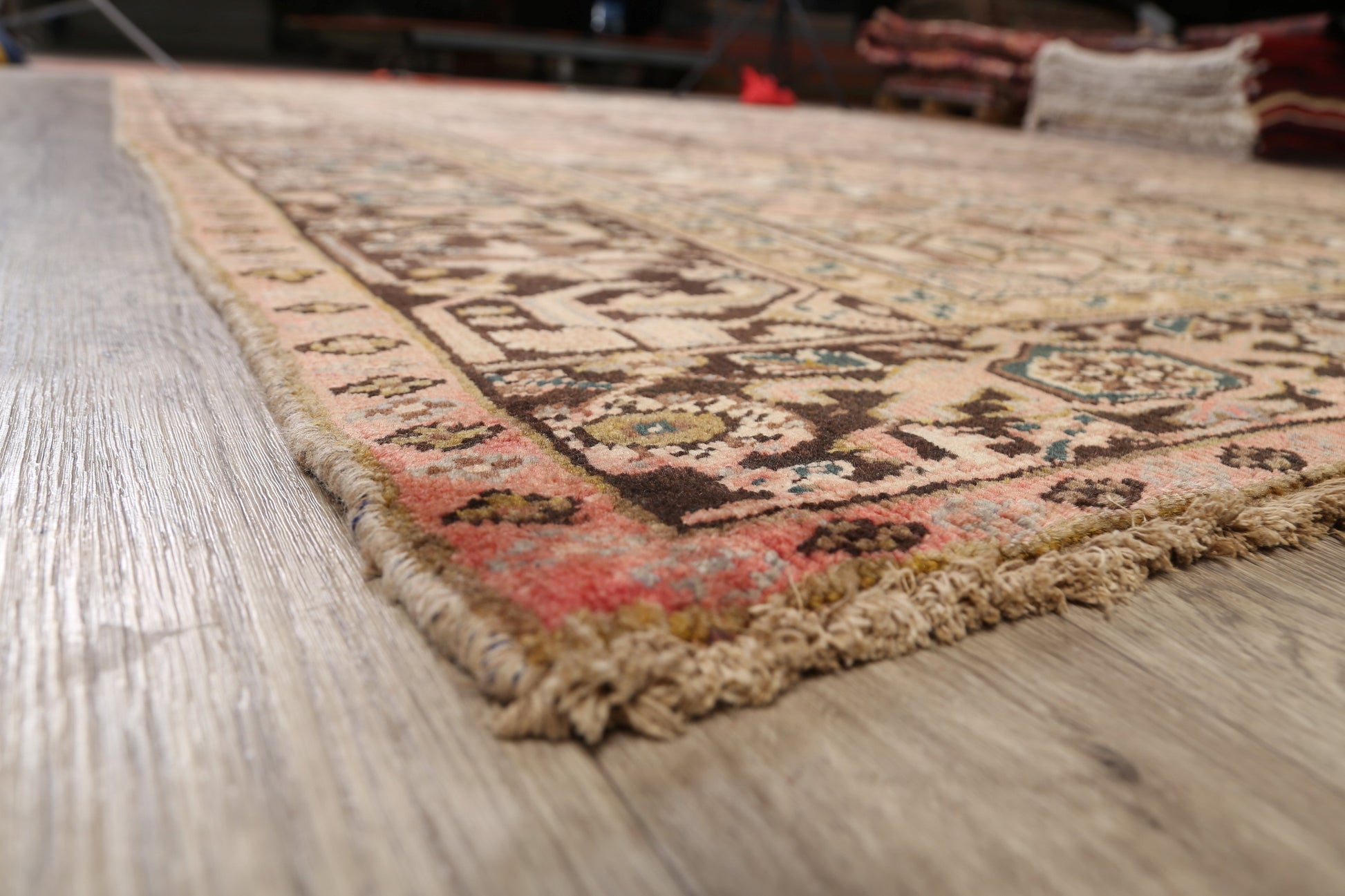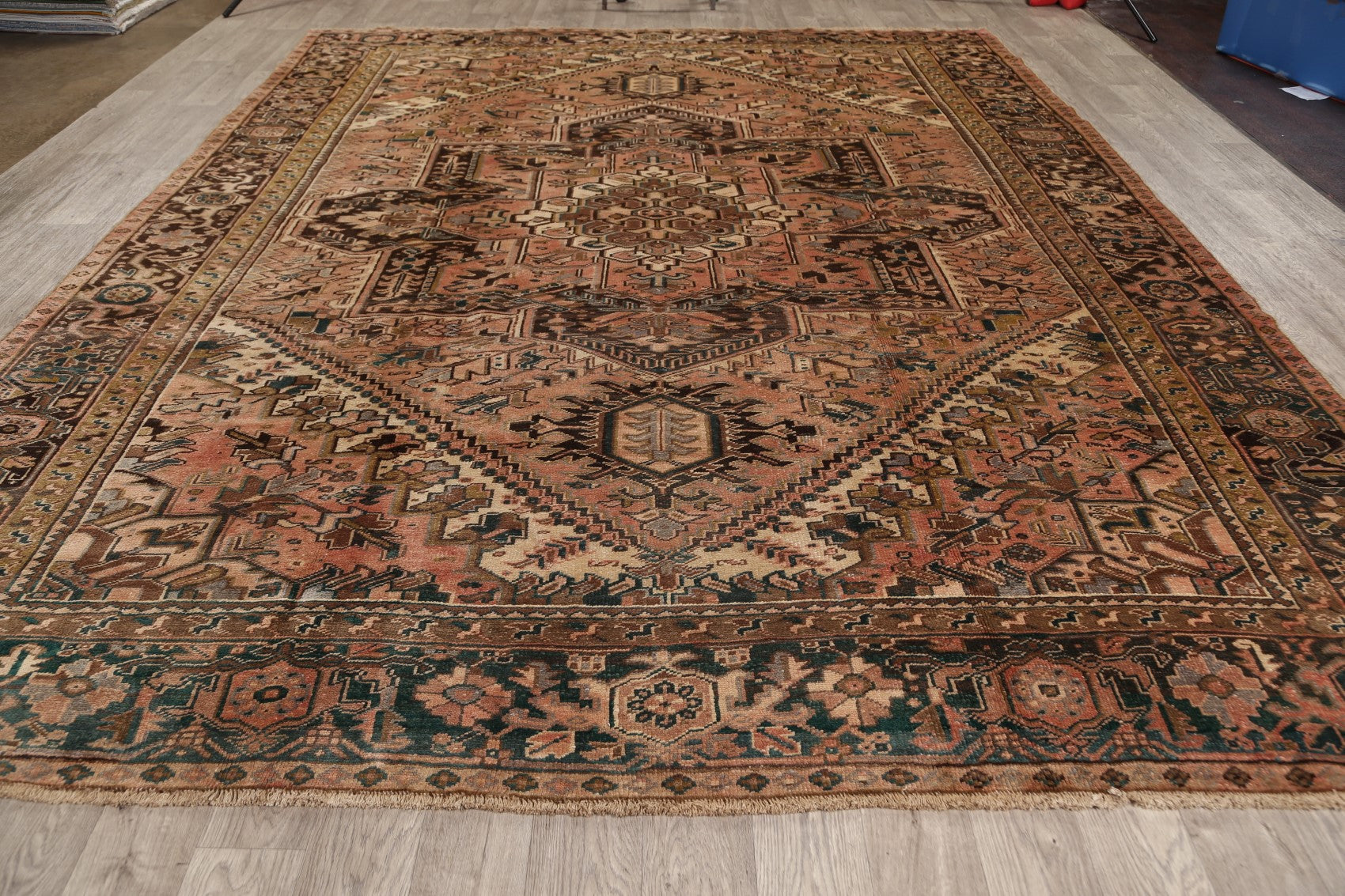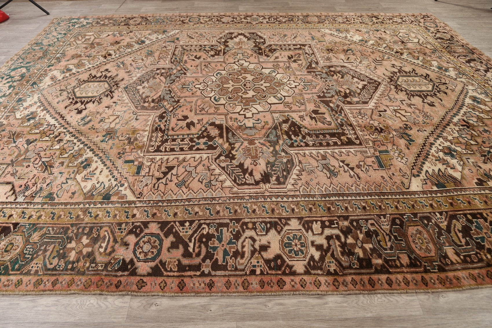 A Beautiful Genuine Persia ( Persia ) Heriz rug is Hand Knotted by skillful weavers in Persia ( Persia ) with 100% Wool Material. This rug is in Very Good condition. dimensions are 12' 3'' X 9' 9'' in foot and 373 X 297 in centimeter. the primary color is Peach.