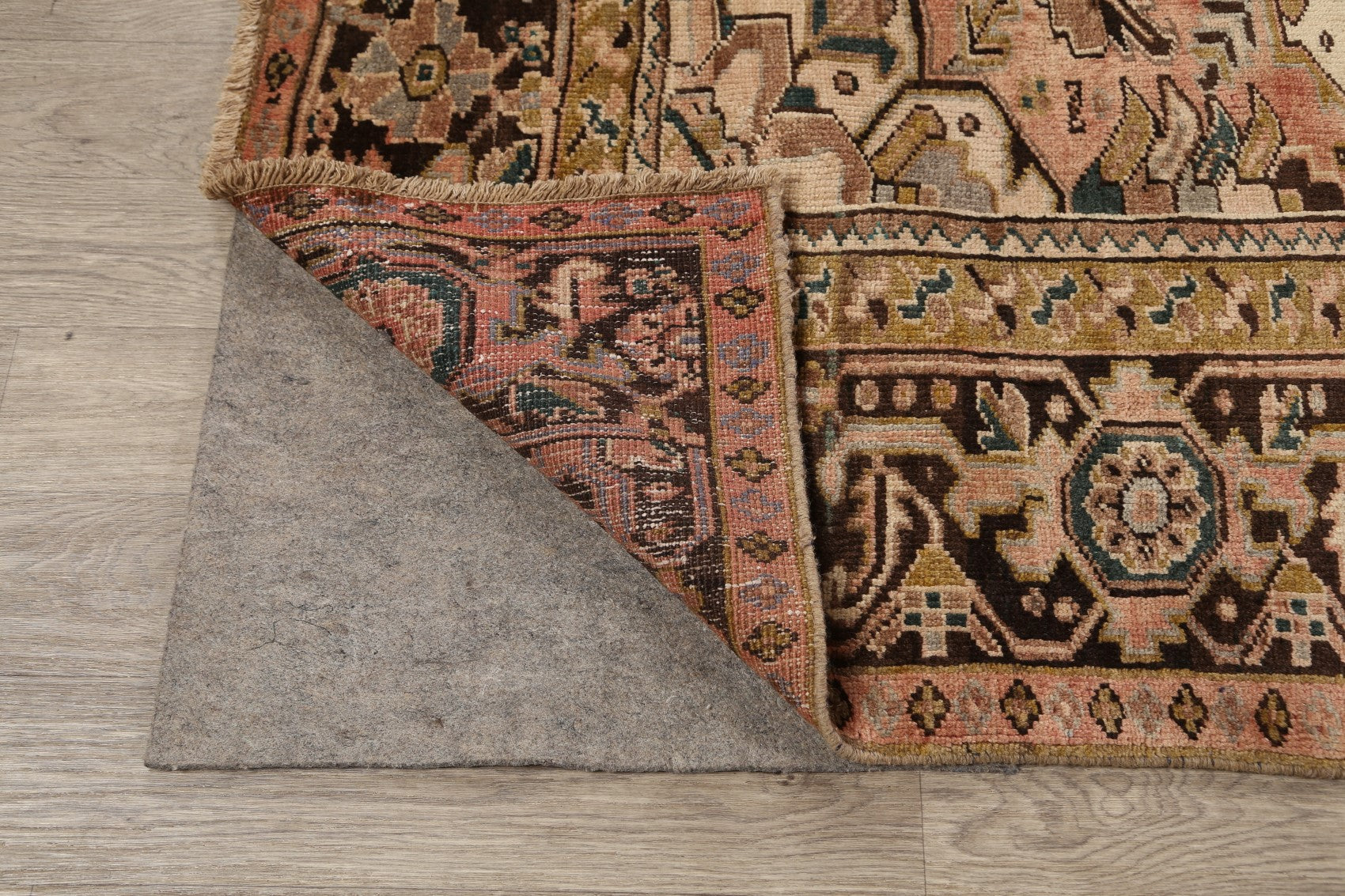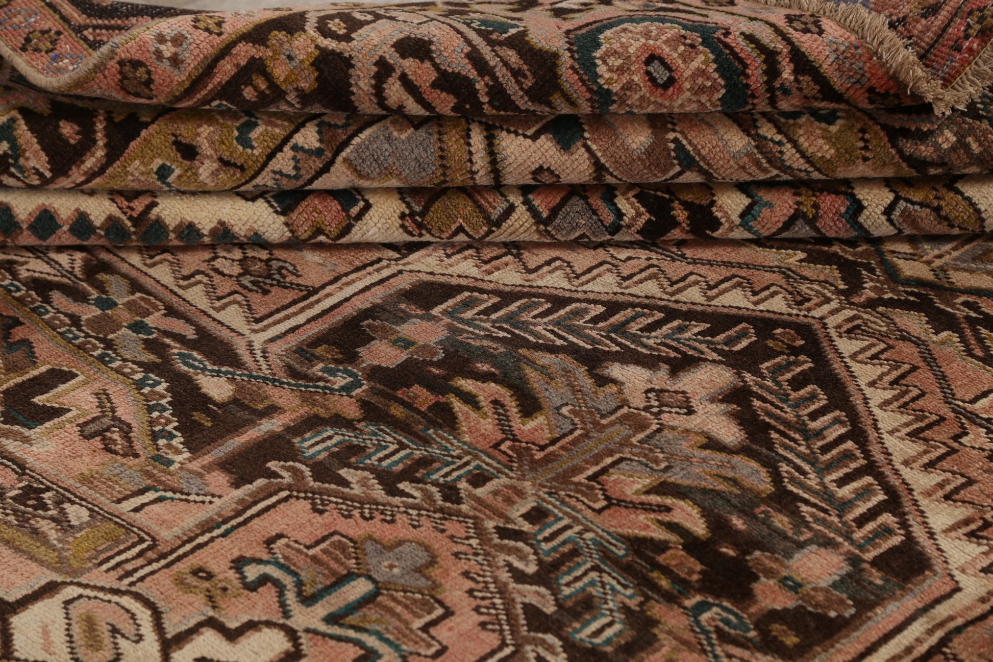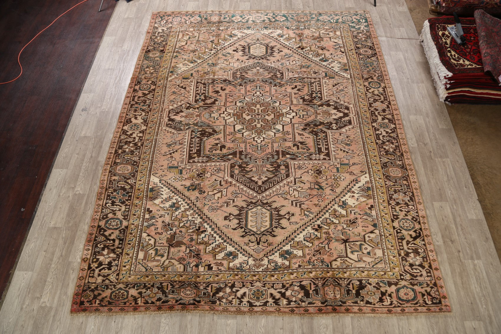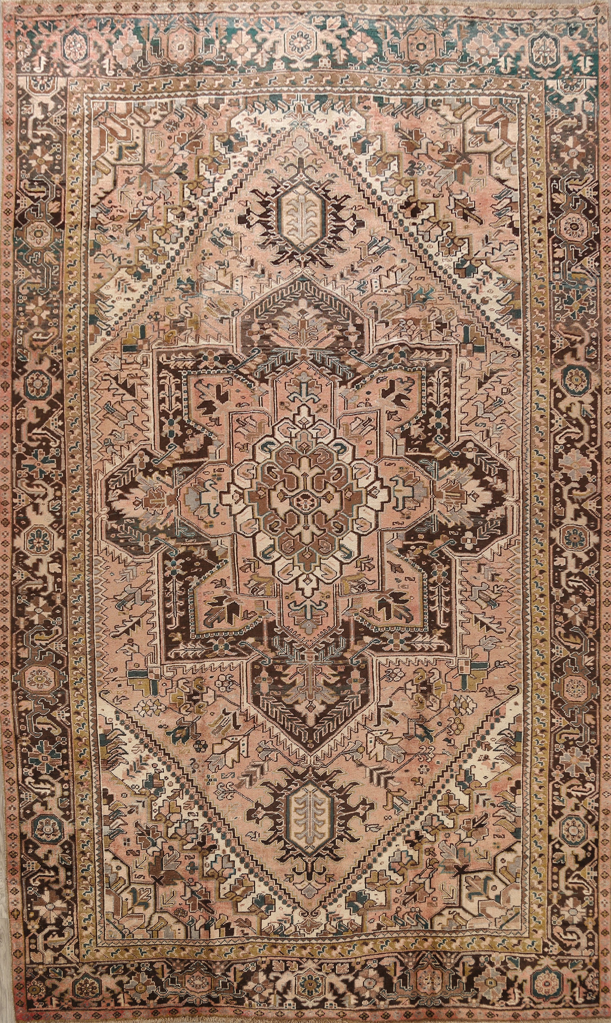 A Beautiful Genuine Persia ( Persia ) Heriz rug is Hand Knotted by skillful weavers in Persia ( Persia ) with 100% Wool Material. This rug is in Very Good condition. dimensions are 12' 3'' X 9' 9'' in foot and 373 X 297 in centimeter. the primary color is Peach.