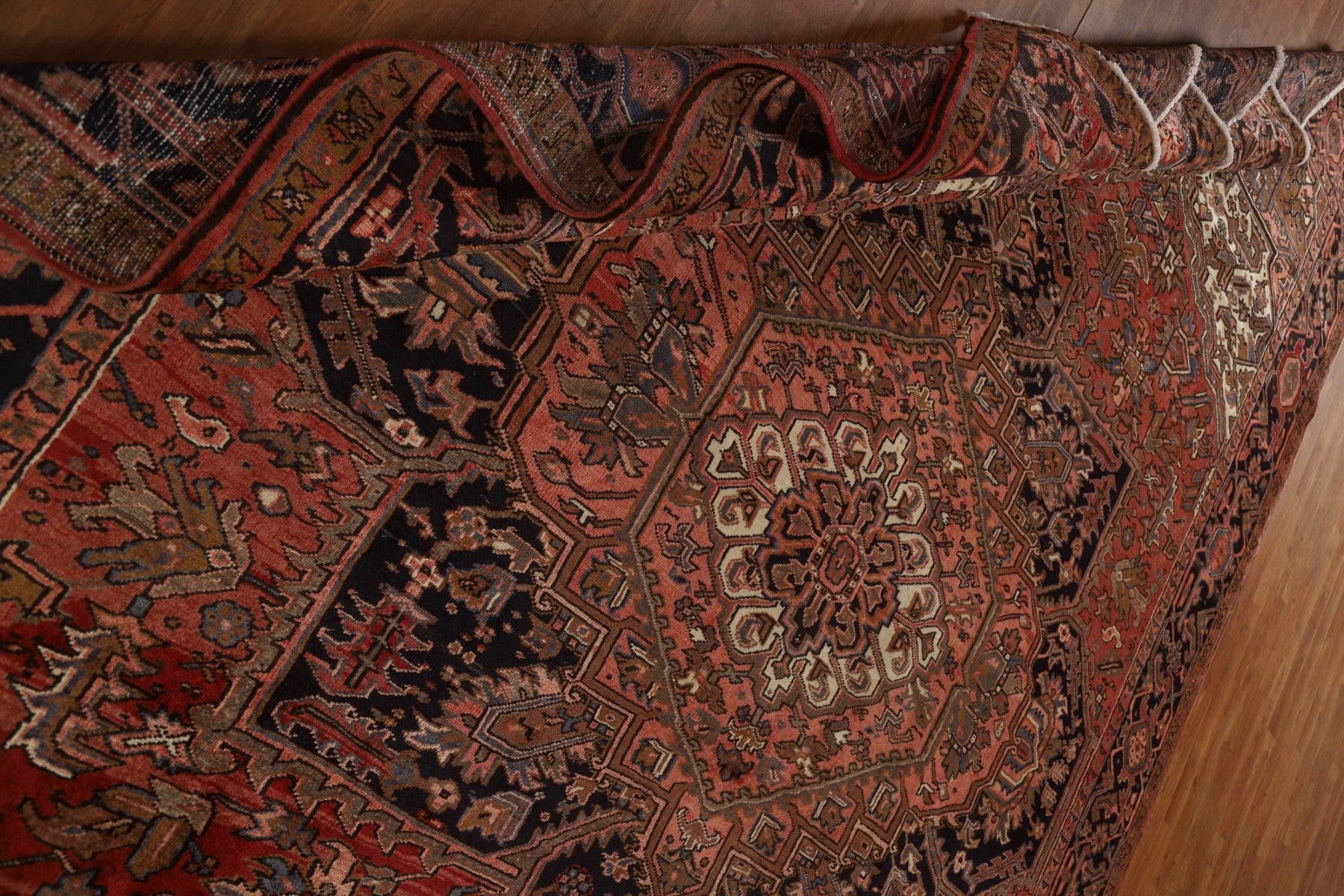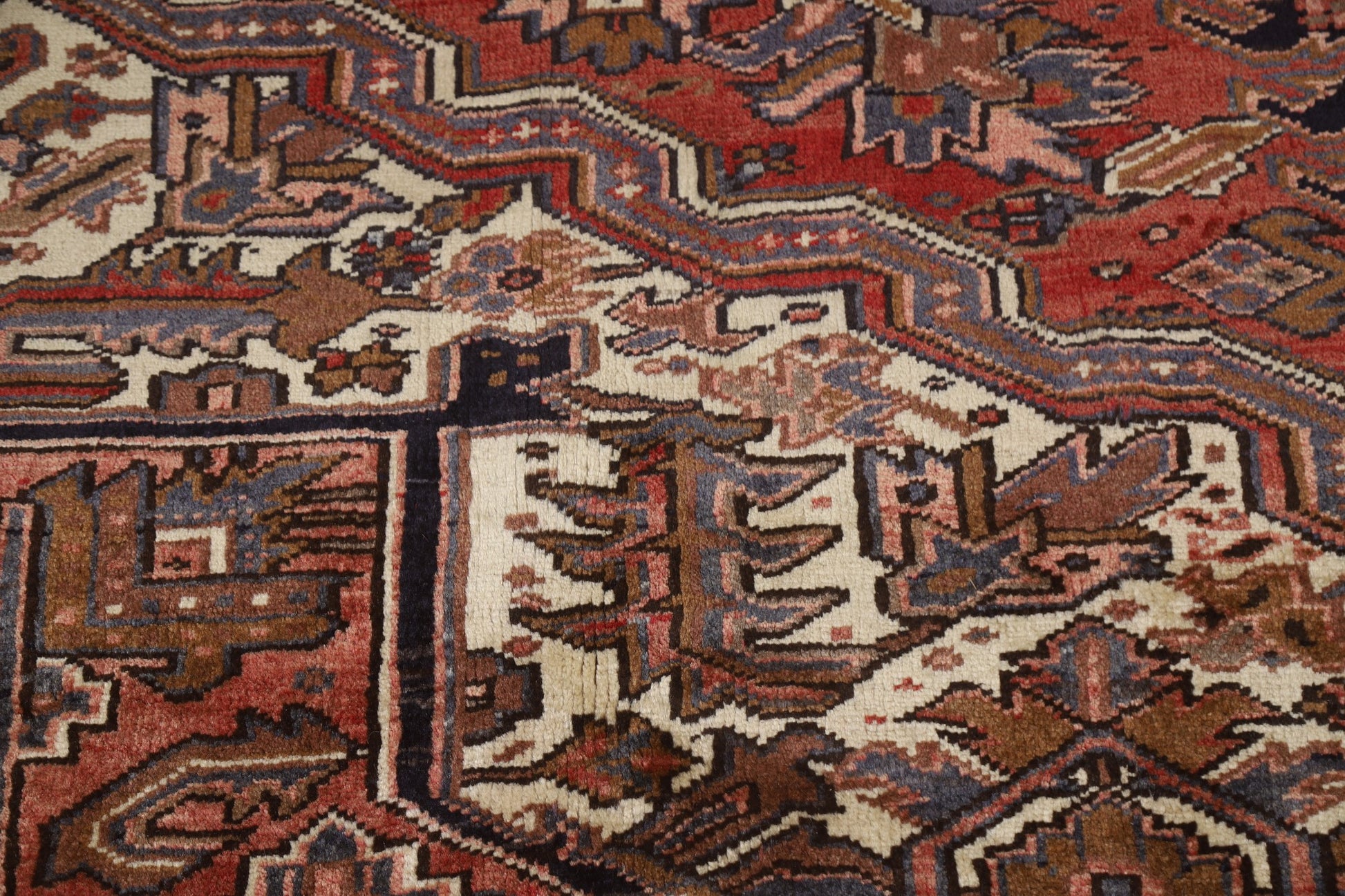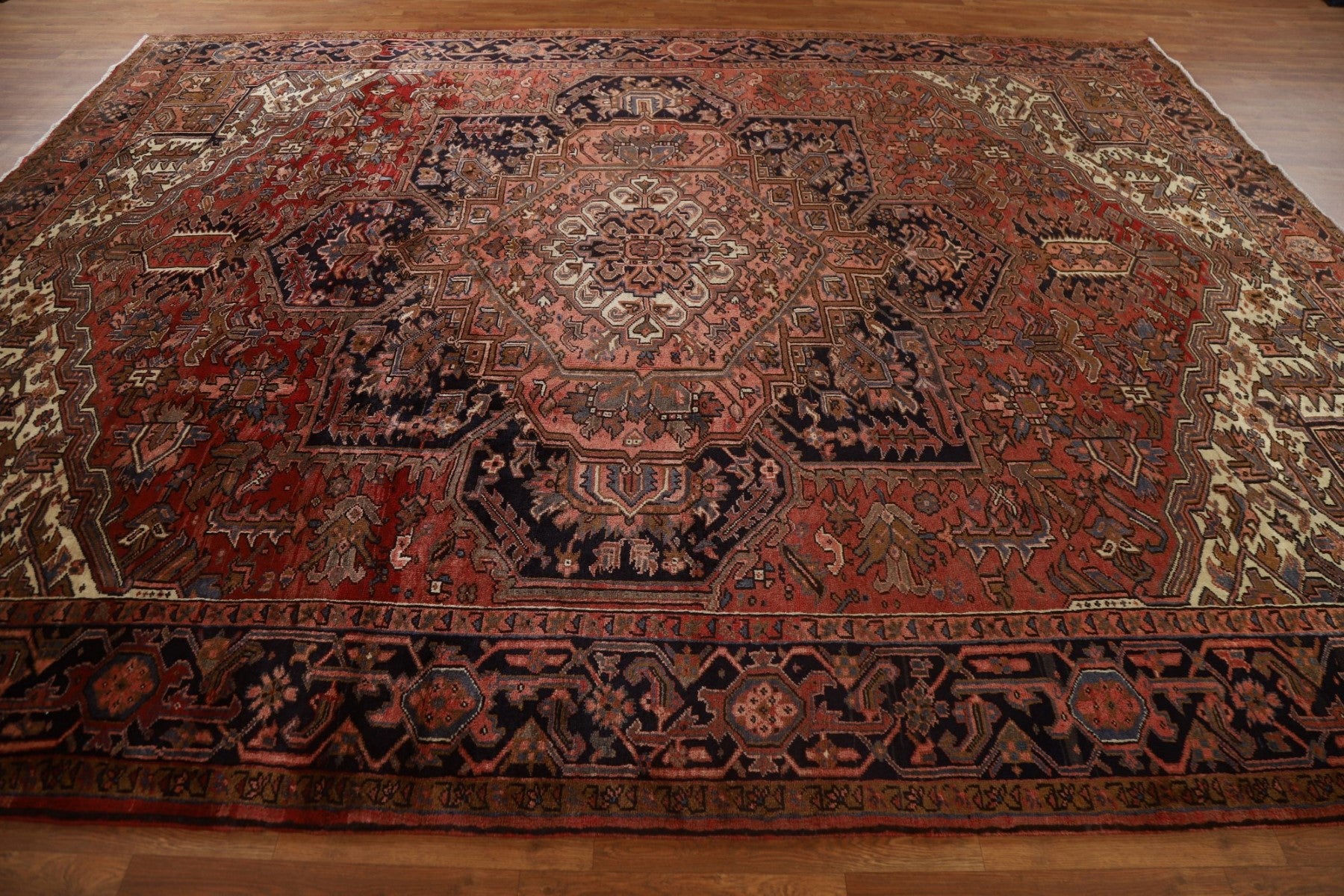 A Beautiful Genuine Persia ( Persia ) Heriz rug is Hand Knotted by skillful weavers in Persia ( Persia ) with 100% Wool Material. This rug is in Very Good (Abrash) condition. dimensions are 12' 9'' X 10' 0'' in foot and 389 X 305 in centimeter. the primary color is Red.