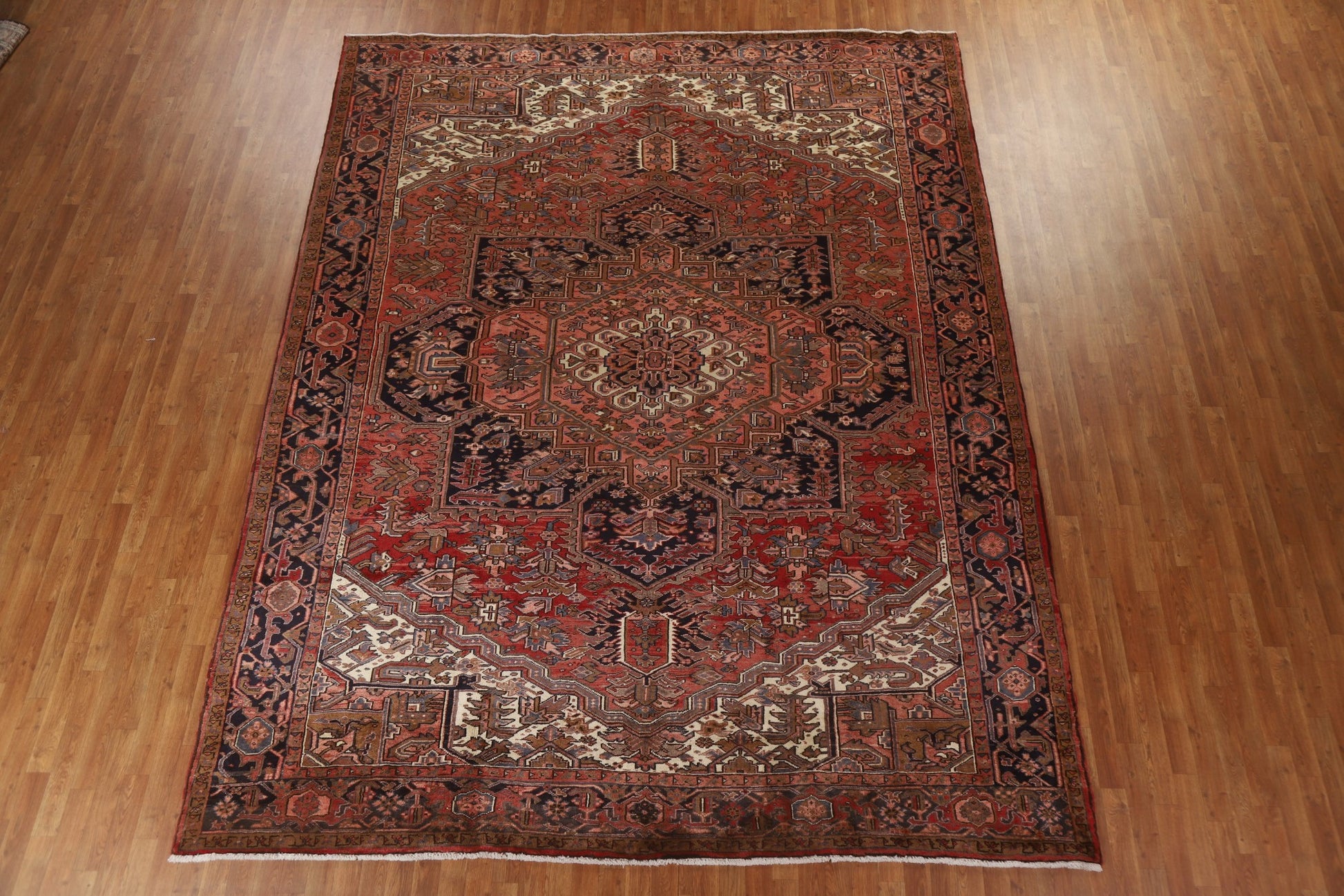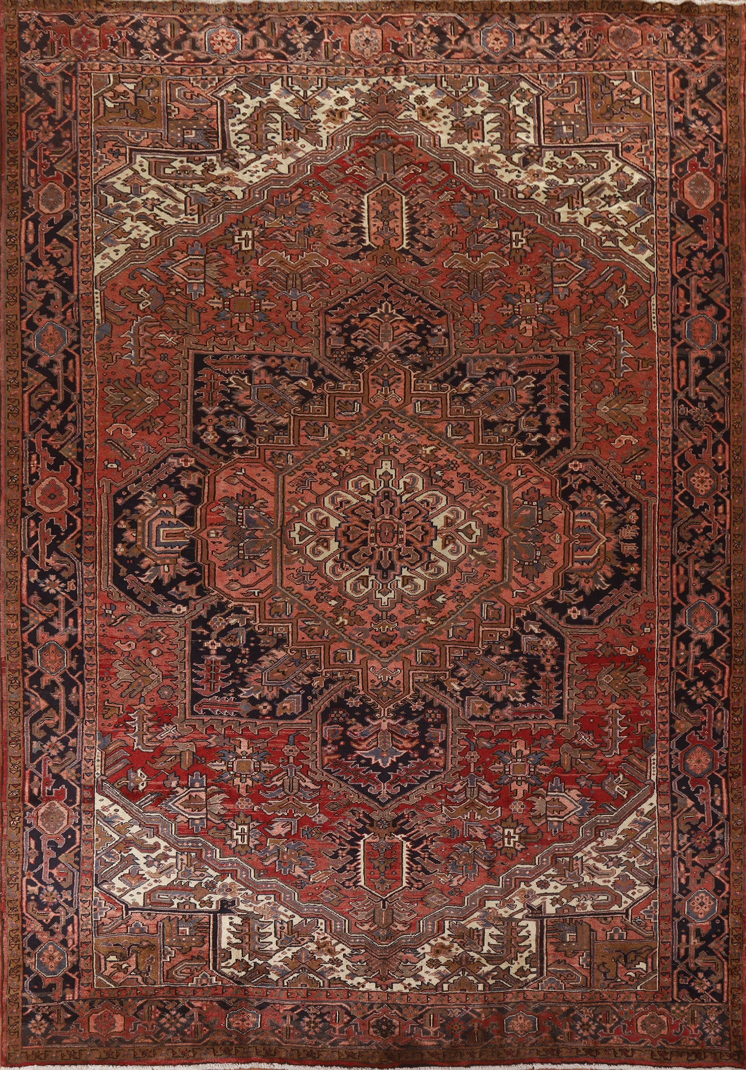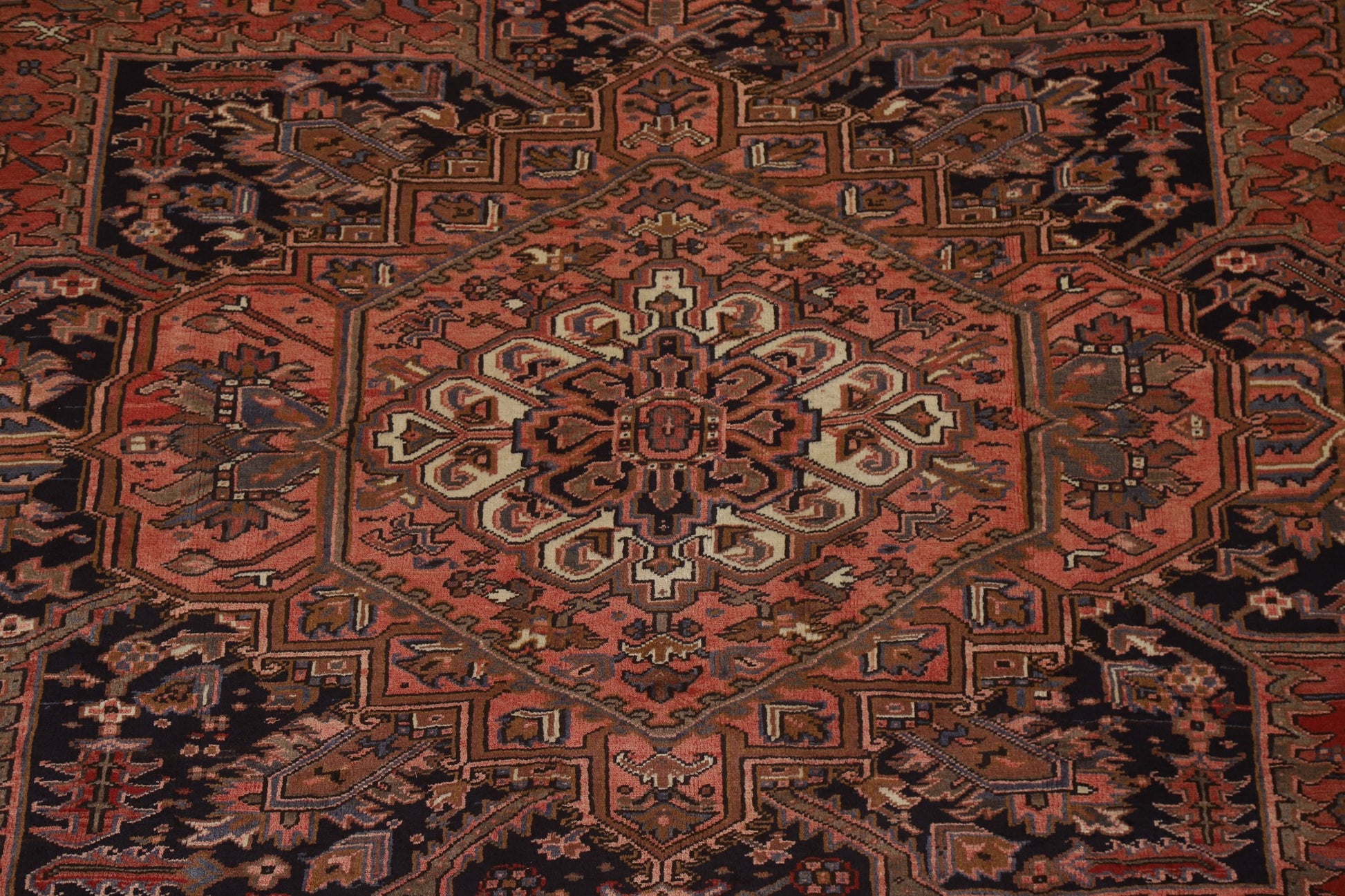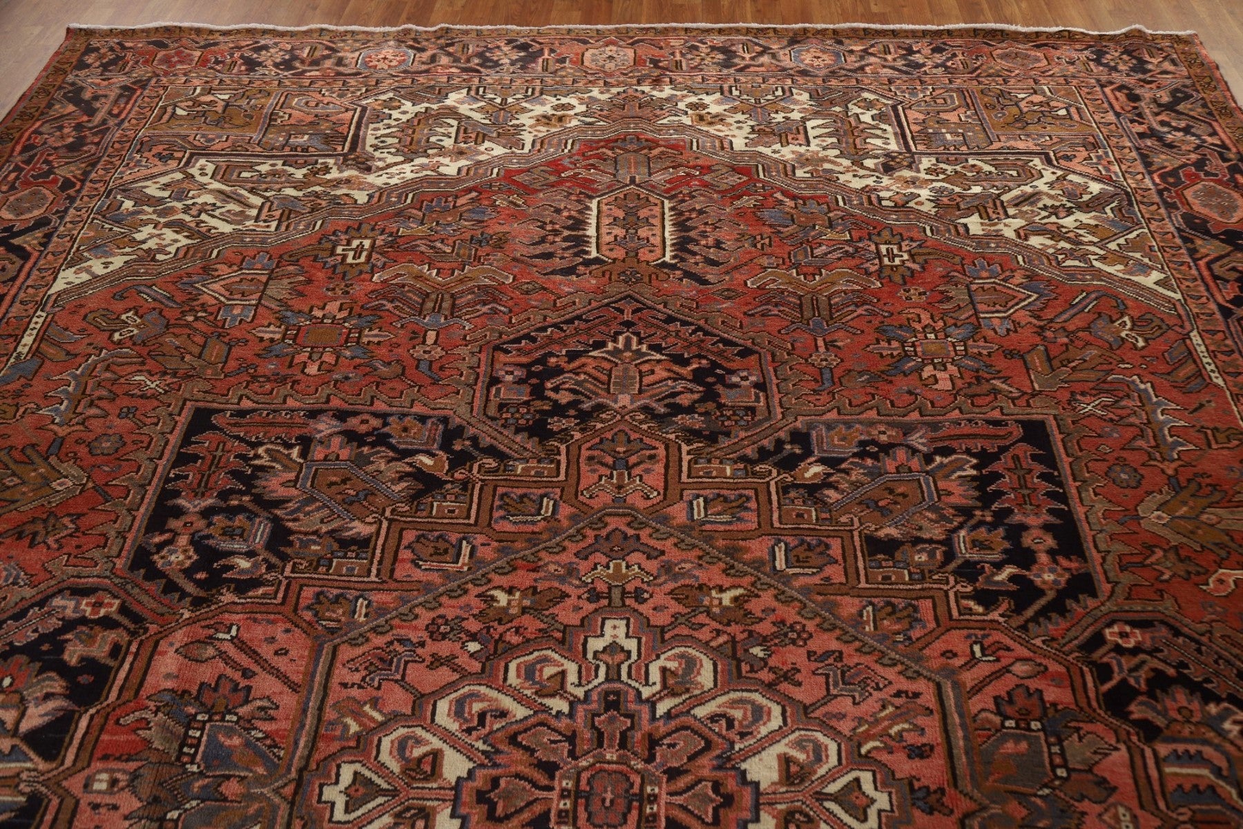A Beautiful Genuine Persia ( Persia ) Heriz rug is Hand Knotted by skillful weavers in Persia ( Persia ) with 100% Wool Material. This rug is in Very Good (Abrash) condition. dimensions are 12' 9'' X 10' 0'' in foot and 389 X 305 in centimeter. the primary color is Red.