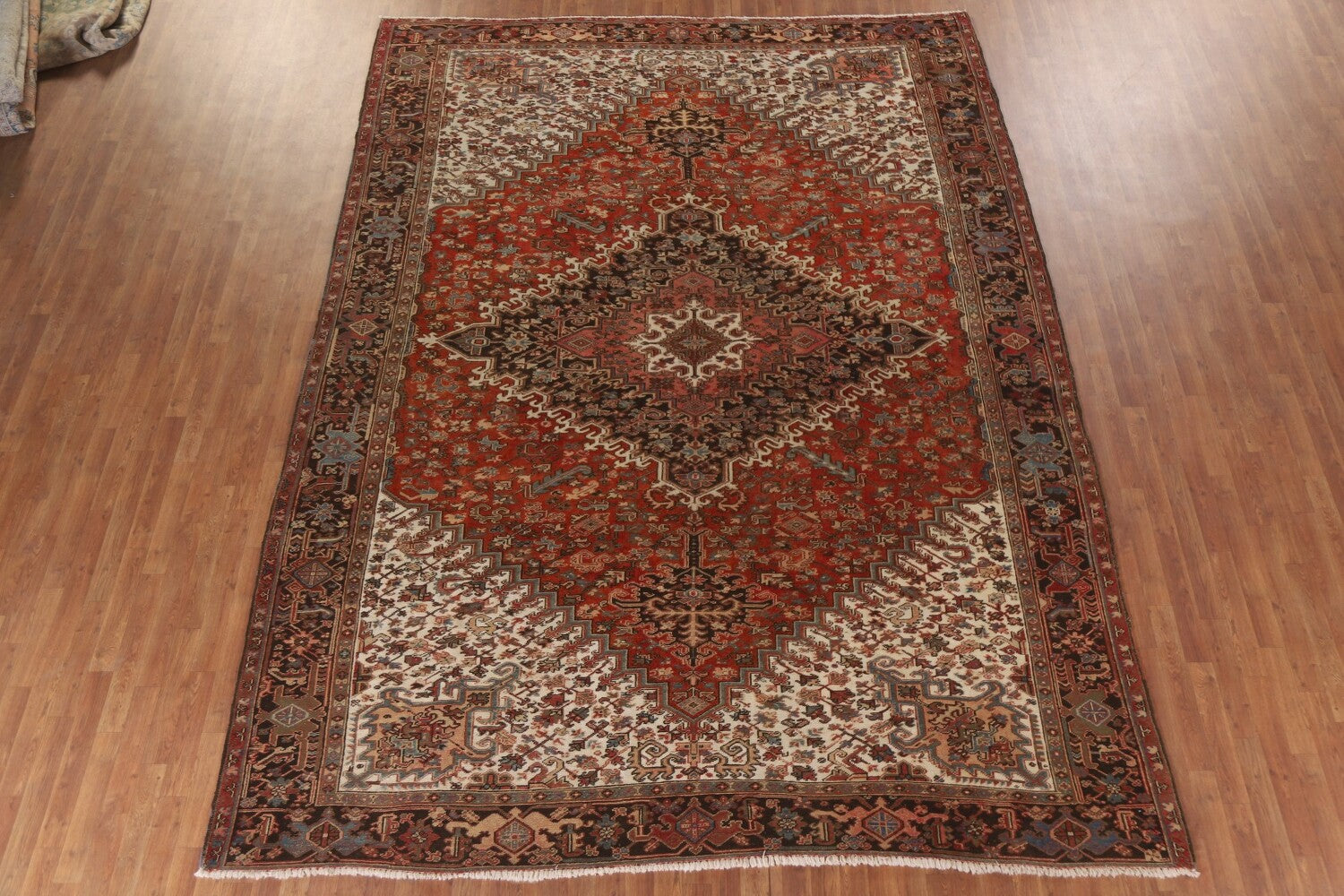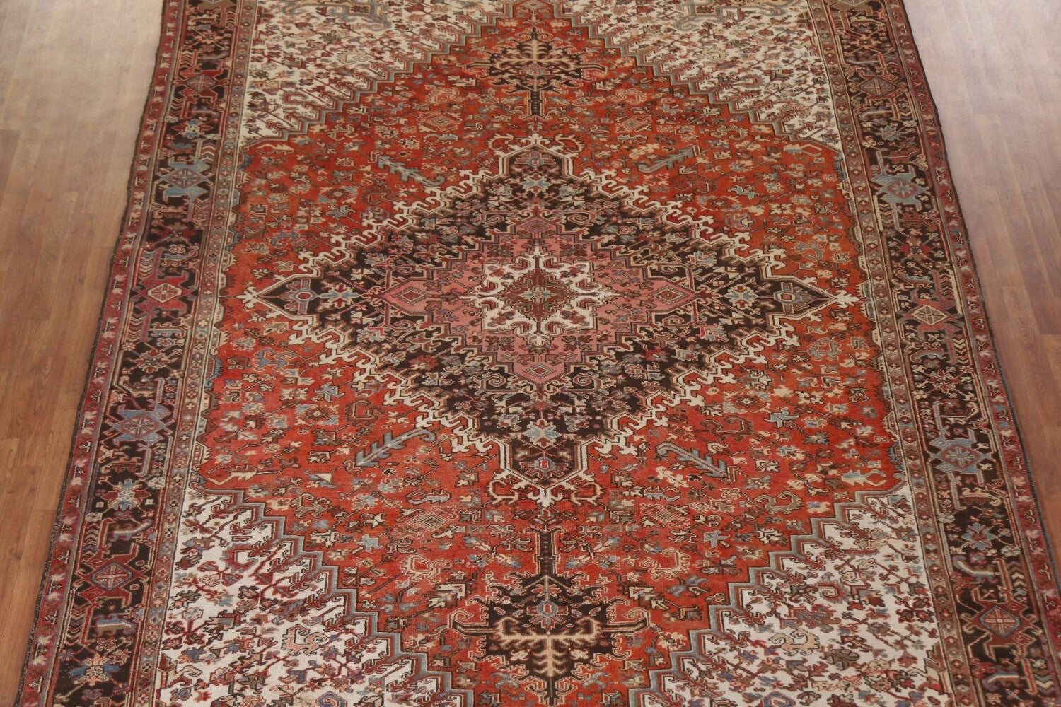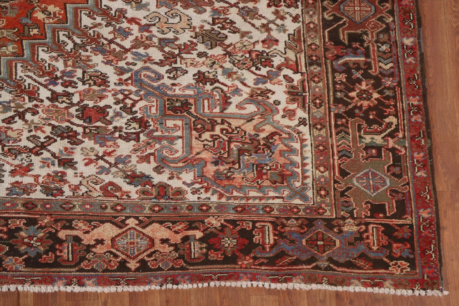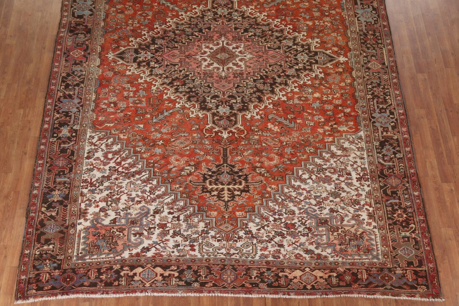 A Beautiful Genuine Persia ( Persia ) Heriz rug is Hand Knotted by skillful weavers in Persia ( Persia ) with 100% Wool Material. This rug is in Very Good condition. dimensions are 12' 10'' X 9' 7'' in foot and 391 X 292 in centimeter. the primary color is Red.
