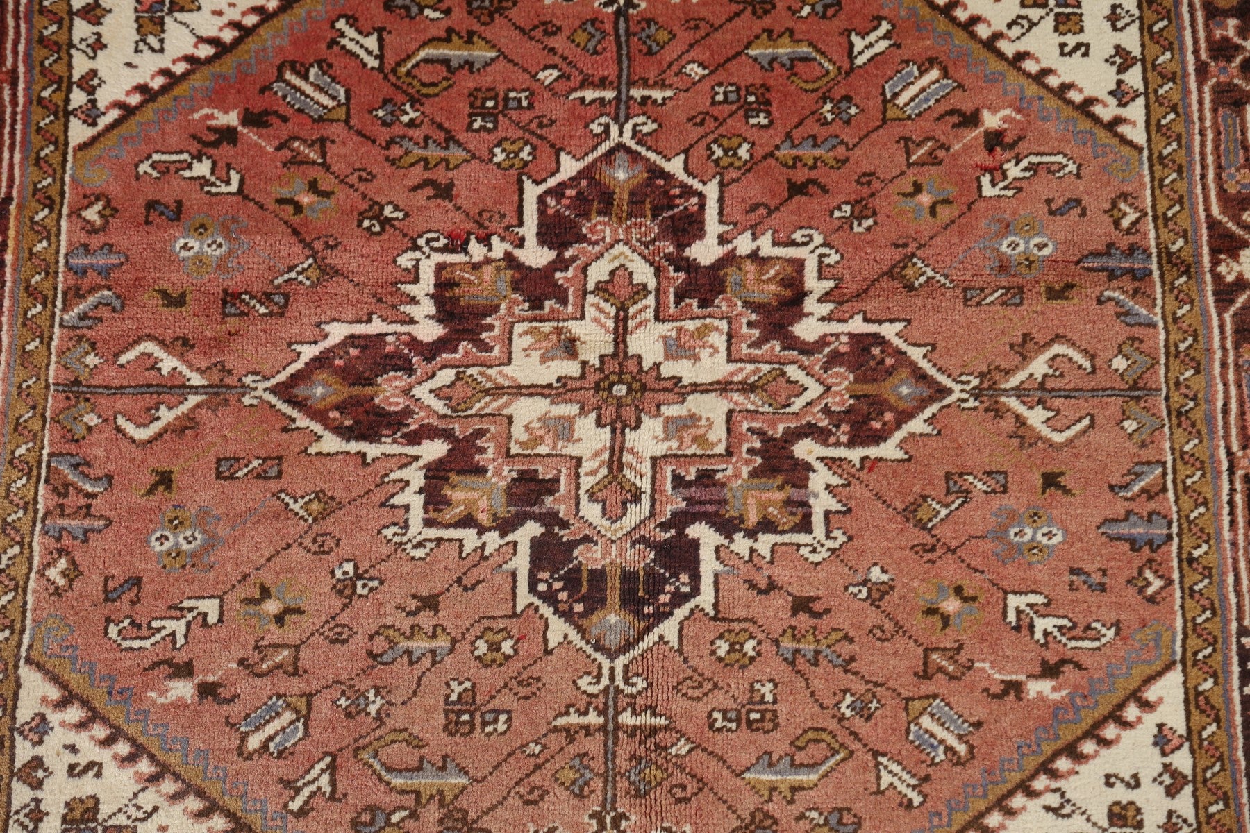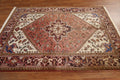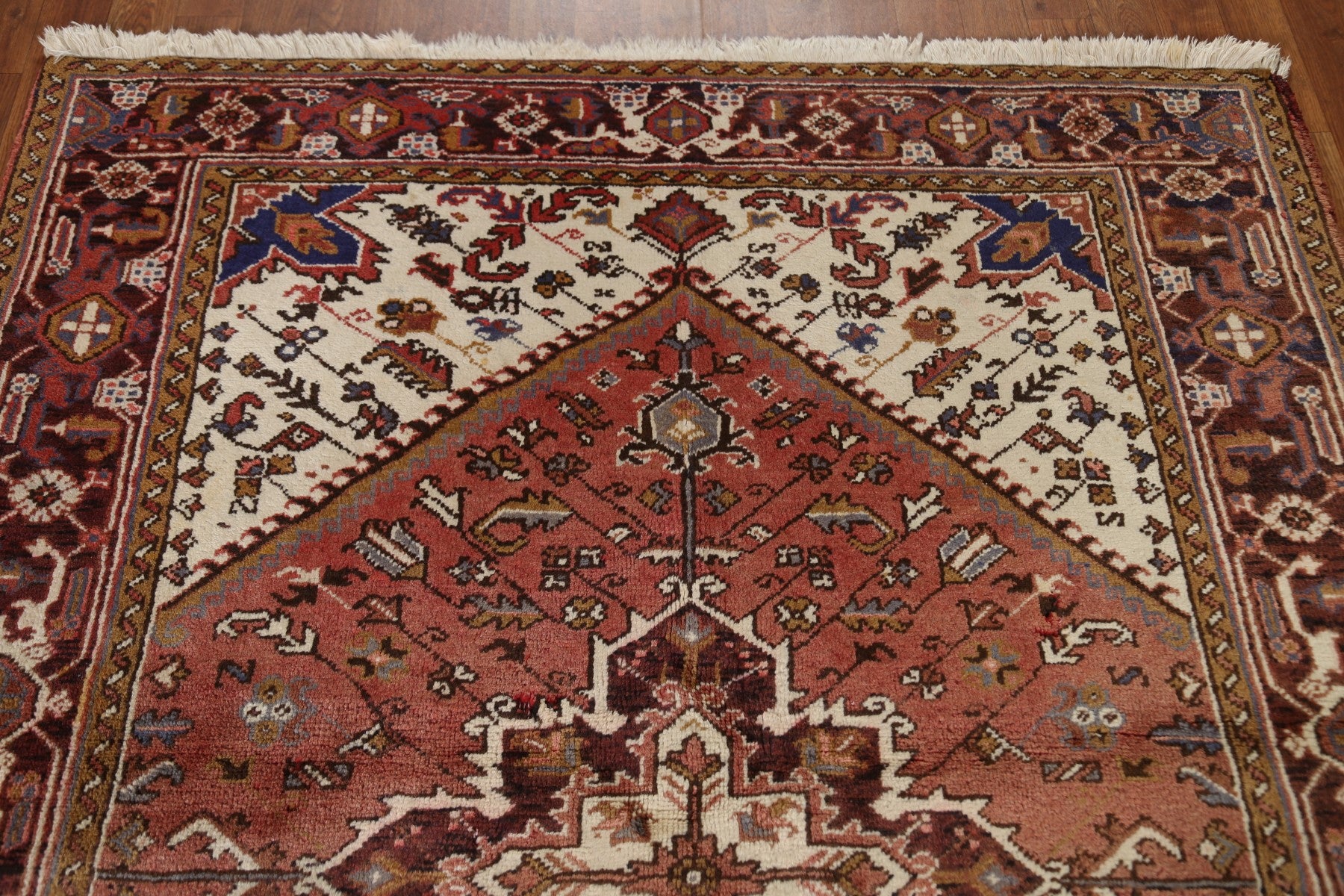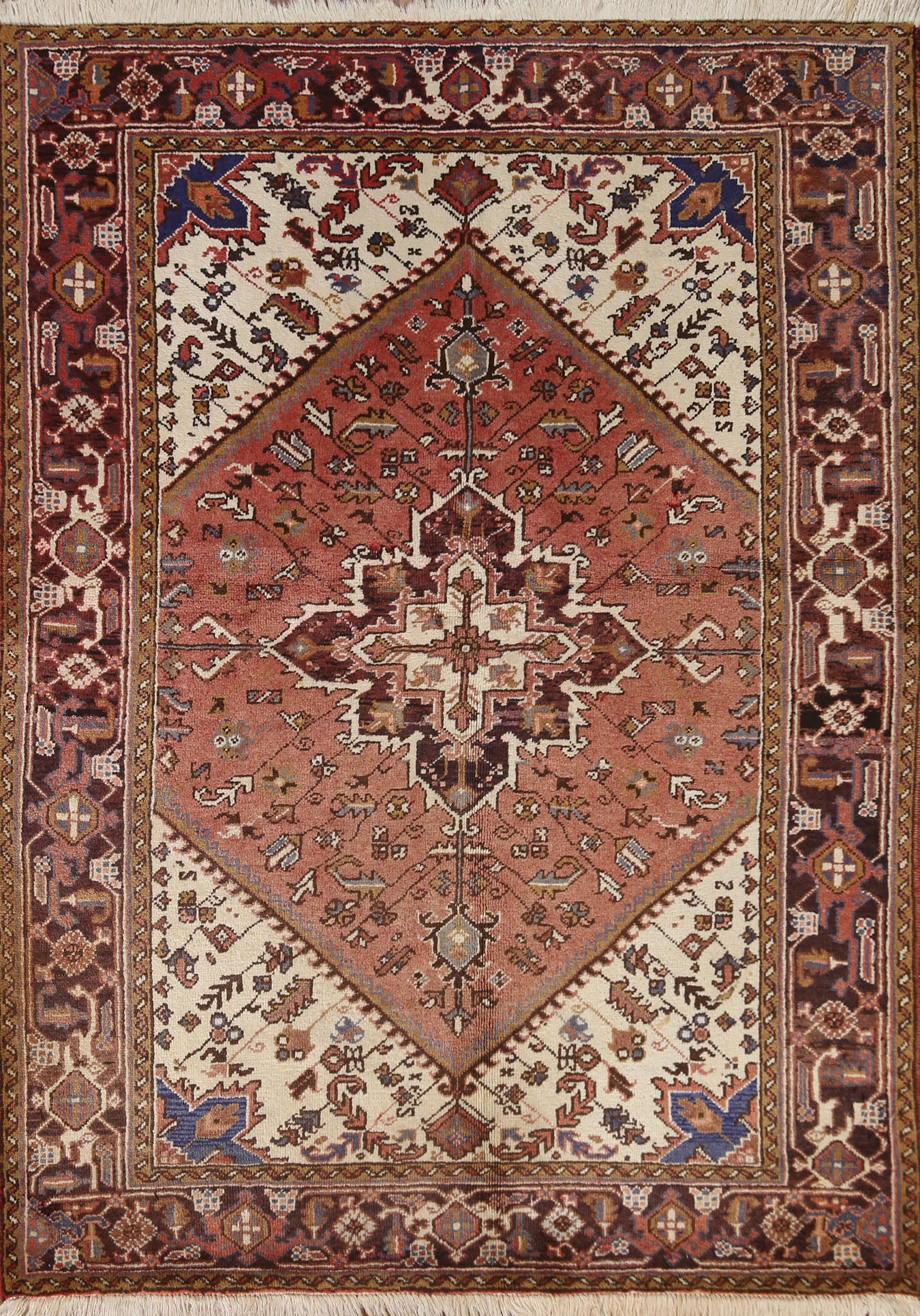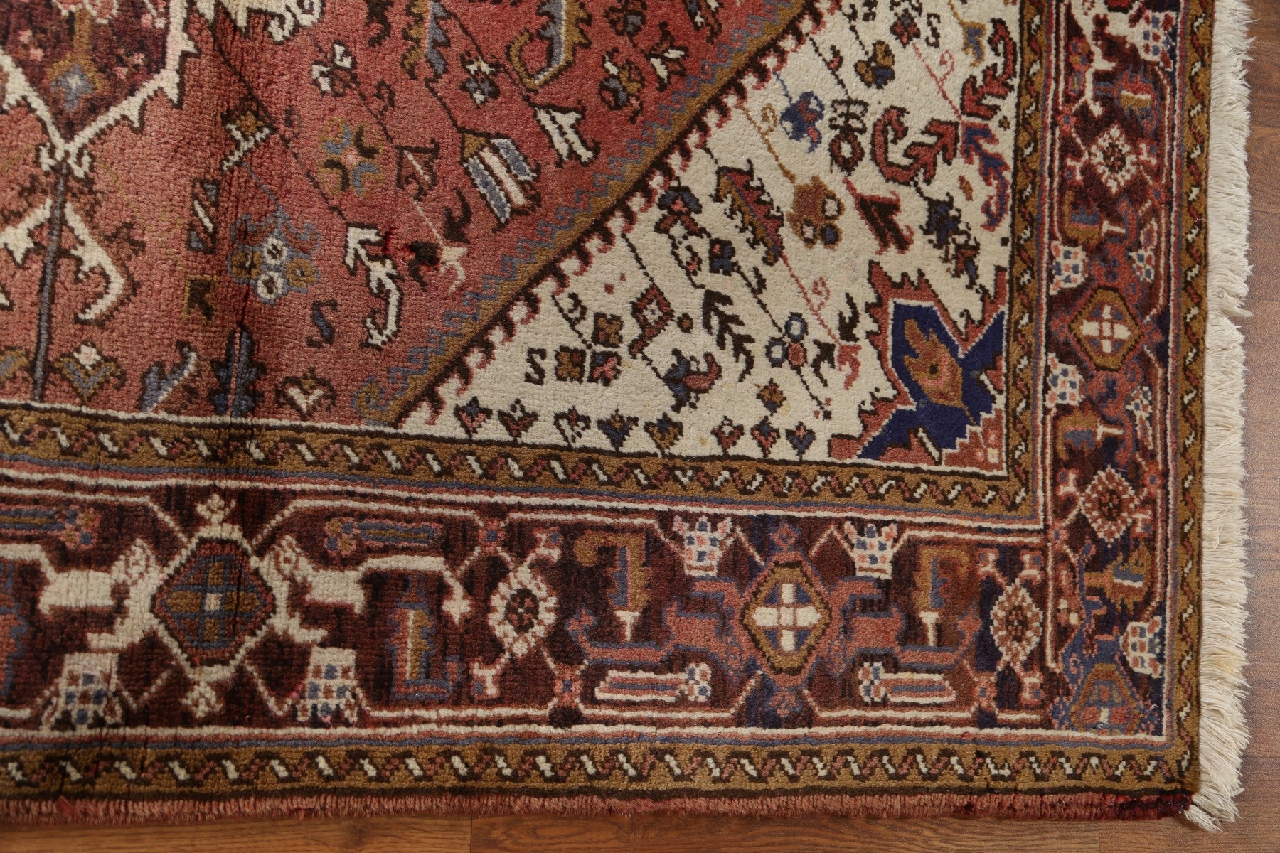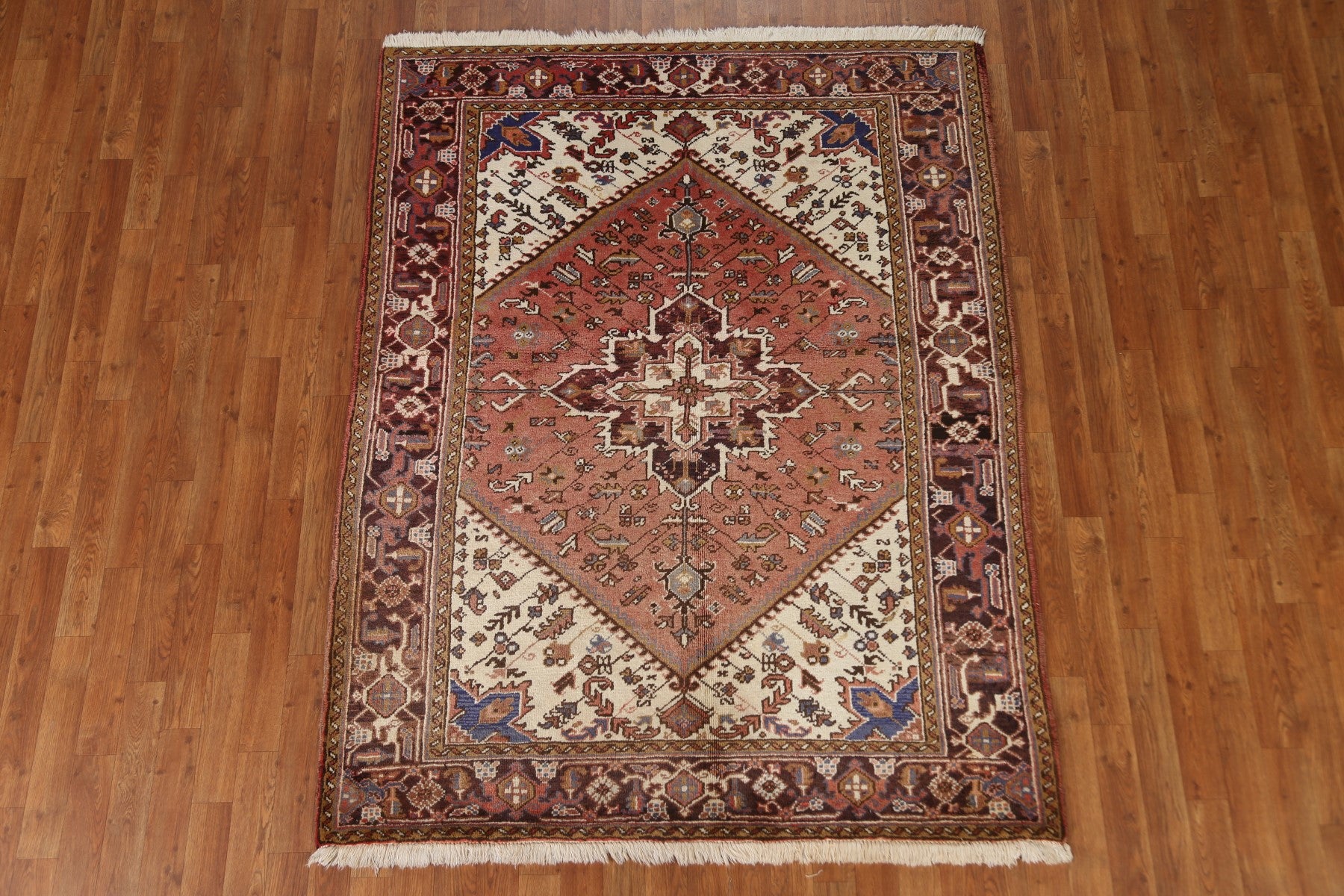 A Beautiful Genuine Persia ( Persia ) Heriz rug is Hand Knotted by skillful weavers in Persia ( Persia ) with 100% Wool Material. This rug is in Very Good condition. dimensions are 6' 5'' X 5' 0'' in foot and 196 X 152 in centimeter. the primary color is Red.