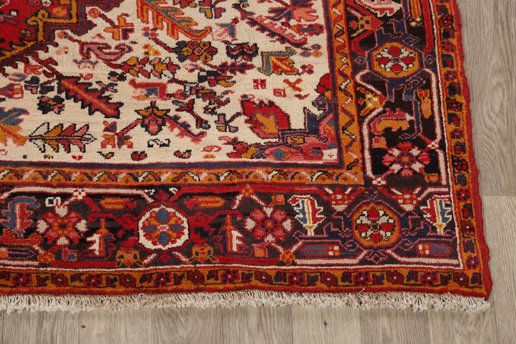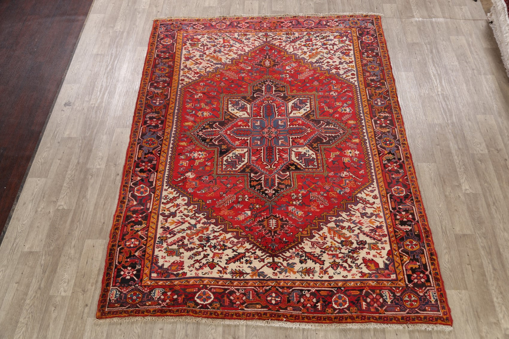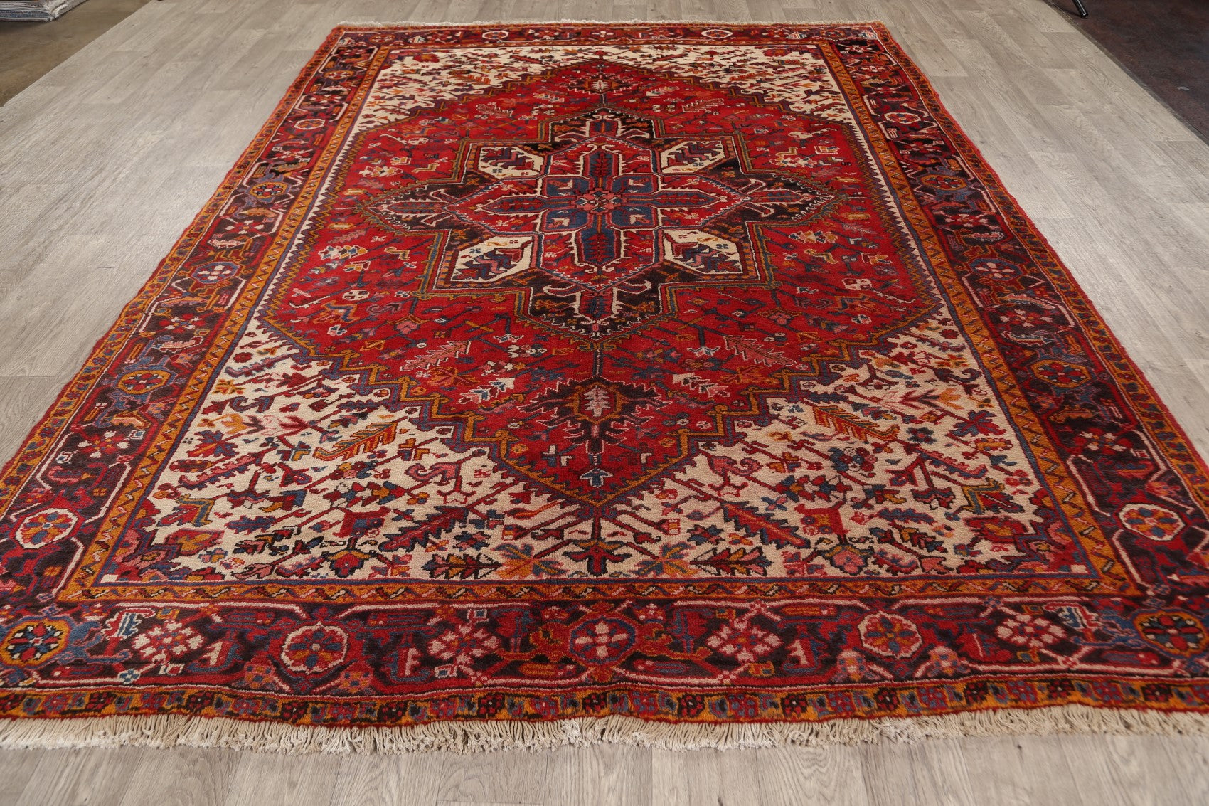 A Beautiful Genuine Persia ( Persia ) Heriz rug is Hand Knotted by skillful weavers in Persia ( Persia ) with 100% Wool Material. This rug is in Very Good (Abrash) condition. dimensions are 9' 9'' X 7' 5'' in foot and 297 X 226 in centimeter. the primary color is Red.