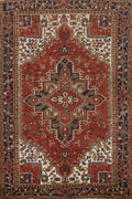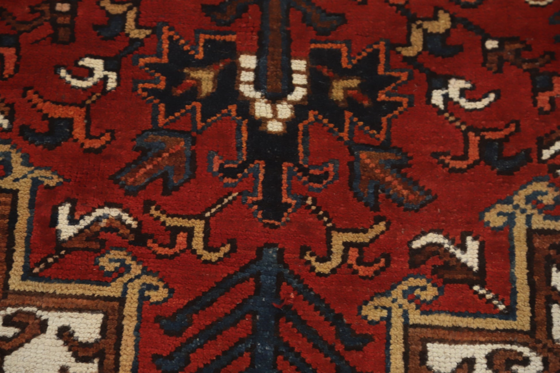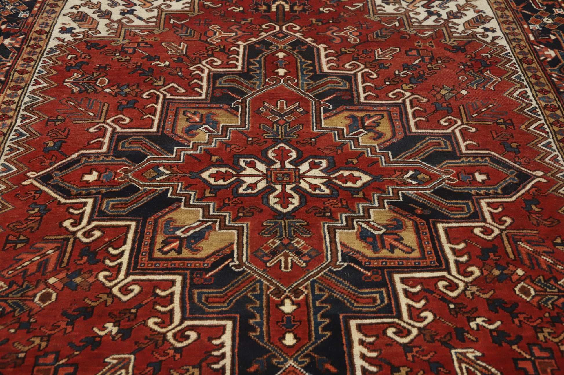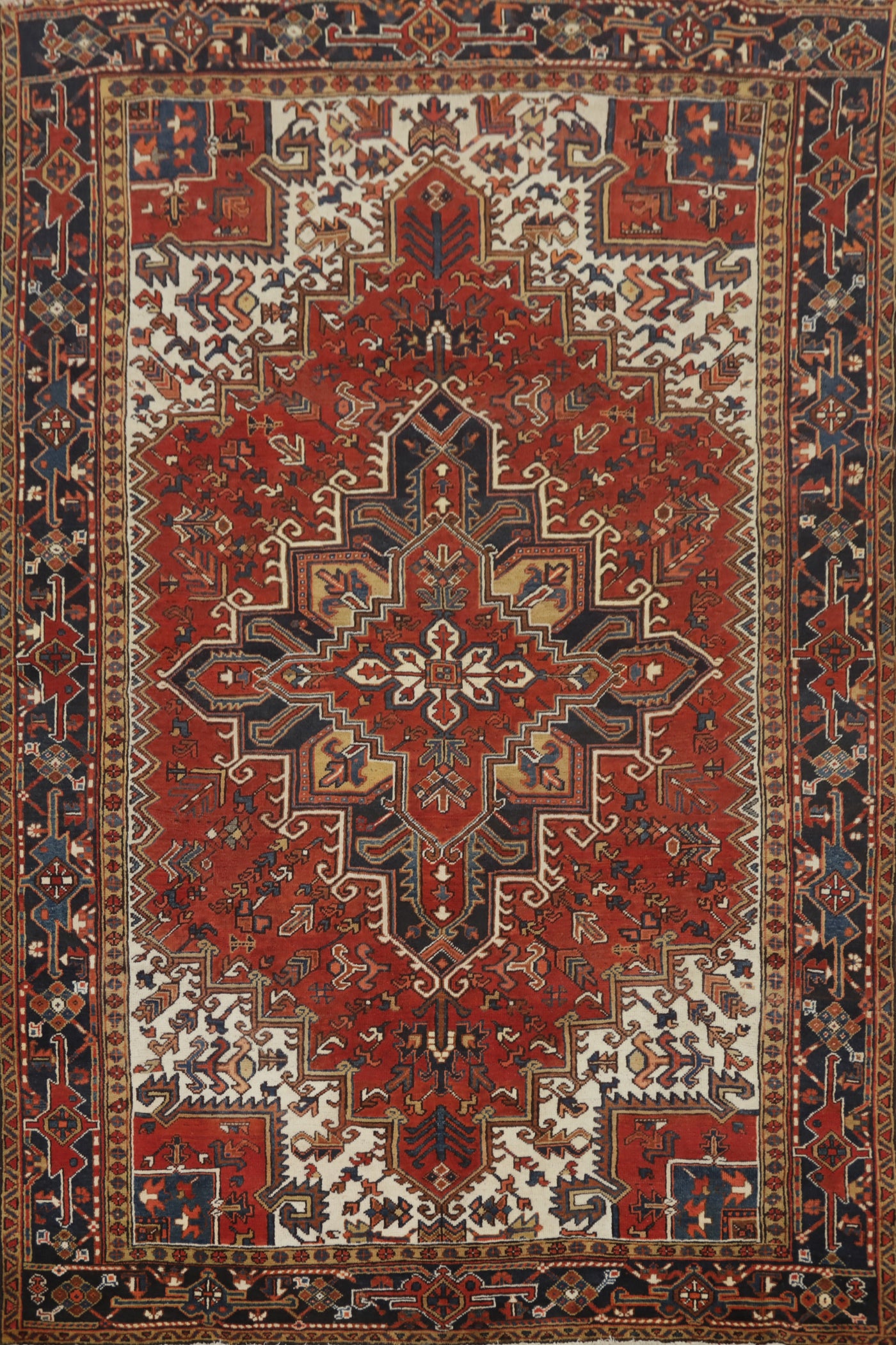 A Beautiful Genuine Persia ( Persia ) Heriz rug is Hand Knotted by skillful weavers in Persia ( Persia ) with 100% Wool Material. This rug is in Very Good ( Low Pile ) condition. dimensions are 10' 8'' X 7' 6'' in foot and 325 X 229 in centimeter. the primary color is Oranges & Rust.
