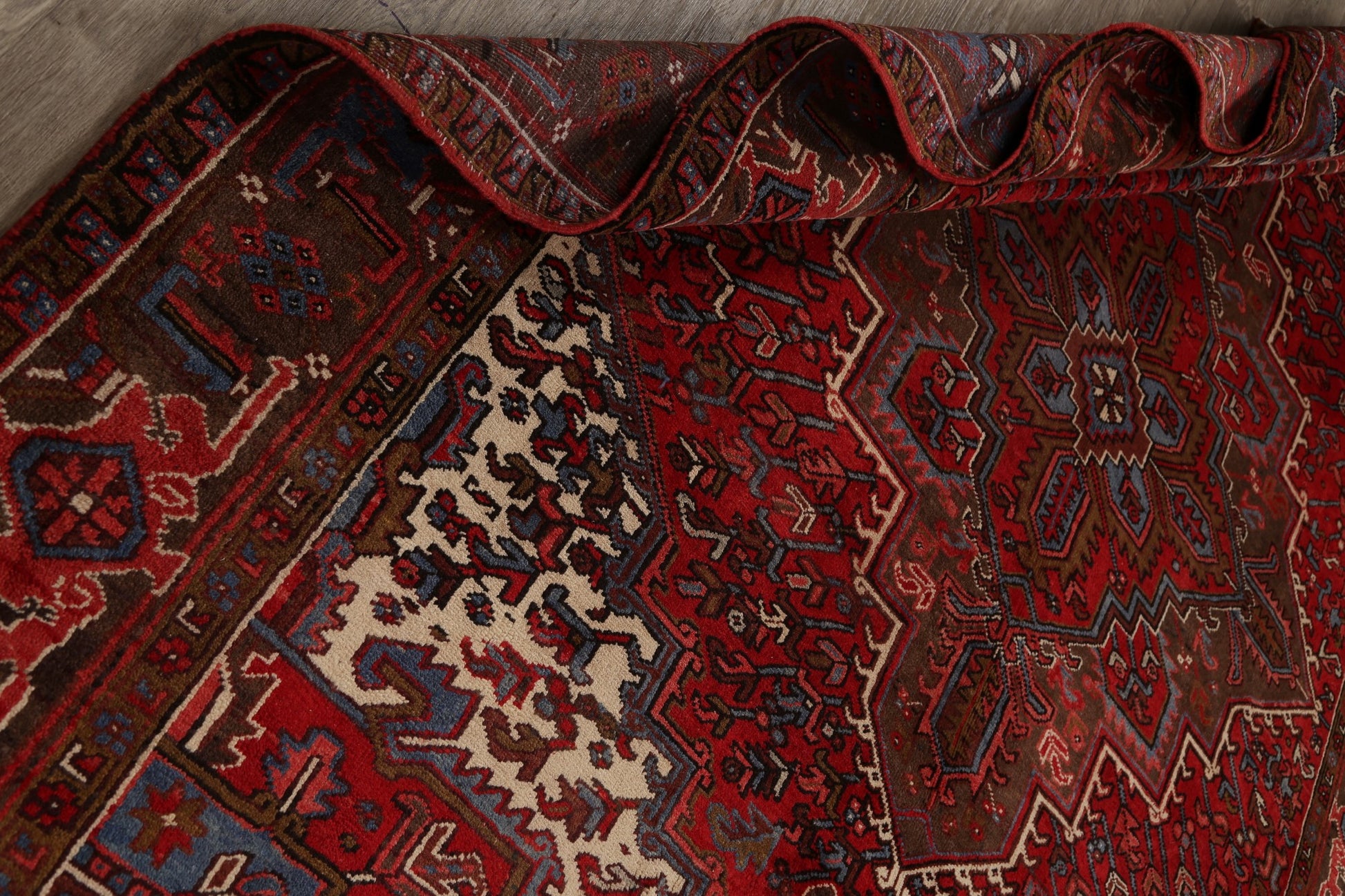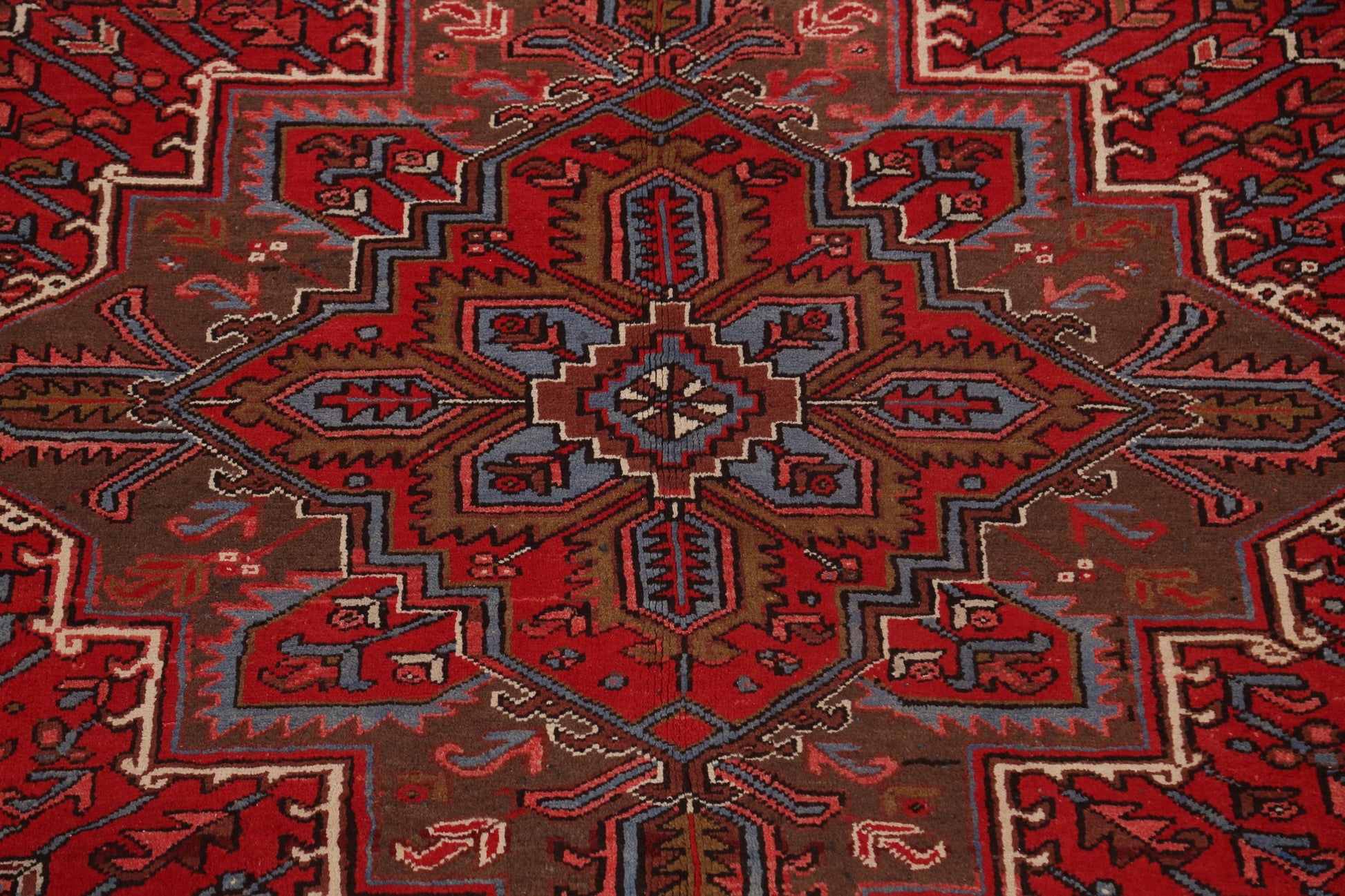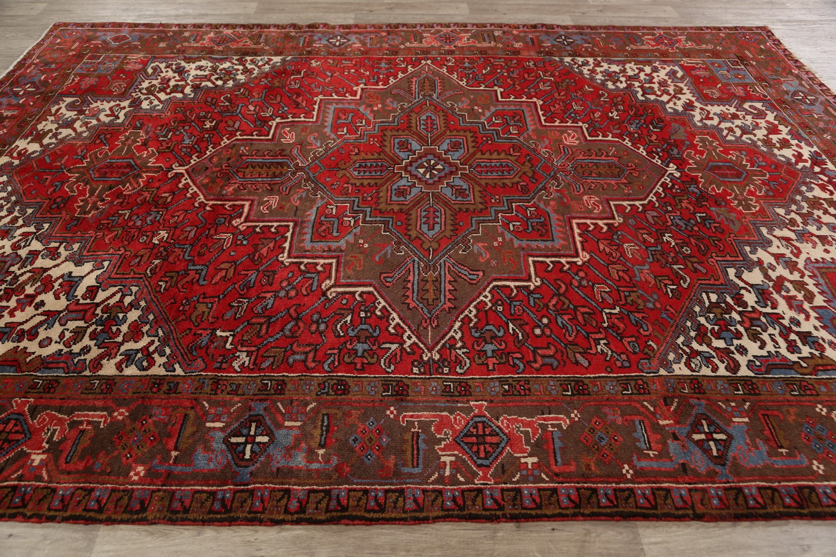 A Beautiful Genuine Persia ( Persia ) Heriz rug is Hand Knotted by skillful weavers in Persia ( Persia ) with 100% Wool Material. This rug is in Excellent condition. dimensions are 10' 8'' X 7' 8'' in foot and 325 X 234 in centimeter. the primary color is Red.