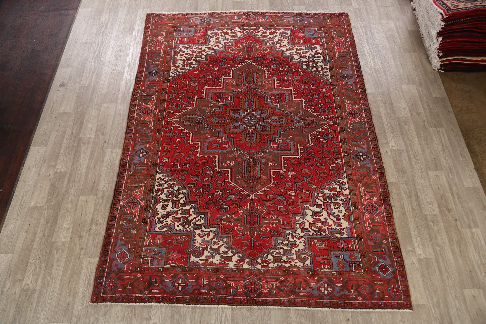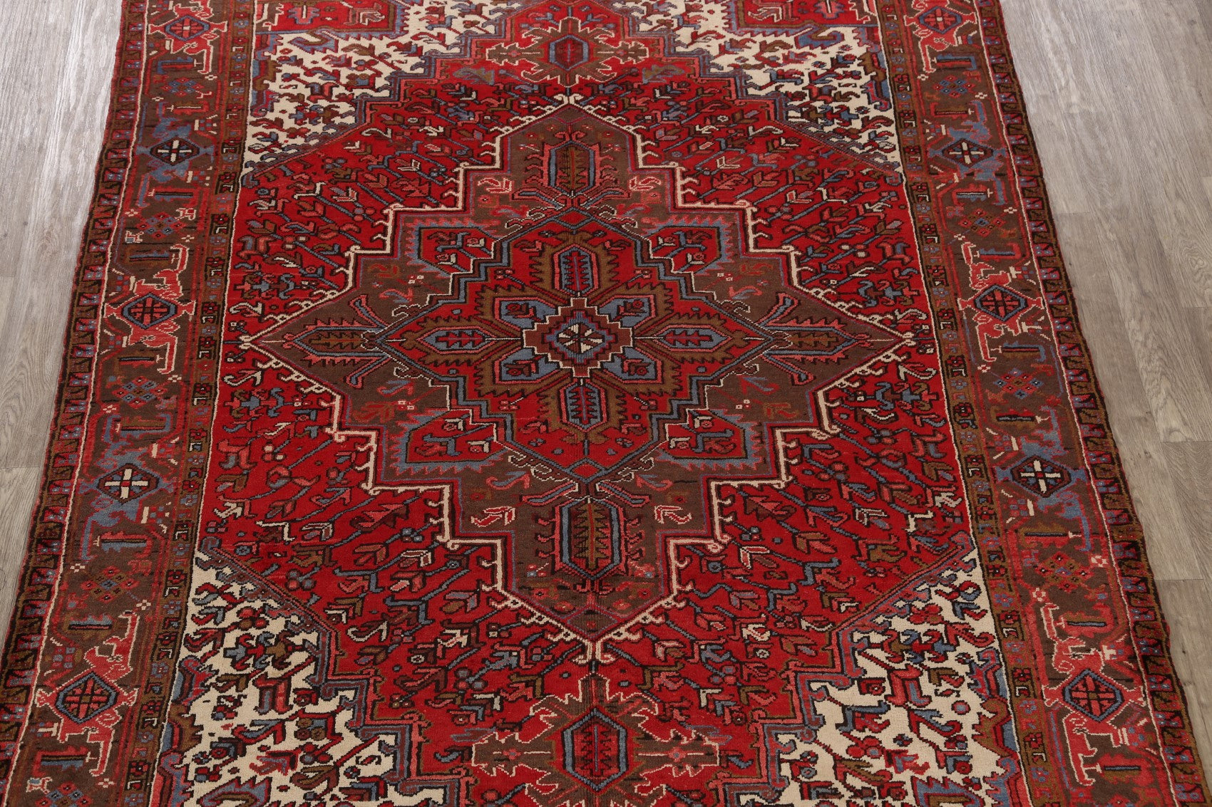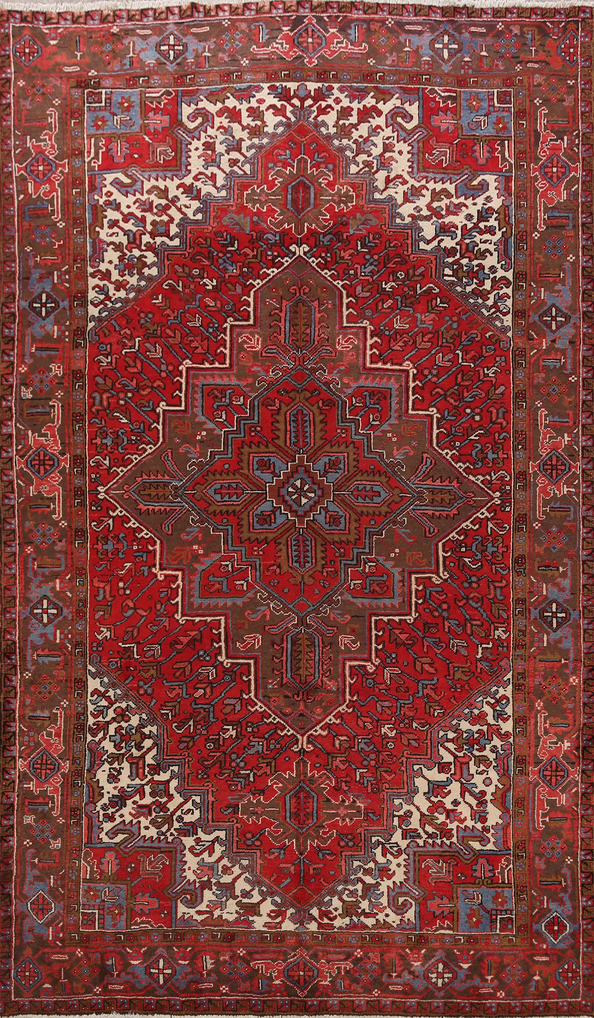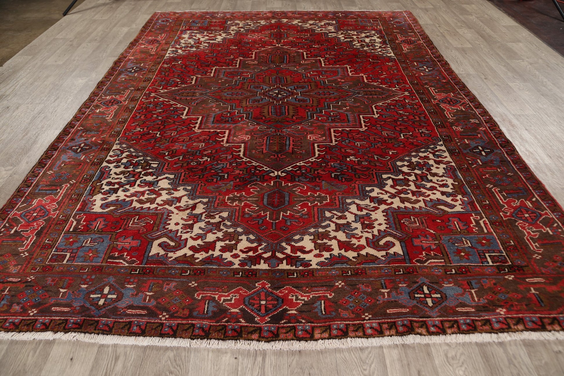 A Beautiful Genuine Persia ( Persia ) Heriz rug is Hand Knotted by skillful weavers in Persia ( Persia ) with 100% Wool Material. This rug is in Excellent condition. dimensions are 10' 8'' X 7' 8'' in foot and 325 X 234 in centimeter. the primary color is Red.