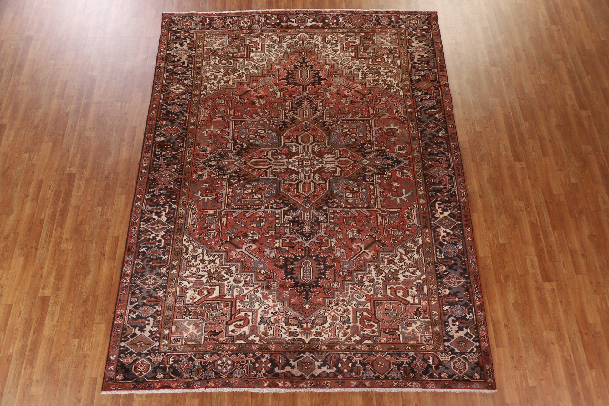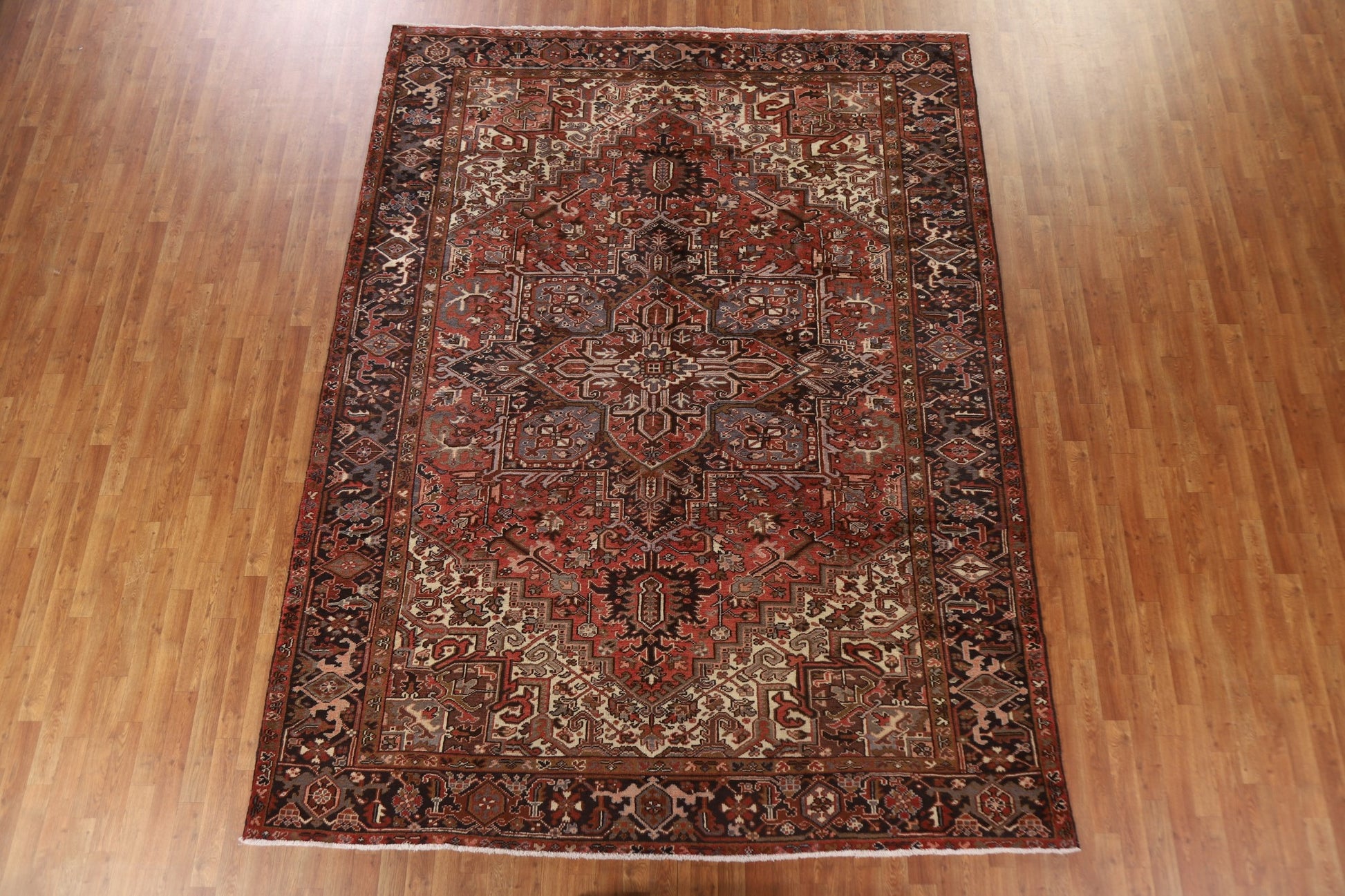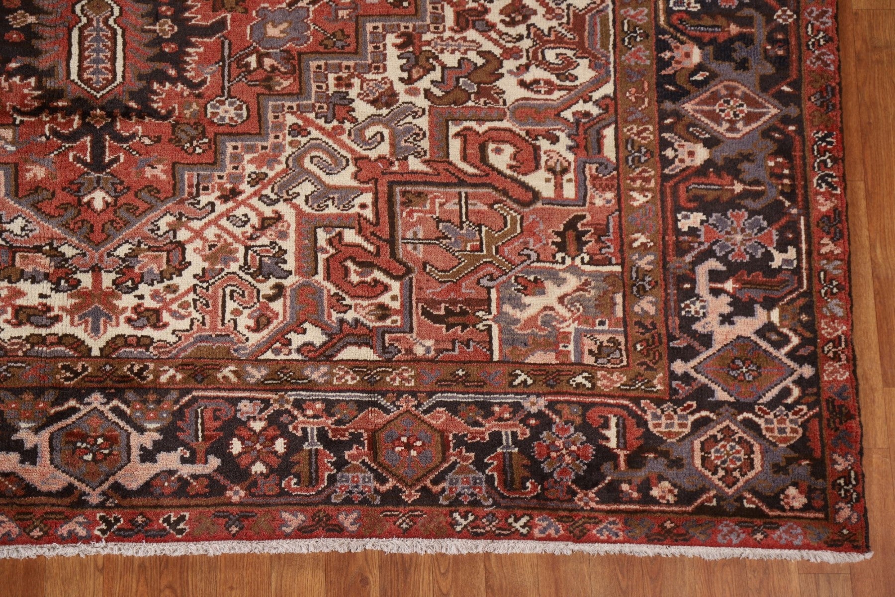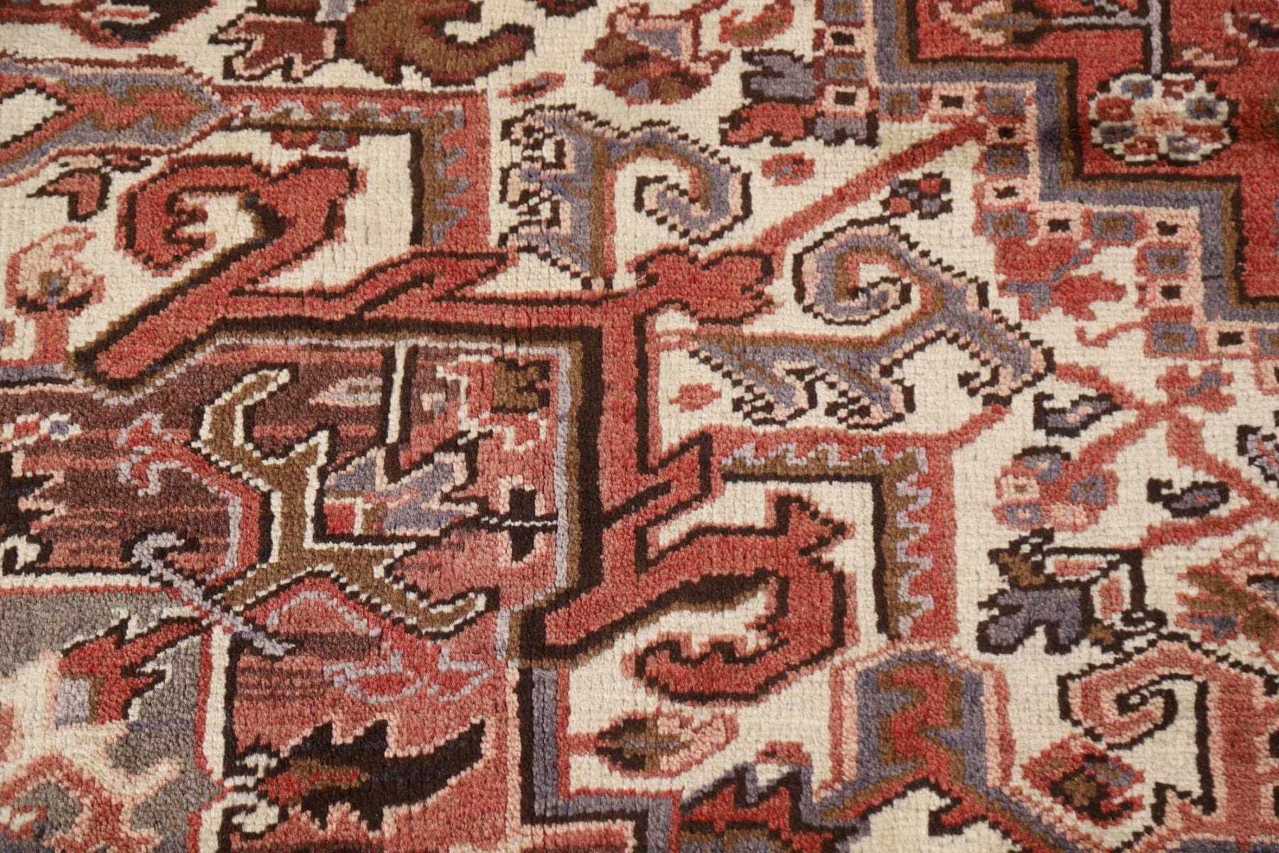 A Beautiful Genuine Persia ( Persia ) Heriz rug is Hand Knotted by skillful weavers in Persia ( Persia ) with 100% Wool Material. This rug is in Very Good condition. dimensions are 11' 2'' X 8' 5'' in foot and 340 X 257 in centimeter. the primary color is Red.