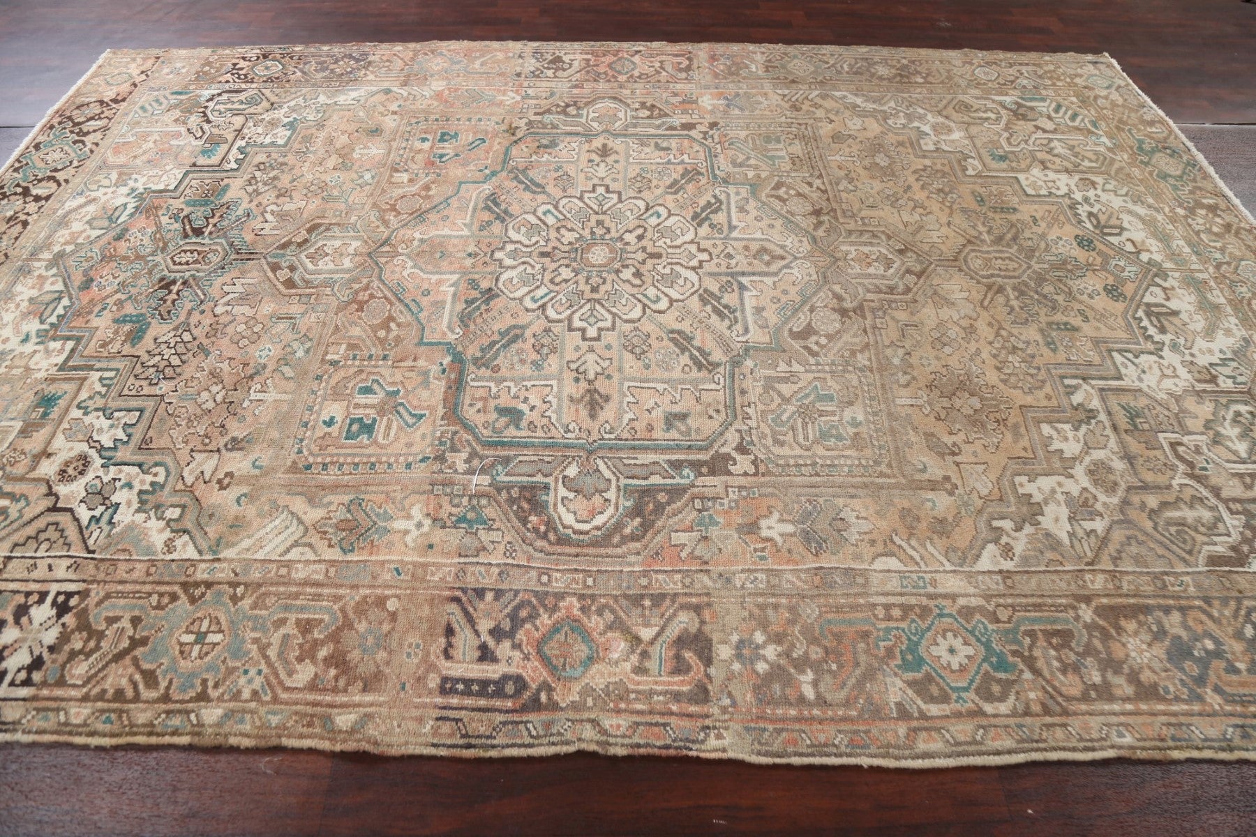 A Beautiful Genuine Persia ( Persia ) Heriz rug is Hand Knotted by skillful weavers in Persia ( Persia ) with 100% Wool Material. This rug is in Very Good (Abrash) condition. dimensions are 11' 6'' X 8' 2'' in foot and 351 X 249 in centimeter. the primary color is Multi-Colored.