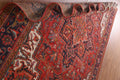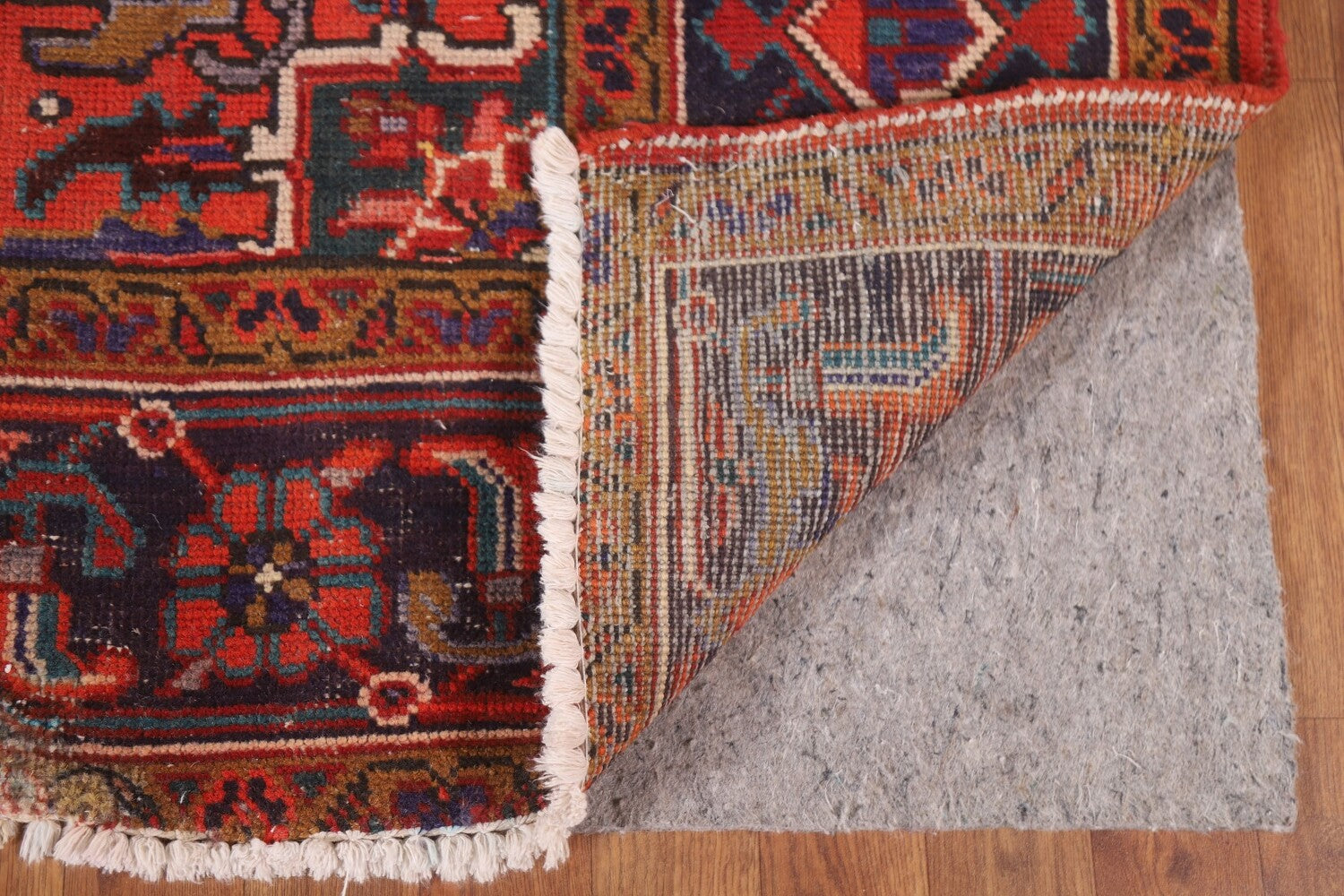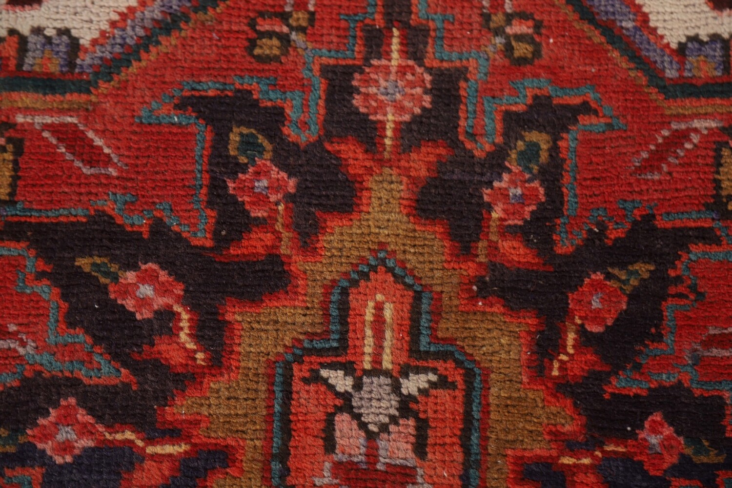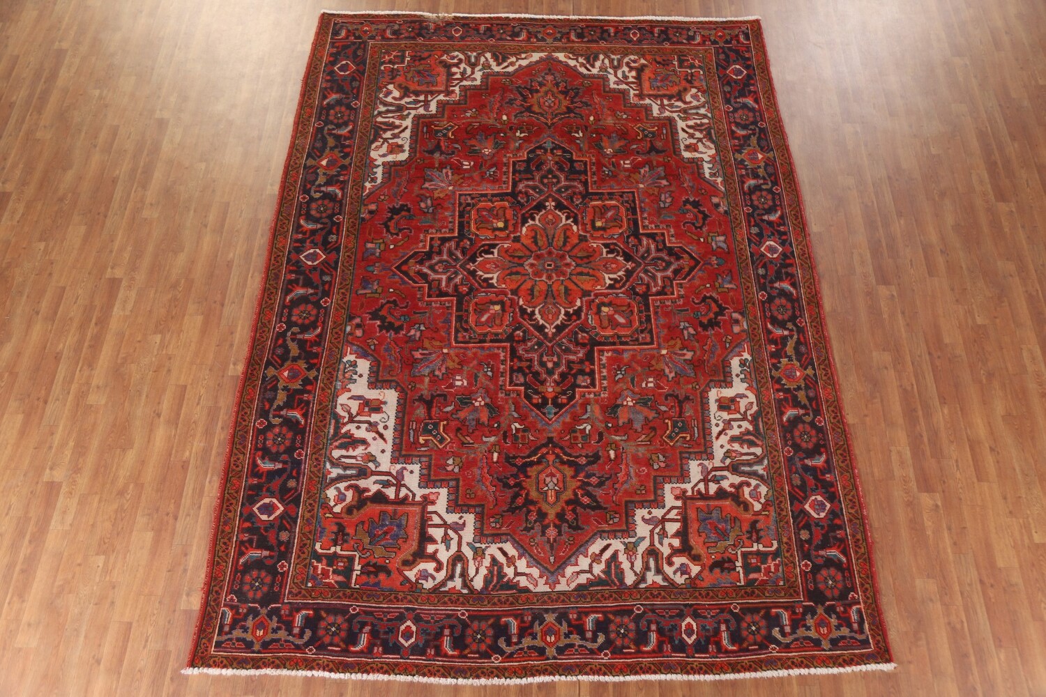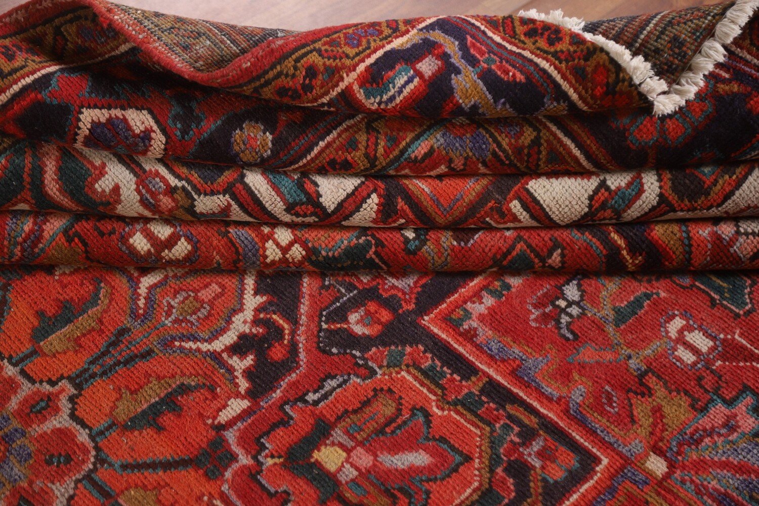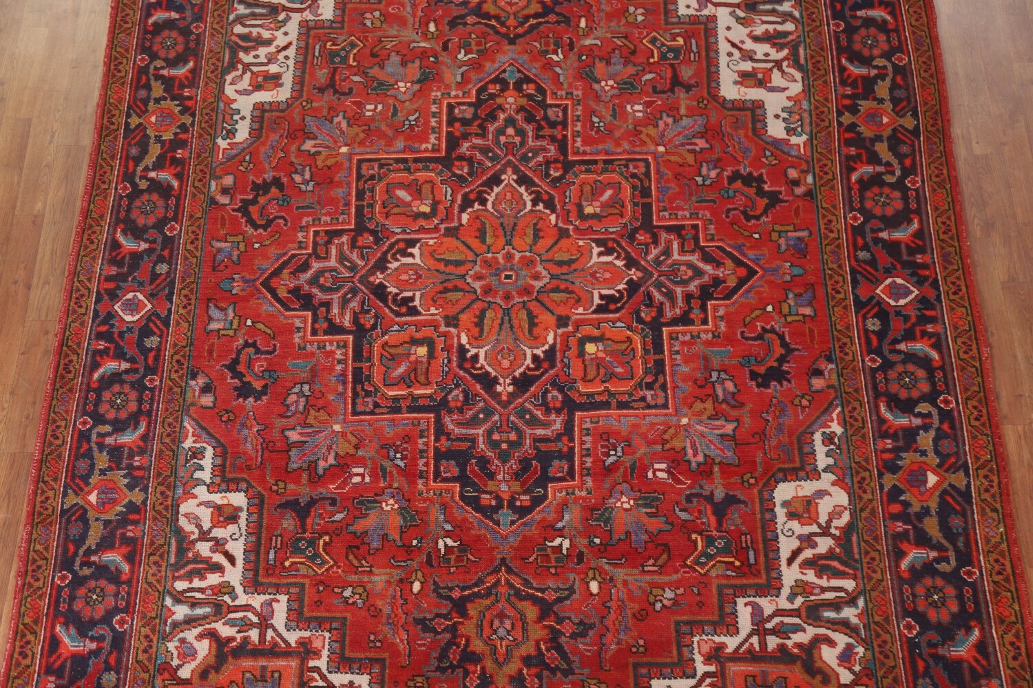 A Beautiful Genuine Persia ( Persia ) Heriz rug is Hand Knotted by skillful weavers in Persia ( Persia ) with 100% Wool Material. This rug is in Very Good (Low Pile-Repair) condition. dimensions are 12' 3'' X 8' 4'' in foot and 373 X 254 in centimeter. the primary color is Red.