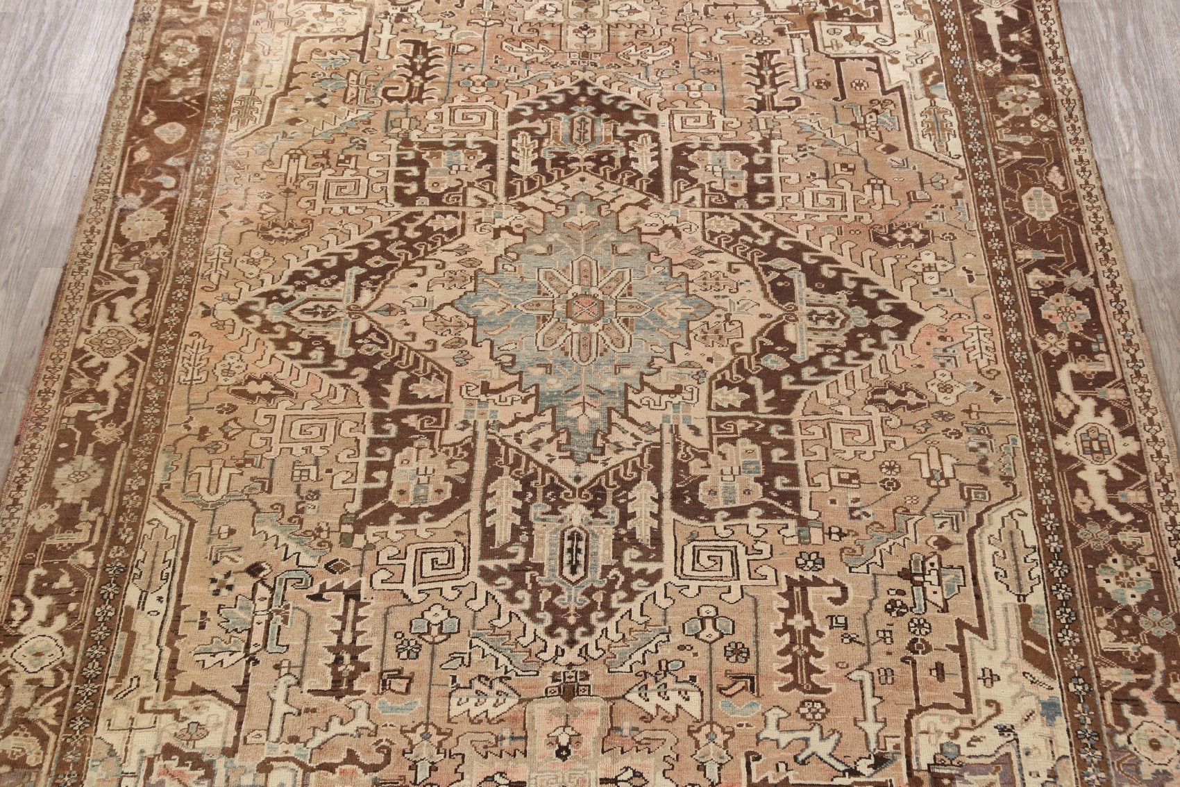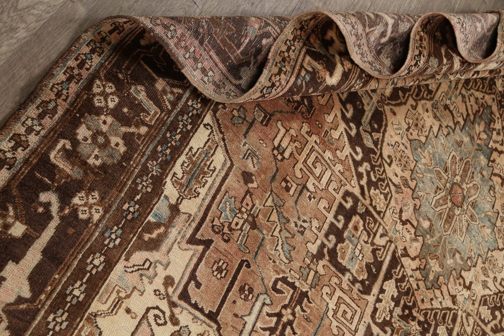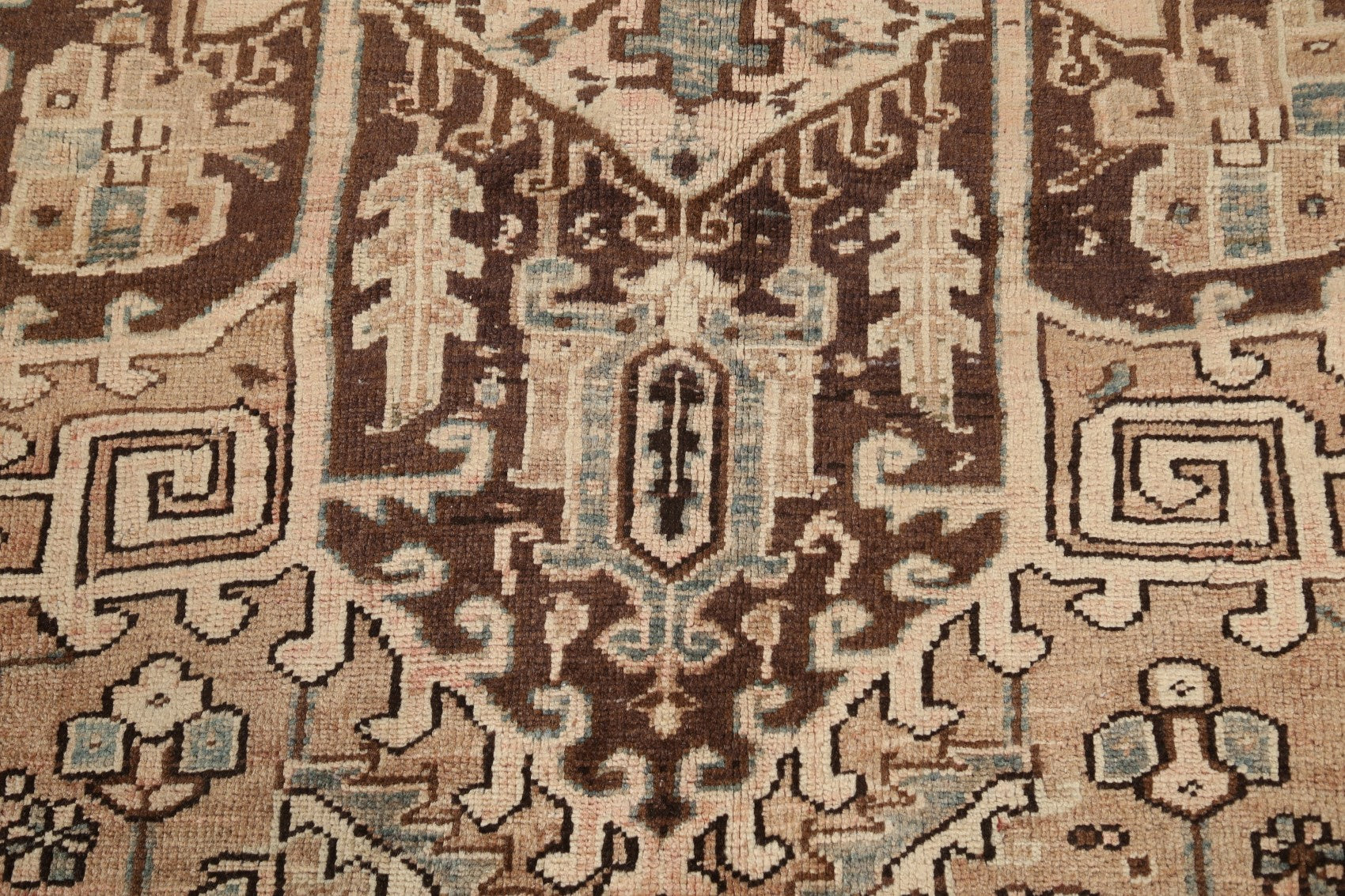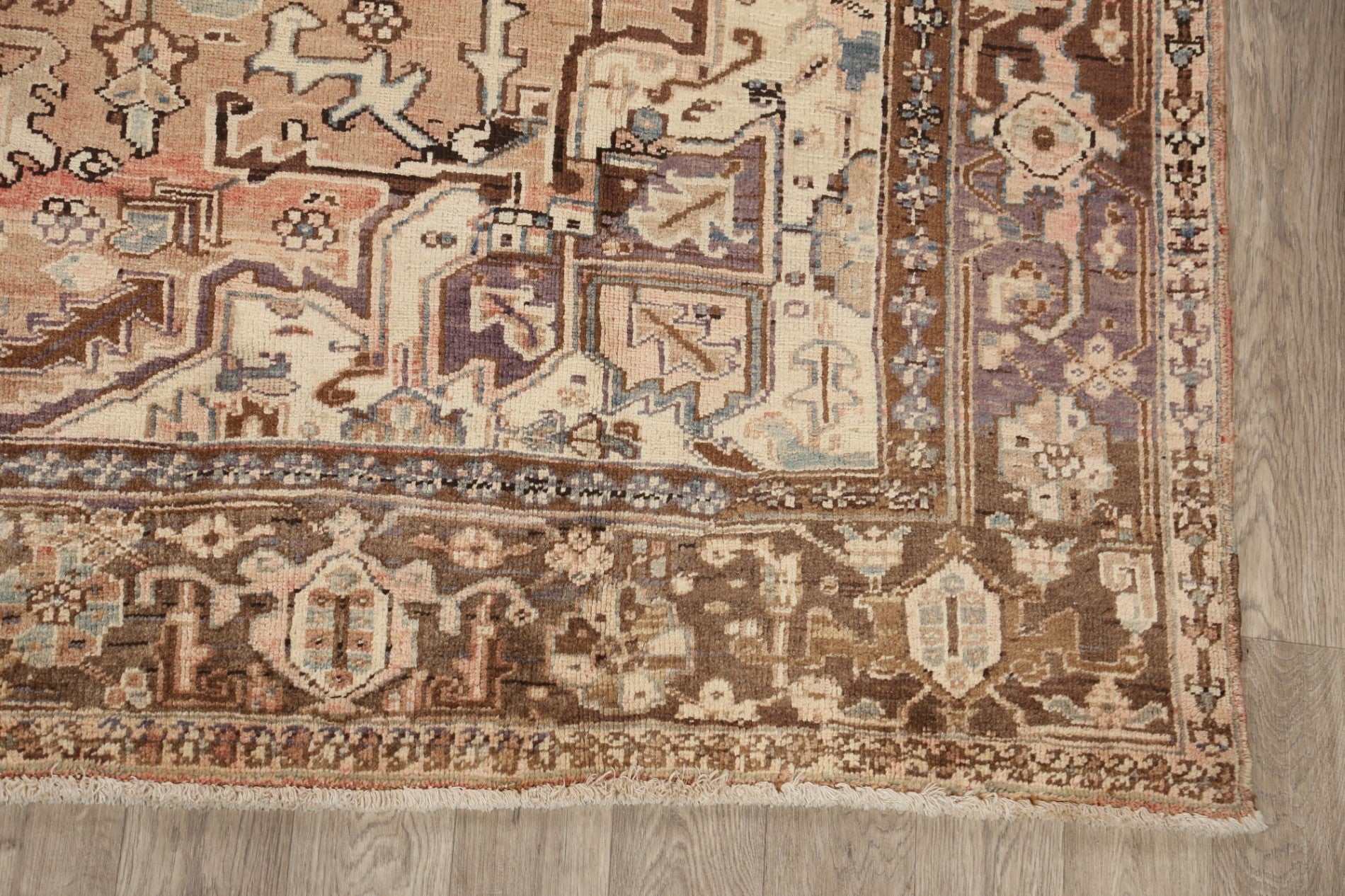 A Beautiful Genuine Persia ( Persia ) Heriz rug is Hand Knotted by skillful weavers in Persia ( Persia ) with 100% Wool Material. This rug is in Very Good (Low Pile-Abrash-Small Repair) condition. dimensions are 11' 7'' X 8' 7'' in foot and 353 X 262 in centimeter. the primary color is Beige & Ivories.