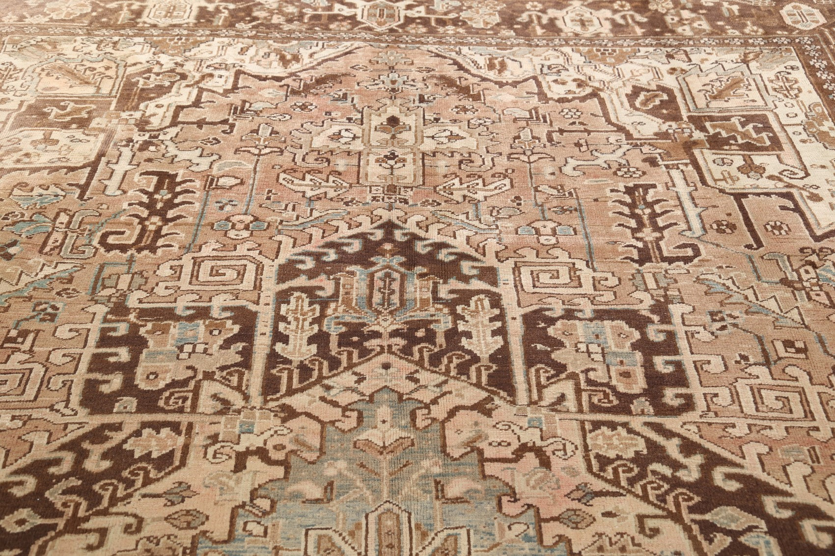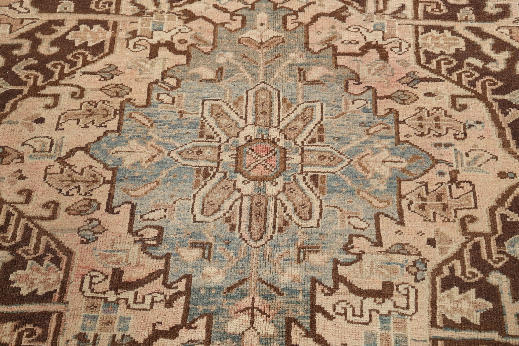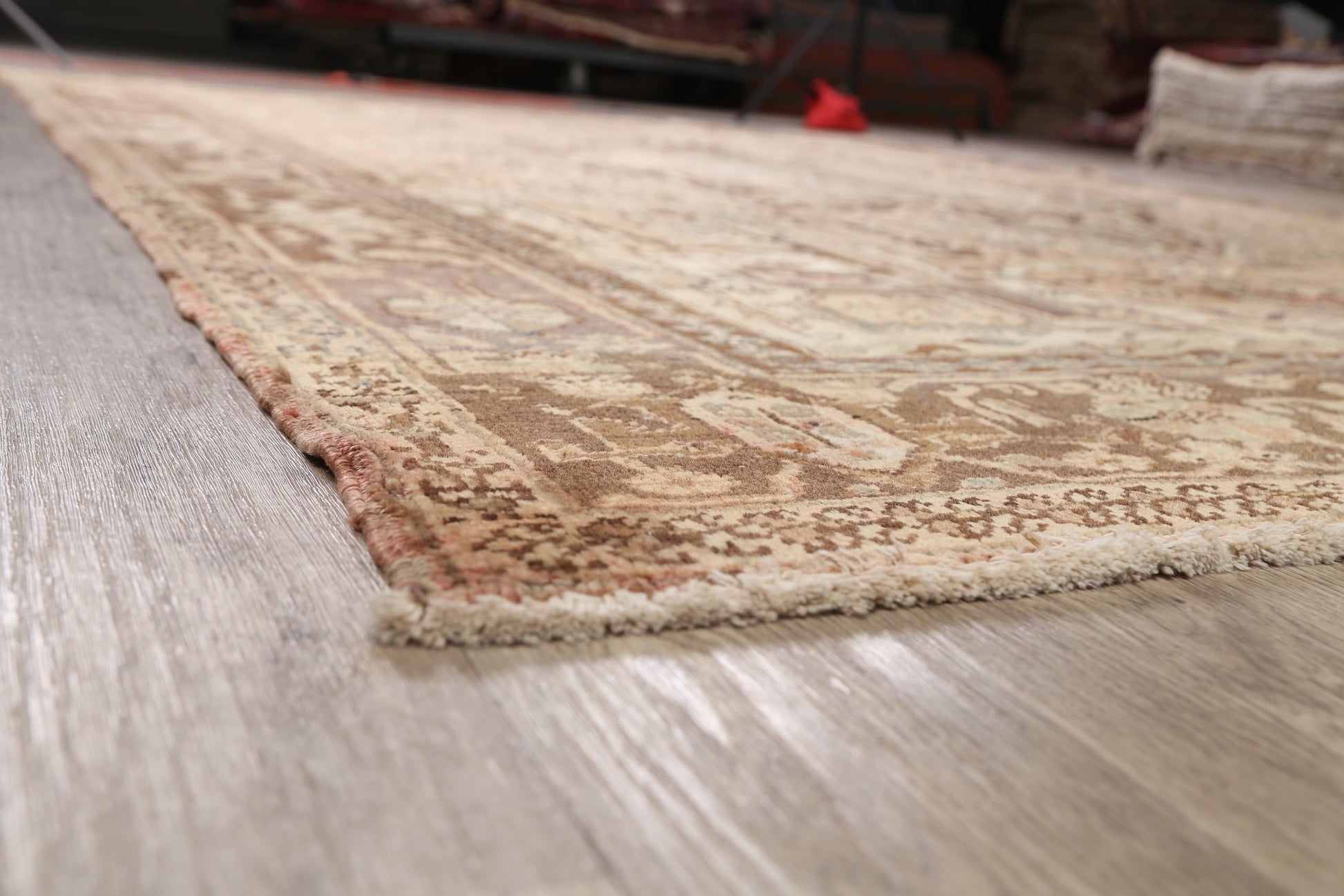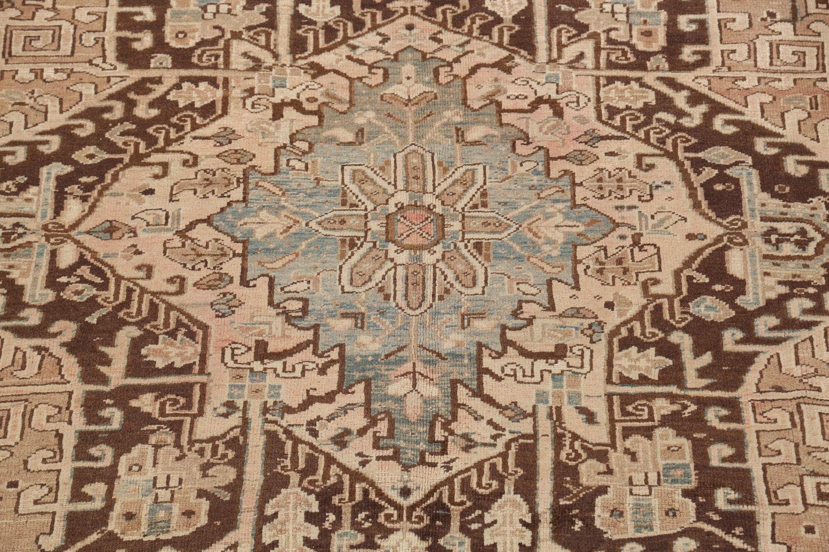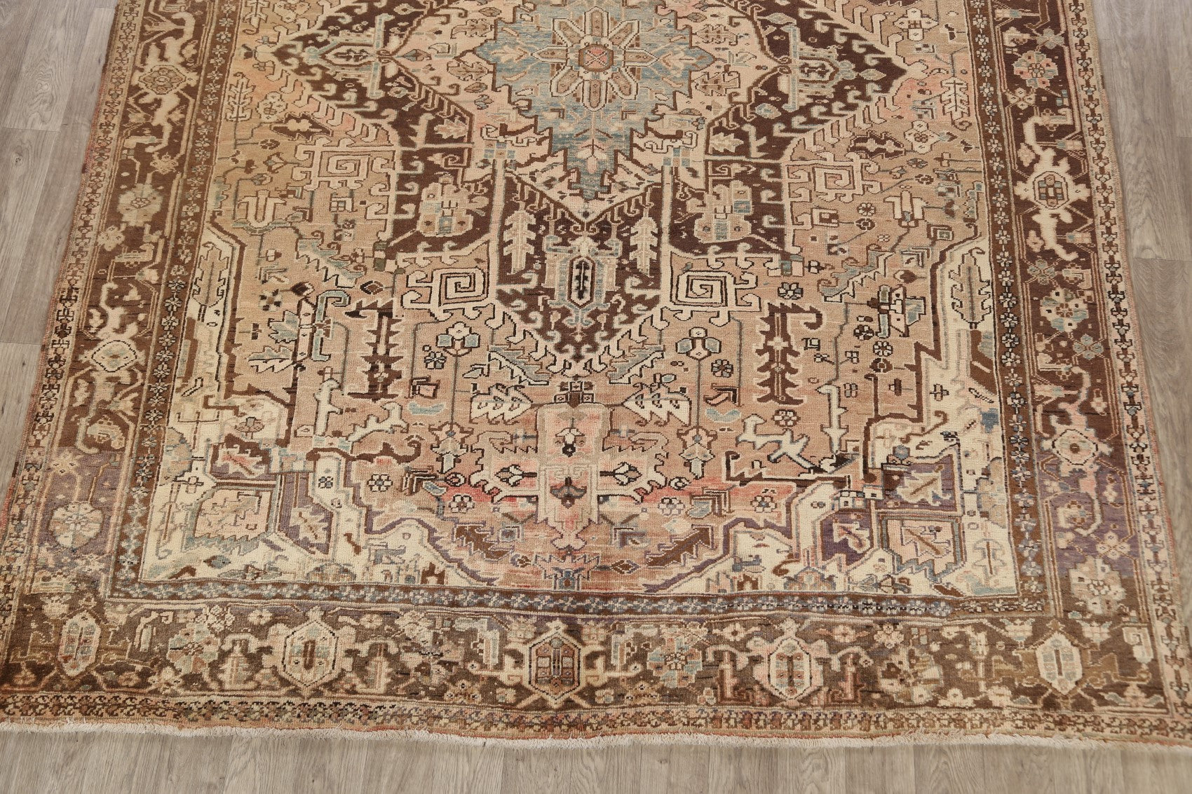 A Beautiful Genuine Persia ( Persia ) Heriz rug is Hand Knotted by skillful weavers in Persia ( Persia ) with 100% Wool Material. This rug is in Very Good (Low Pile-Abrash-Small Repair) condition. dimensions are 11' 7'' X 8' 7'' in foot and 353 X 262 in centimeter. the primary color is Beige & Ivories.