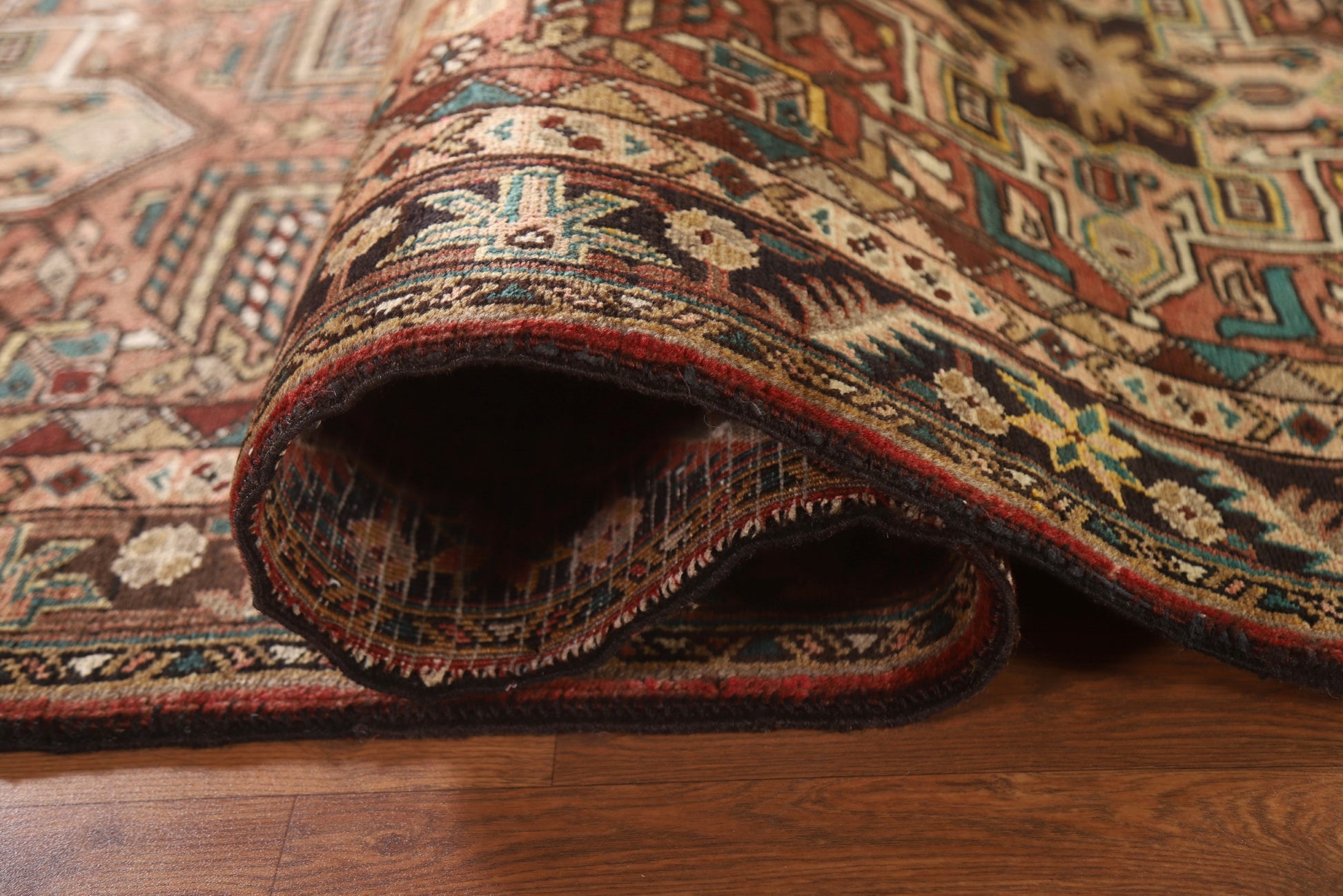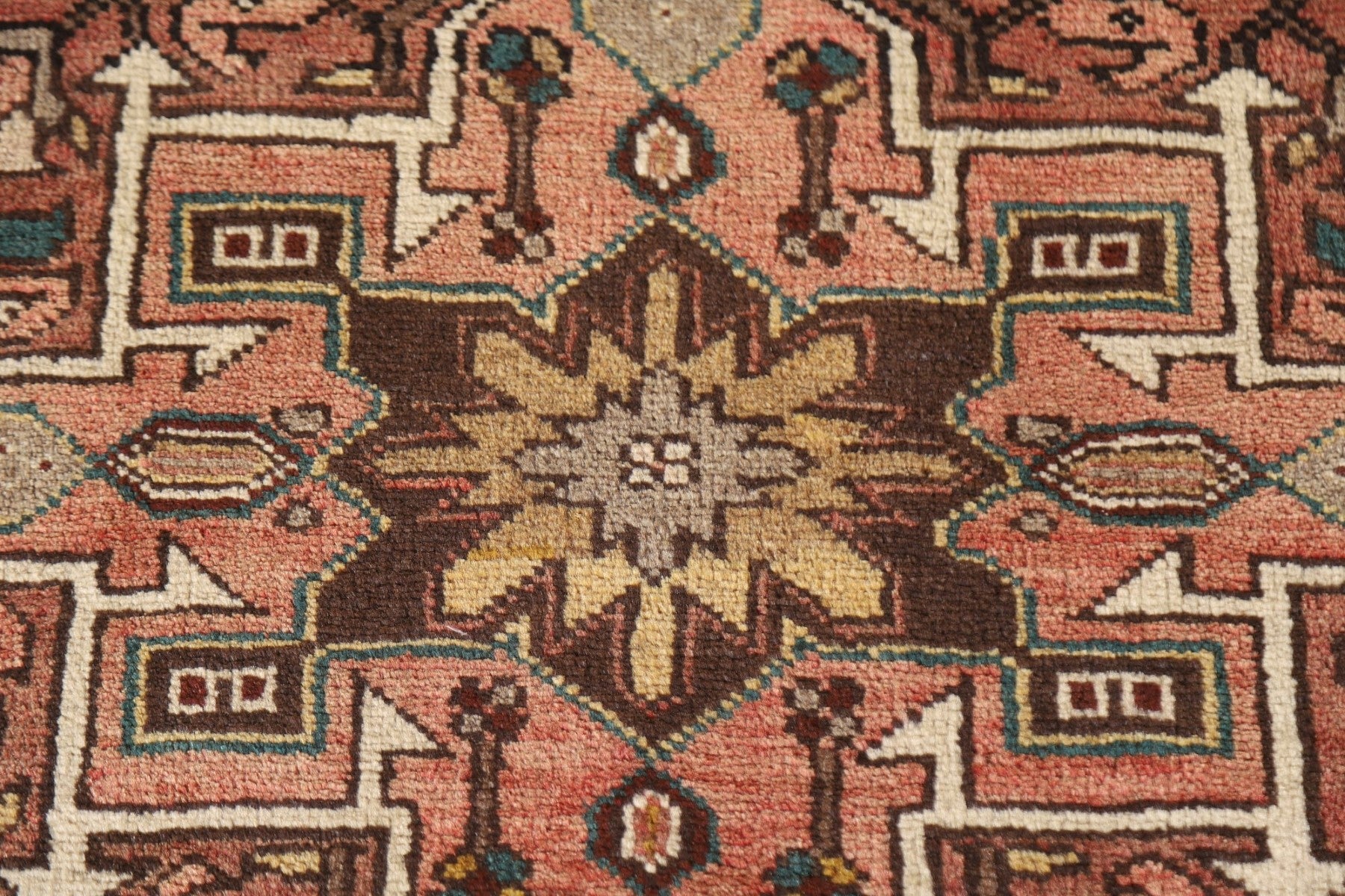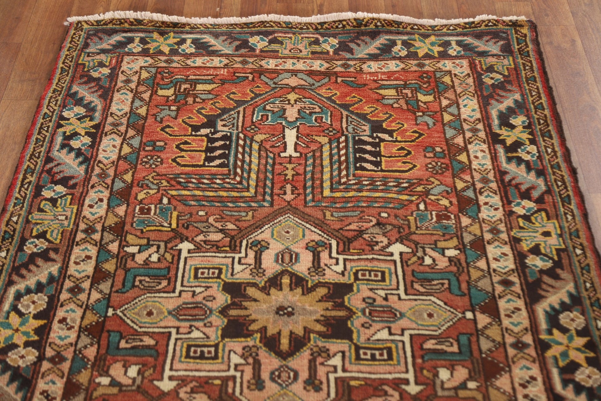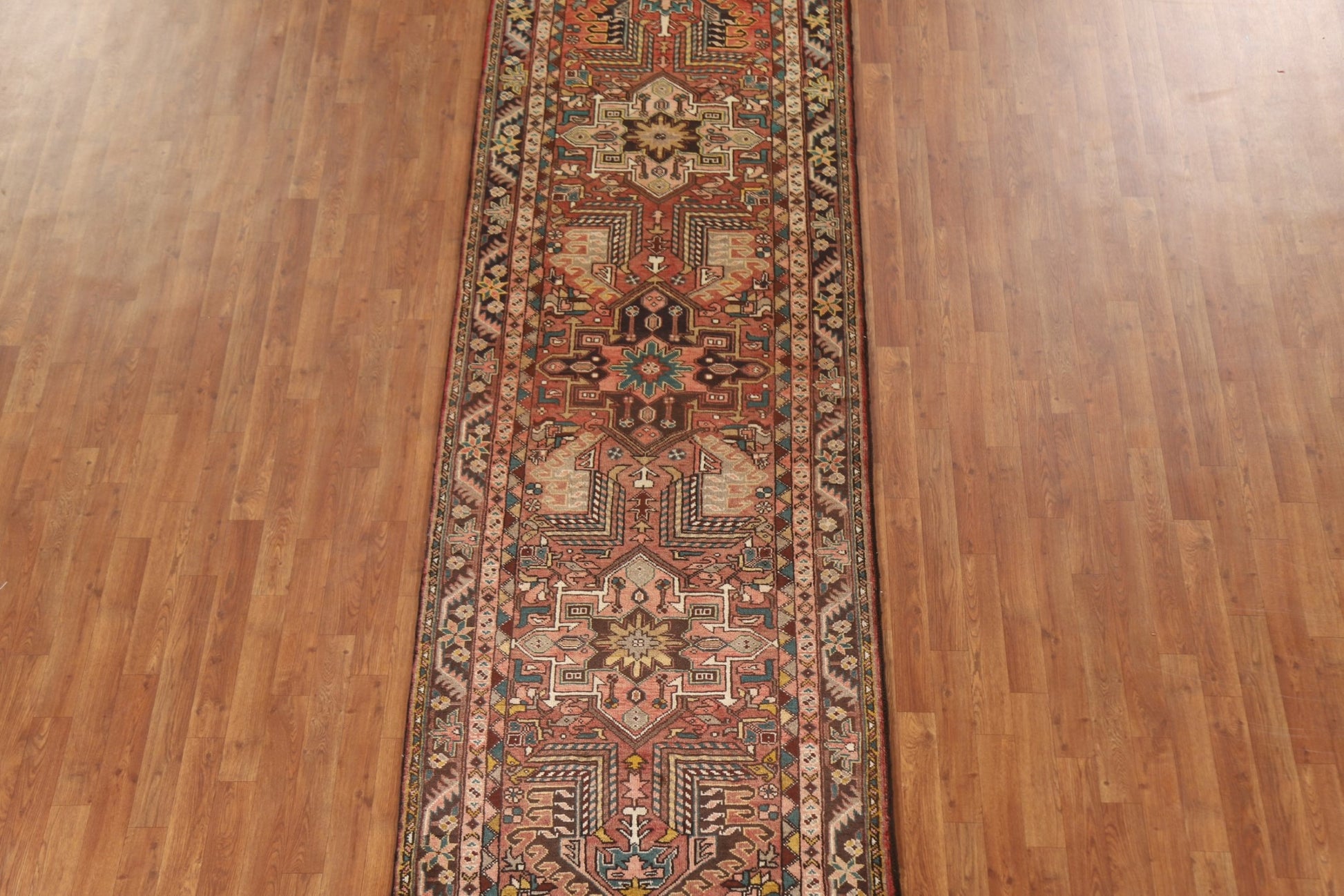 A Beautiful Genuine Persia ( Persia ) Heriz rug is Hand Knotted by skillful weavers in Persia ( Persia ) with 100% Wool Material. This rug is in Very Good condition. dimensions are 10' 7'' X 3' 5'' in foot and 323 X 104 in centimeter. the primary color is Oranges & Rust.