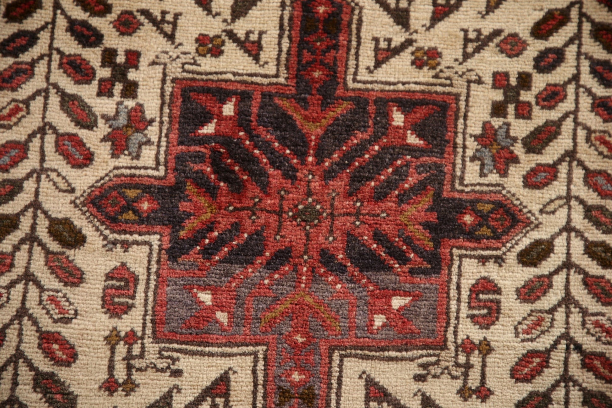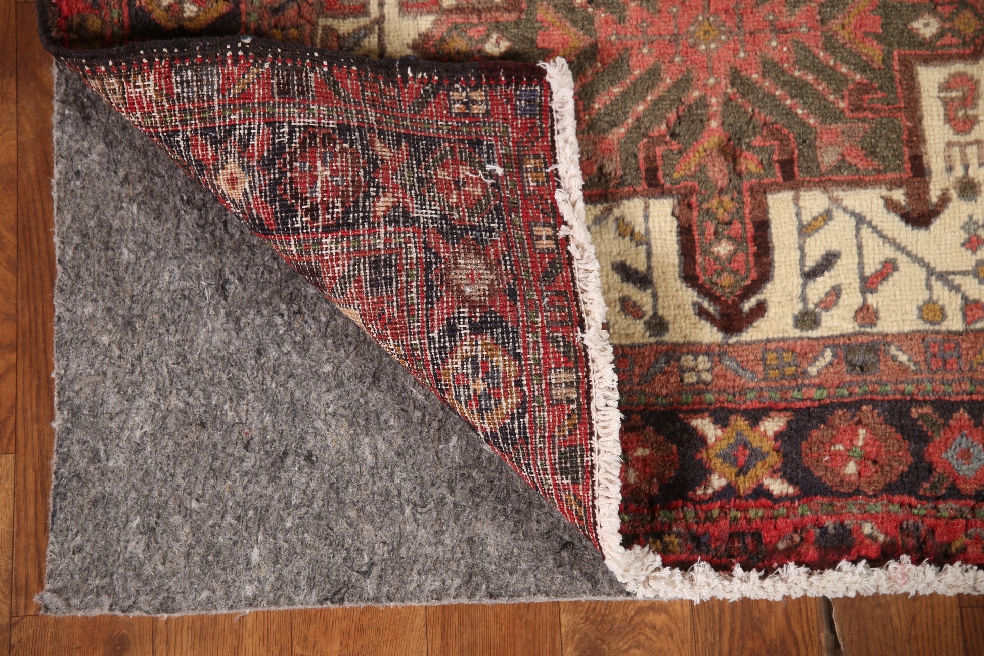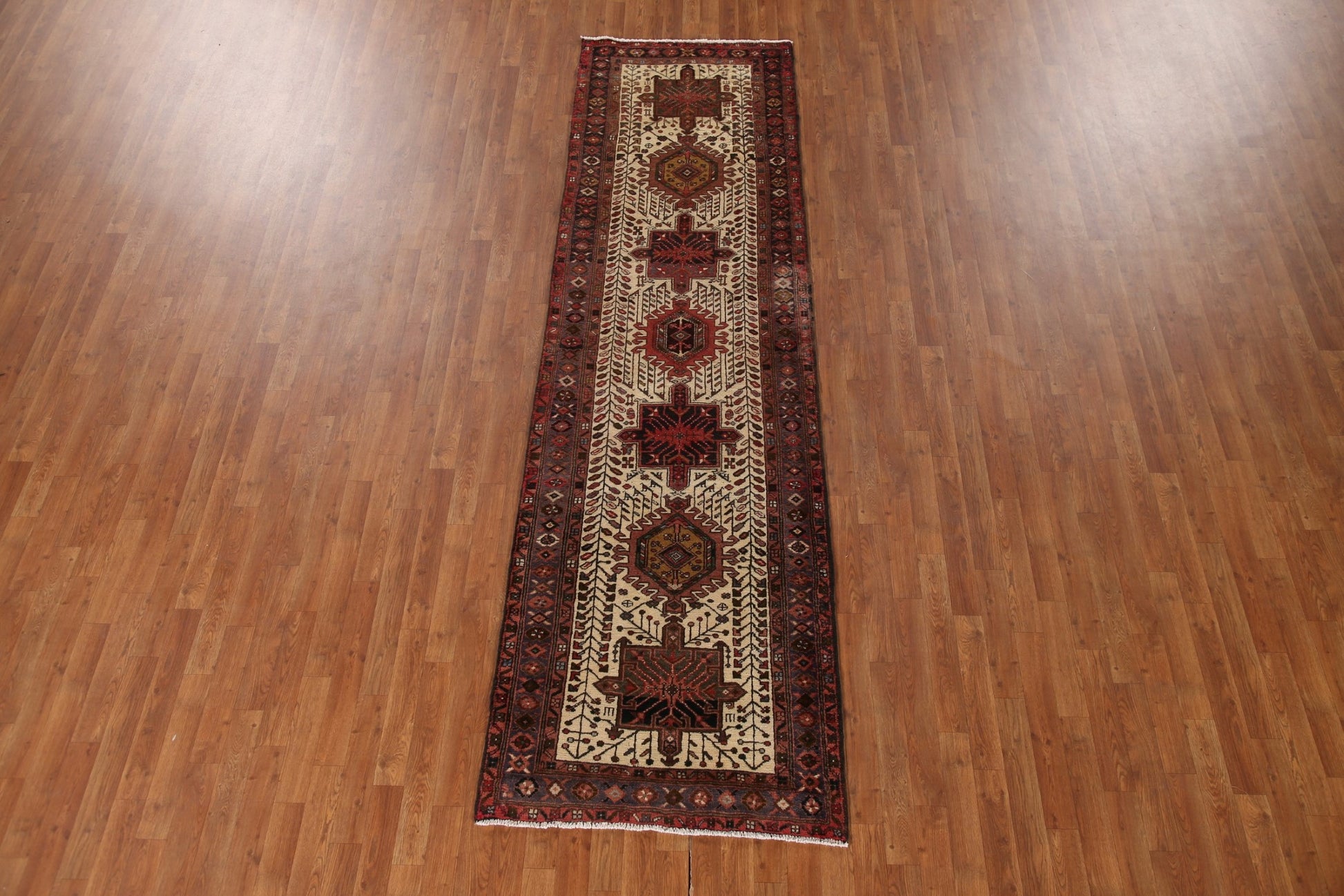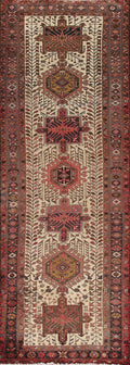 A Beautiful Genuine Persia ( Persia ) Heriz rug is Hand Knotted by skillful weavers in Persia ( Persia ) with 100% Wool Material. This rug is in Very Good (Low Pile-Abrash) condition. dimensions are 10' 8'' X 3' 1'' in foot and 325 X 94 in centimeter. the primary color is Beige & Ivories.