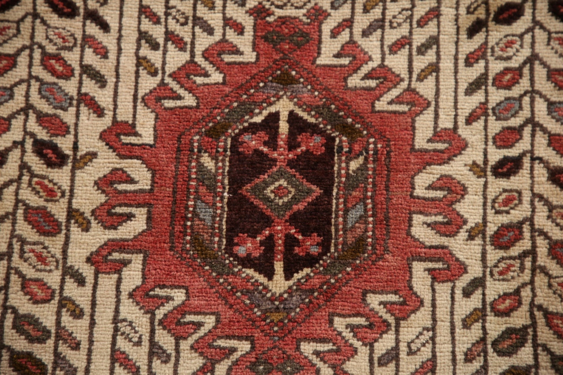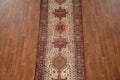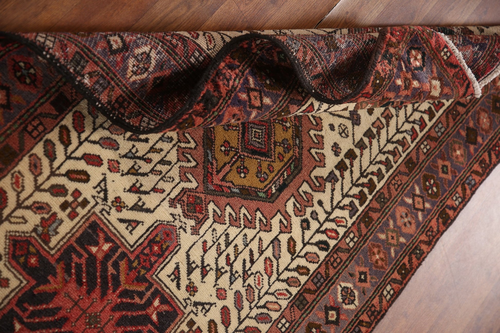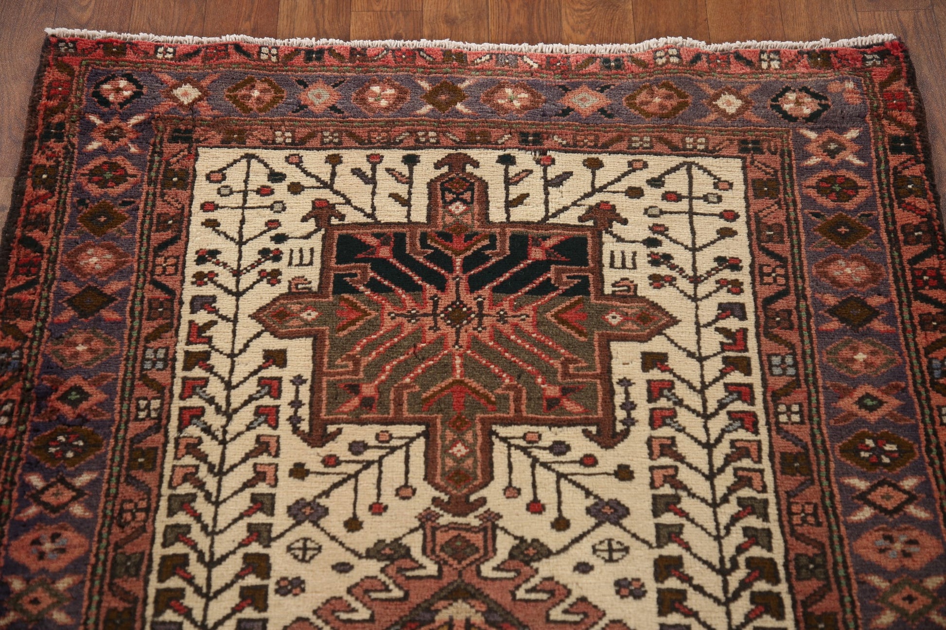 A Beautiful Genuine Persia ( Persia ) Heriz rug is Hand Knotted by skillful weavers in Persia ( Persia ) with 100% Wool Material. This rug is in Very Good (Low Pile-Abrash) condition. dimensions are 10' 8'' X 3' 1'' in foot and 325 X 94 in centimeter. the primary color is Beige & Ivories.