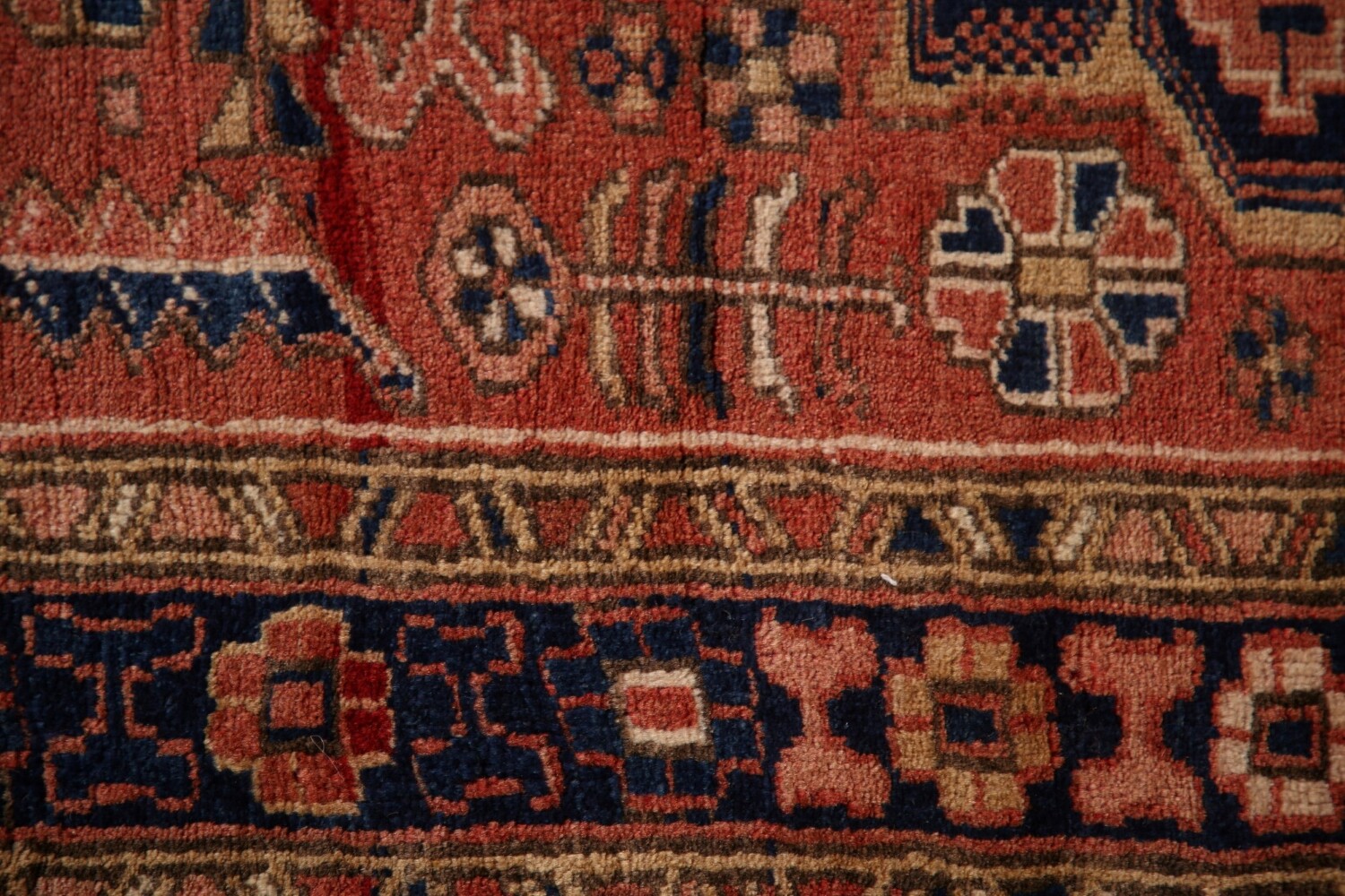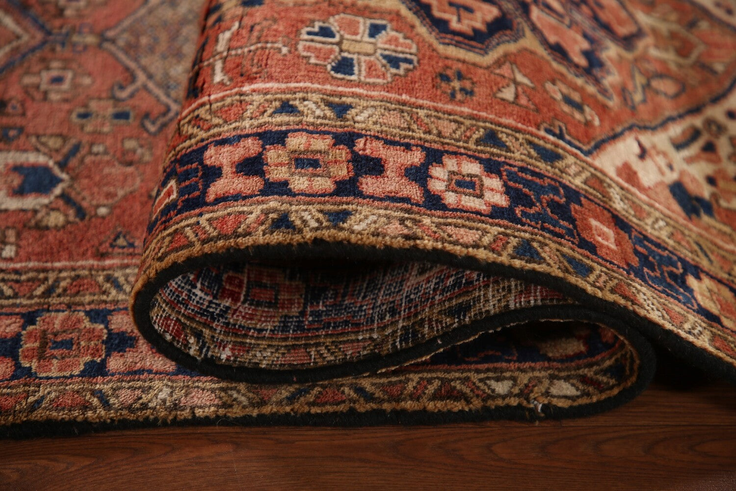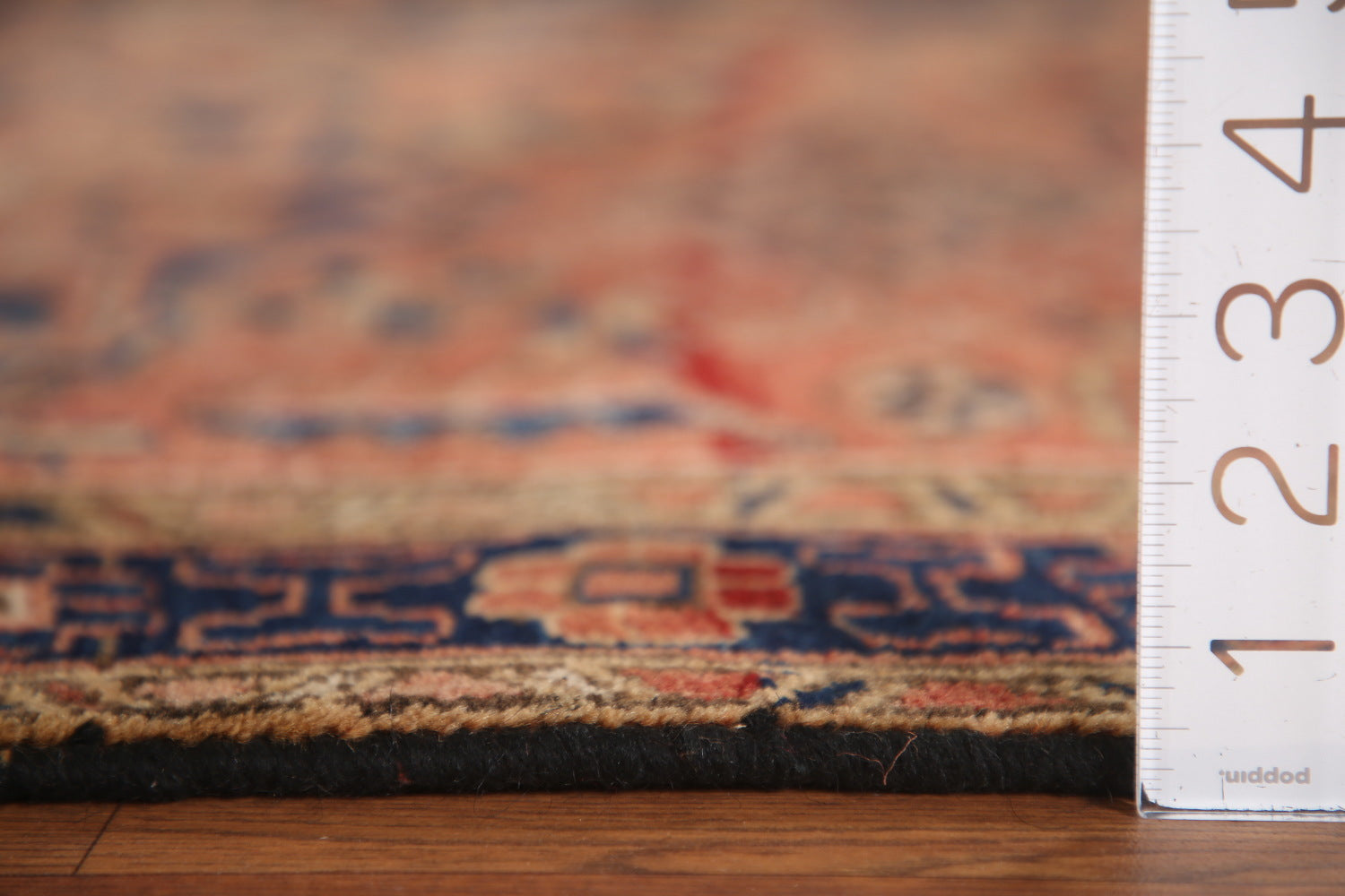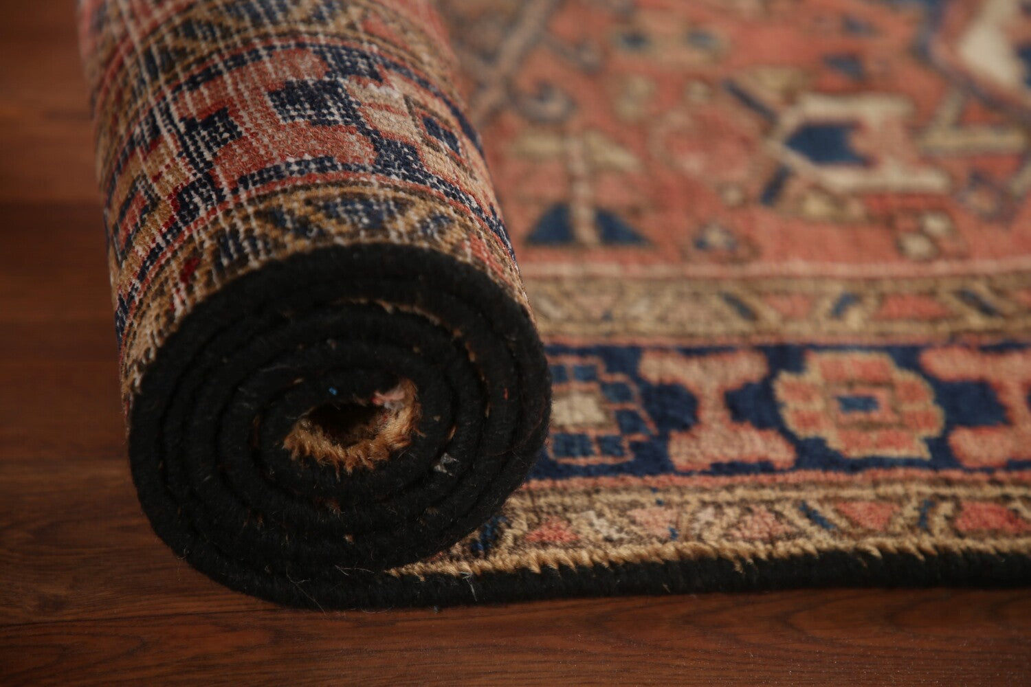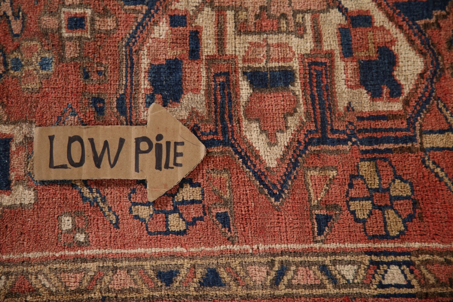 A Beautiful Genuine Persia ( Persia ) Heriz rug is Hand Knotted by skillful weavers in Persia ( Persia ) with 100% Wool Material. This rug is in Very Good (Low Pile-Abrash-Repair) condition. dimensions are 11' 2'' X 3' 3'' in foot and 340 X 99 in centimeter. the primary color is Coral.