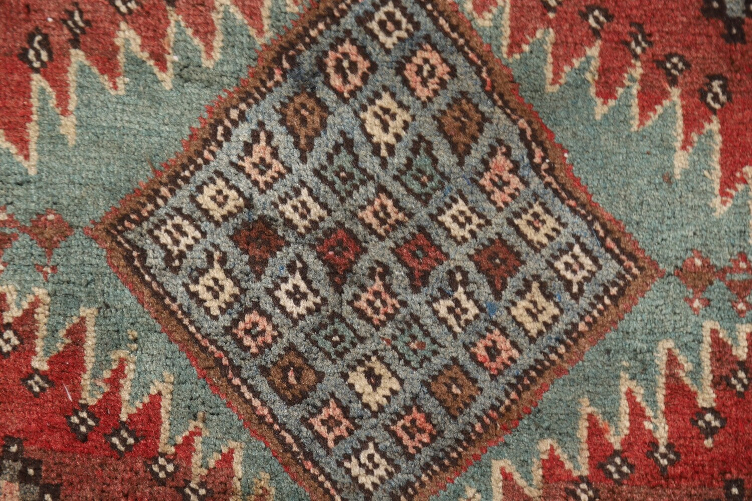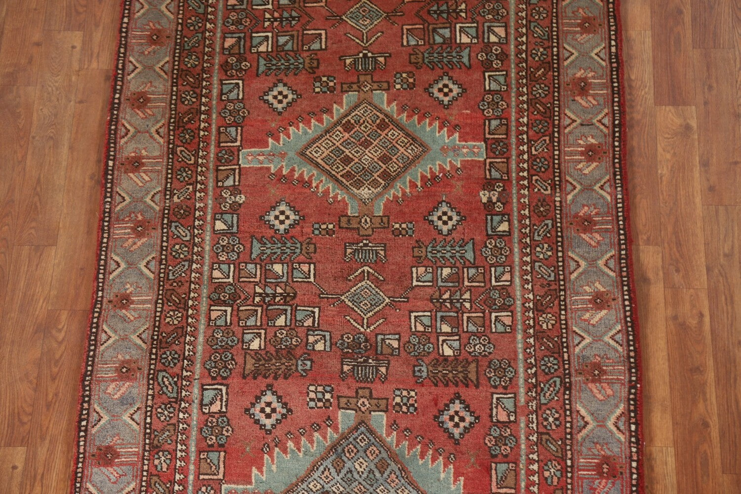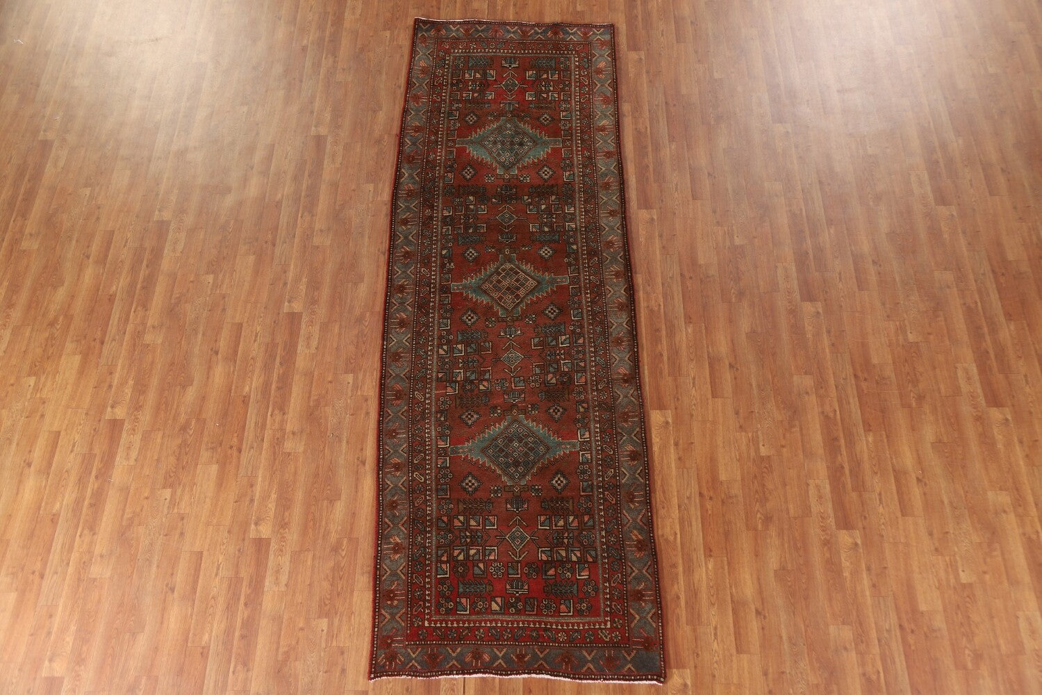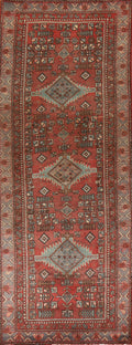 A Beautiful Genuine Persia ( Persia ) Heriz rug is Hand Knotted by skillful weavers in Persia ( Persia ) with 100% Wool Material. This rug is in Very Good condition. dimensions are 10' 7'' X 3' 6'' in foot and 323 X 107 in centimeter. the primary color is Red.