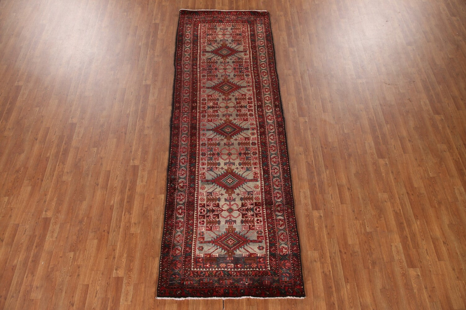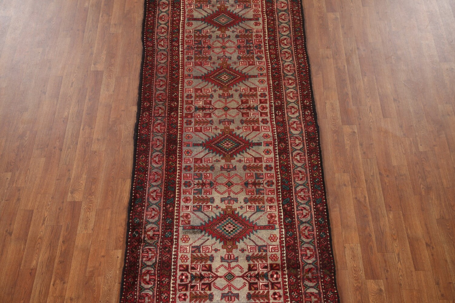 A Beautiful Genuine Persia ( Persia ) Heriz rug is Hand Knotted by skillful weavers in Persia ( Persia ) with 100% Wool Material. This rug is in Very Good (Abrash-Repair) condition. dimensions are 11' 0'' X 3' 7'' in foot and 335 X 109 in centimeter. the primary color is Brown.