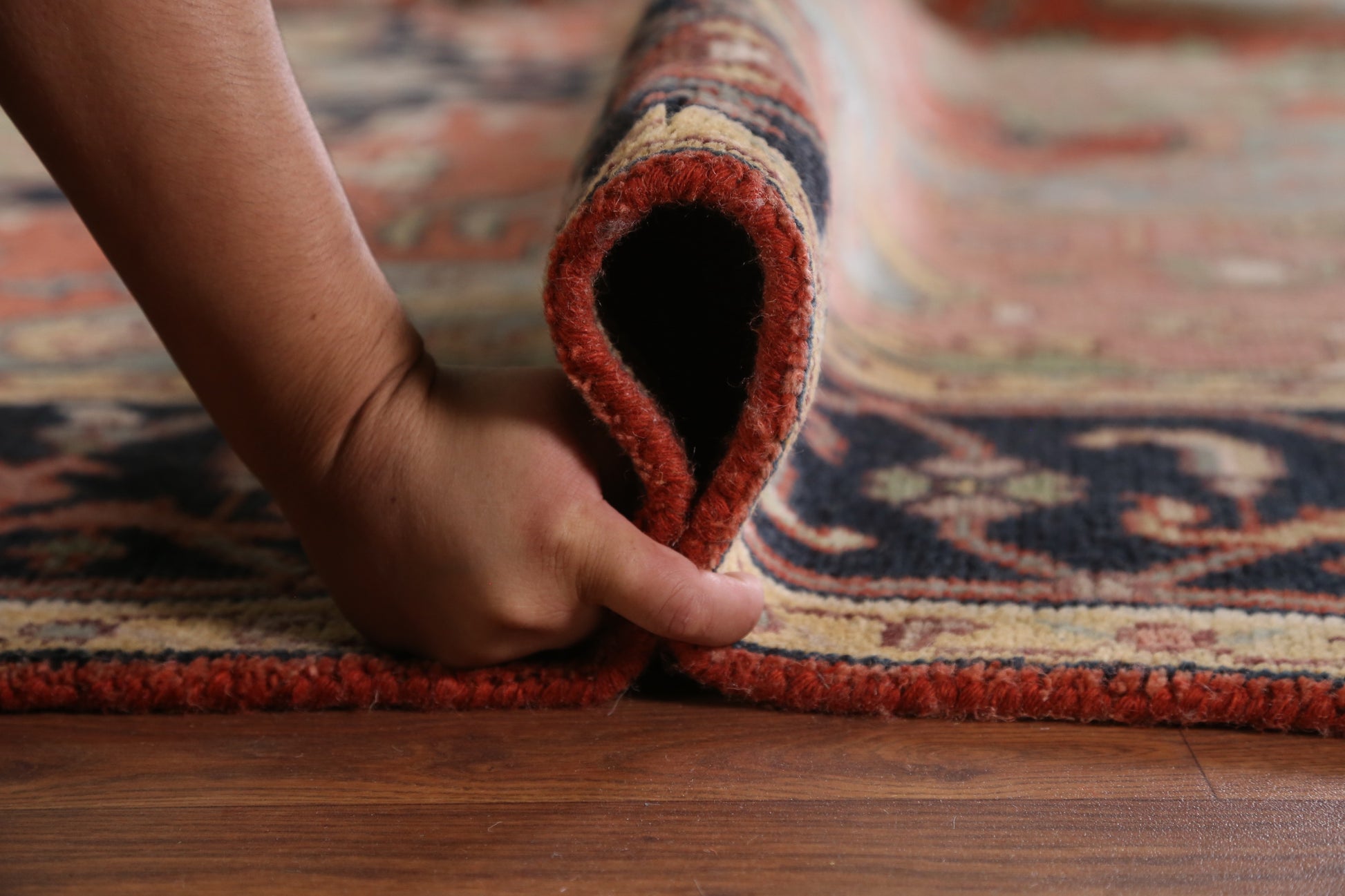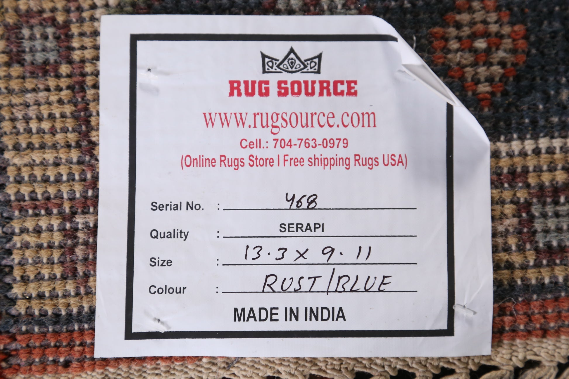 A Beautiful Genuine India Heriz (serapi) rug is Hand Knotted by skillful weavers in India with 100% Wool Material. This rug is in New, First Quality condition. dimensions are 13' 3'' X 9' 11'' in foot and  404 X 302 in centimeter. the primary color is Oranges & Rust.