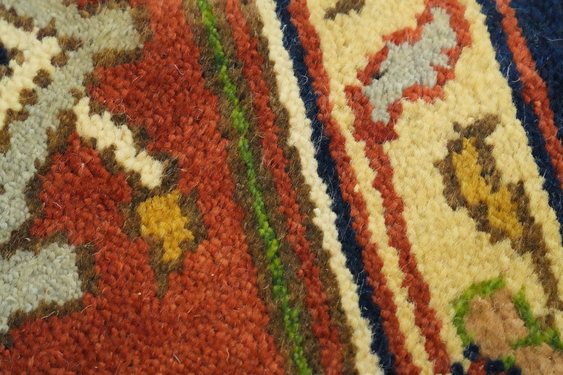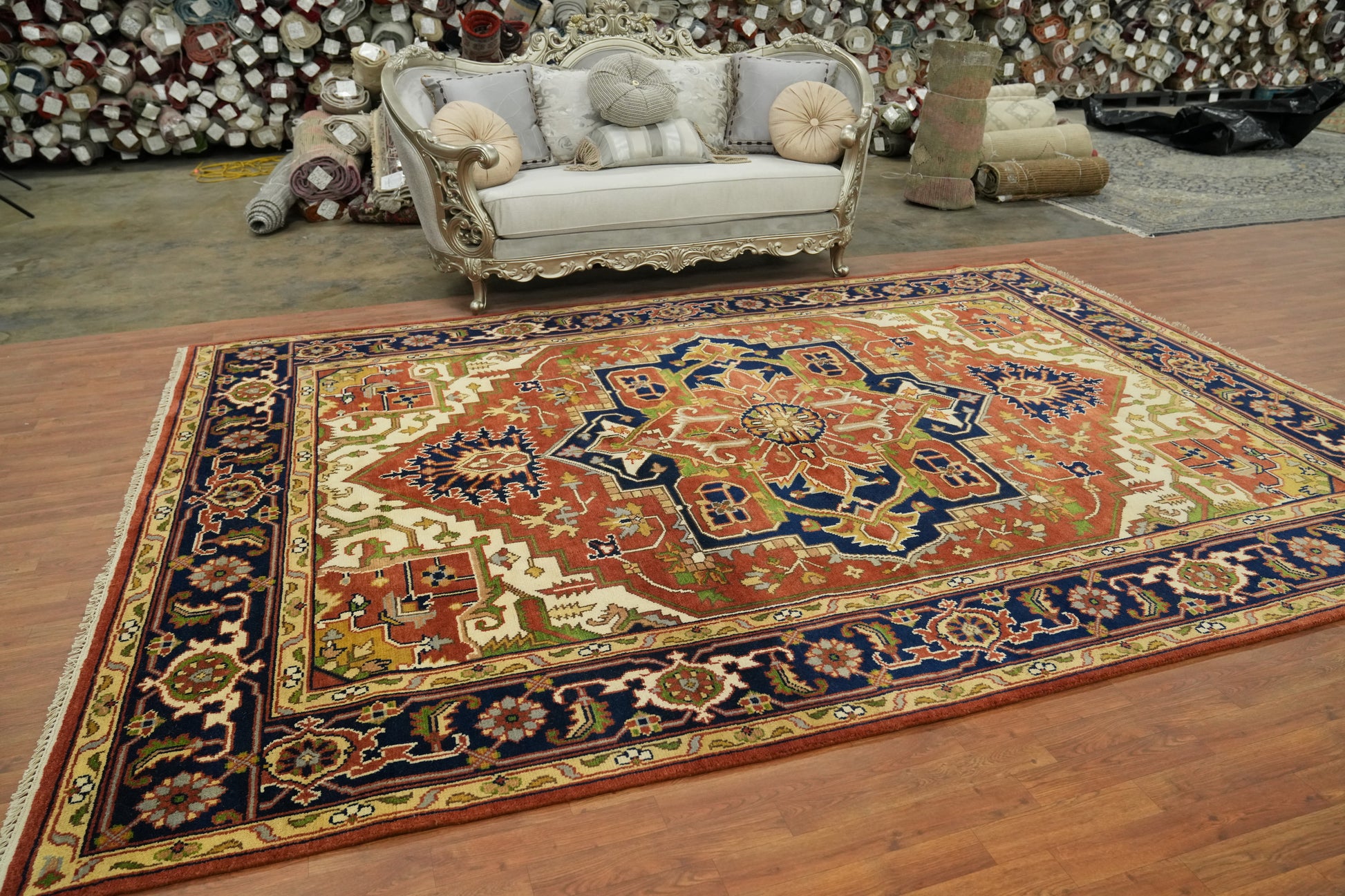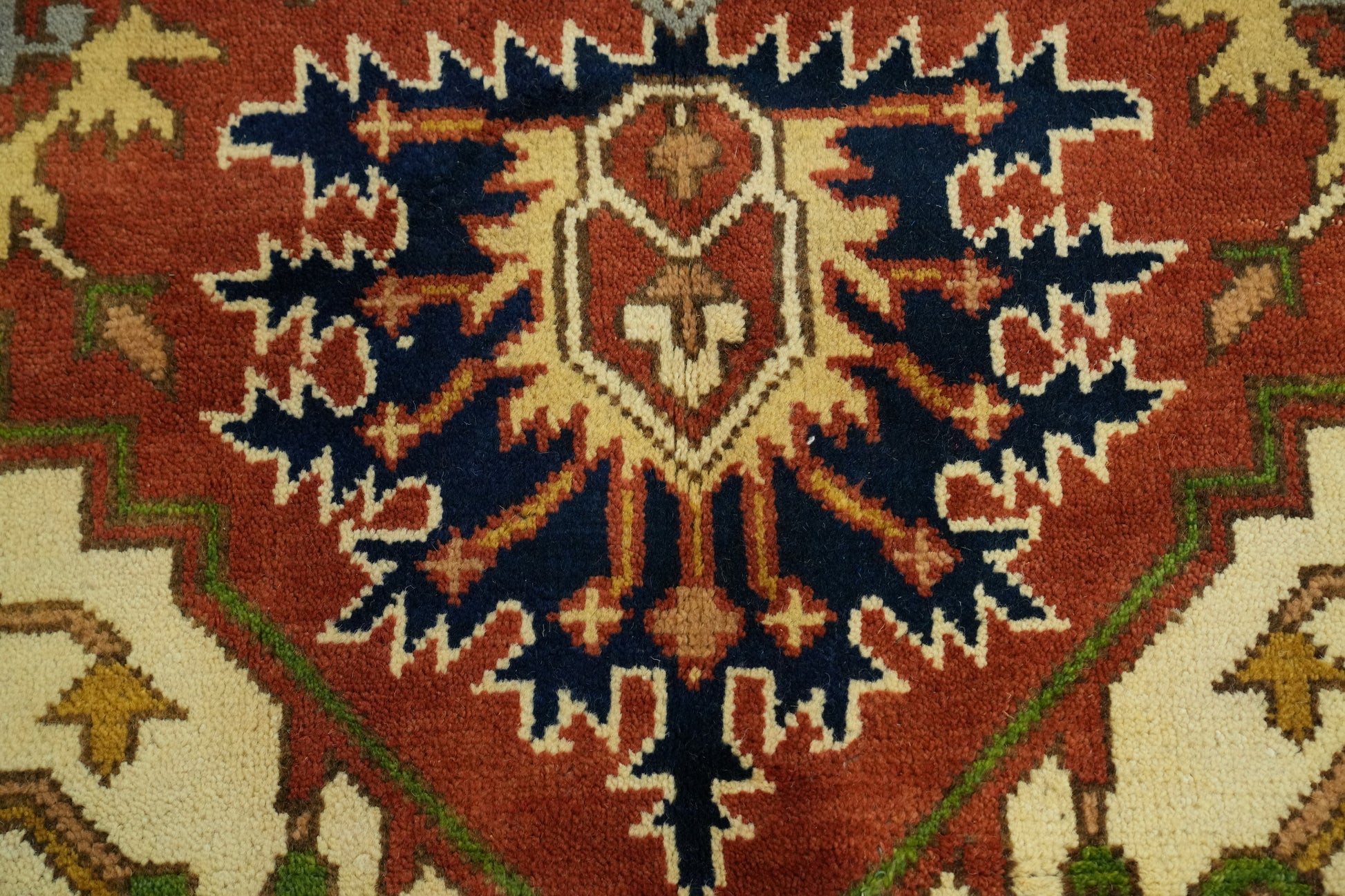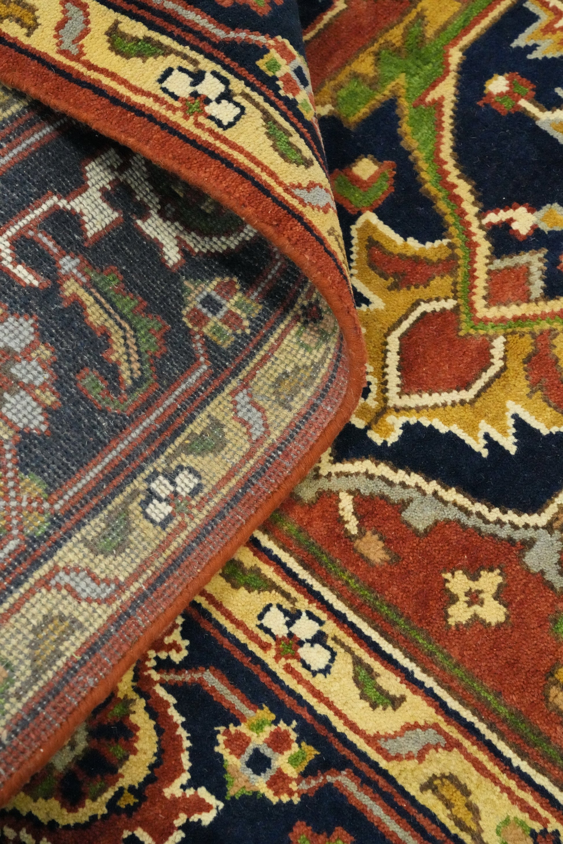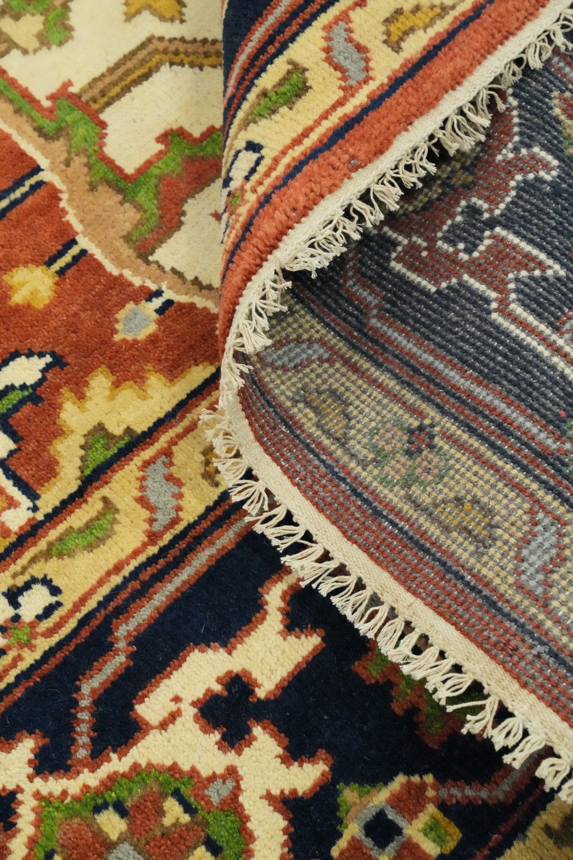 A Beautiful Genuine India Heriz (serapi) rug is Hand Knotted by skillful weavers in India with 100% Wool Material. This rug is in New, First Quality condition. dimensions are 12' 5'' X 8' 10'' in foot and  378 X 269 in centimeter. the primary color is Oranges & Rust.