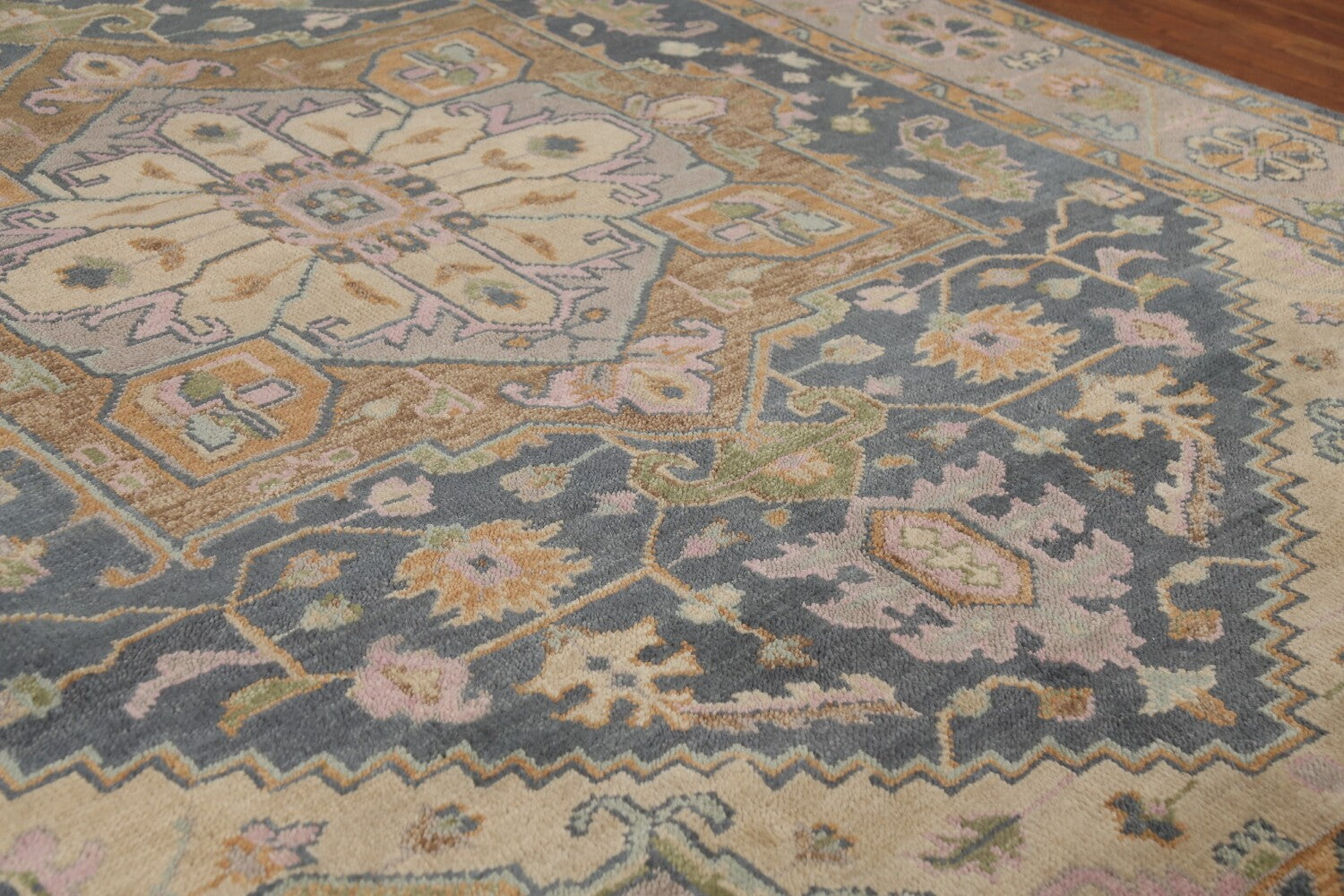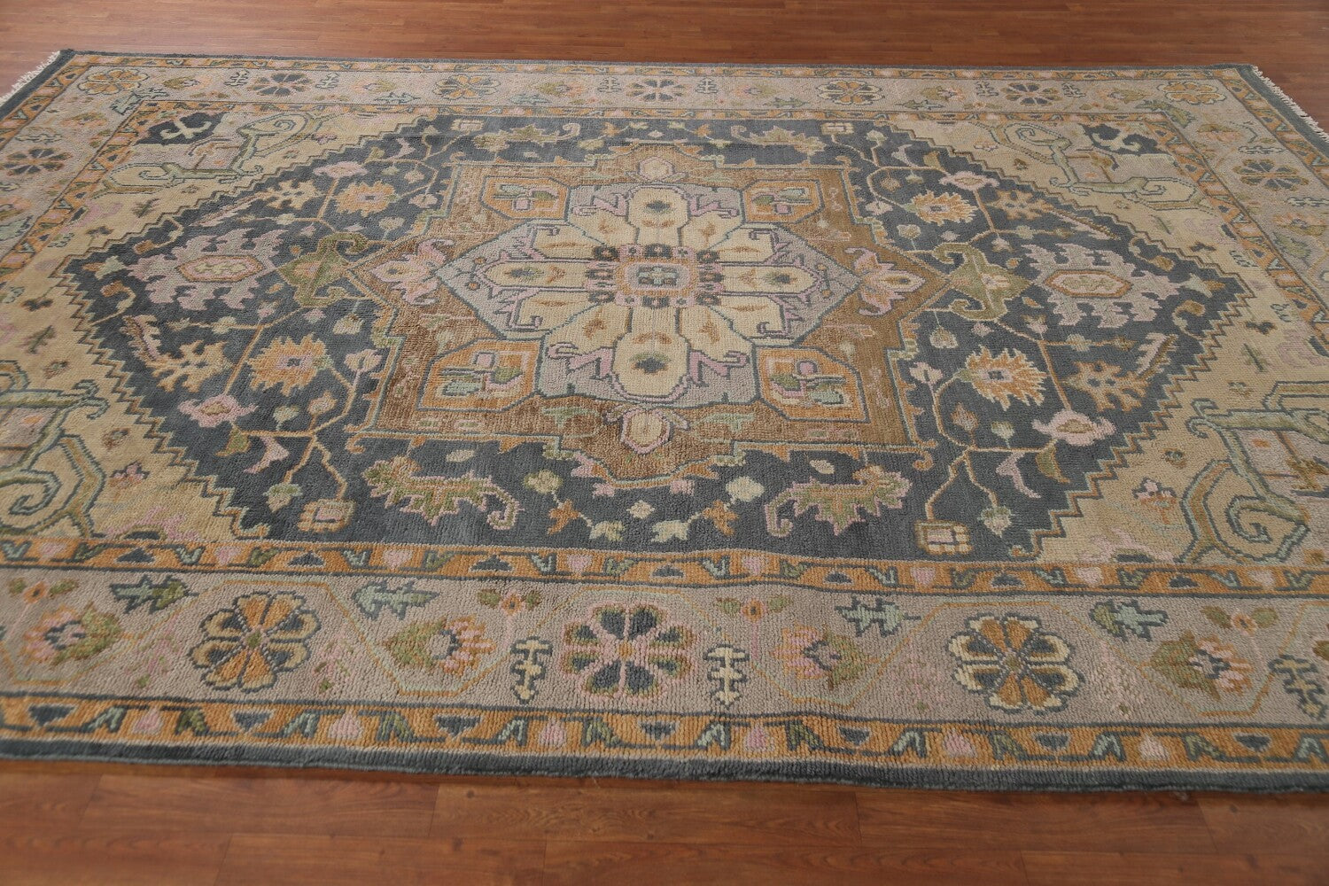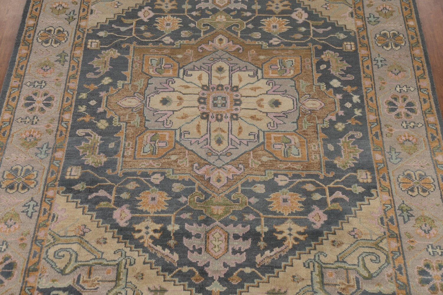 A Beautiful Genuine India Heriz (serapi) rug is Hand Knotted by skillful weavers in India with 100% Wool Material. This rug is in New, First Quality condition. dimensions are 12' 0'' X 8' 9'' in foot and 366 X 267 in centimeter. the primary color is Greys & Charcoal.