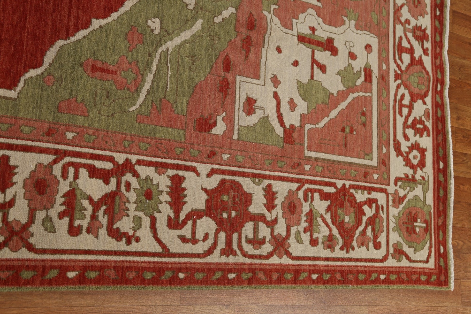 A Beautiful Genuine Turkey Heriz (serapi) rug is Hand Knotted by skillful weavers in Turkey with 100% Wool Material. This rug is in New, First Quality condition. dimensions are 12' 11'' X 9' 10'' in foot and 394 X 300 in centimeter. the primary color is Red.