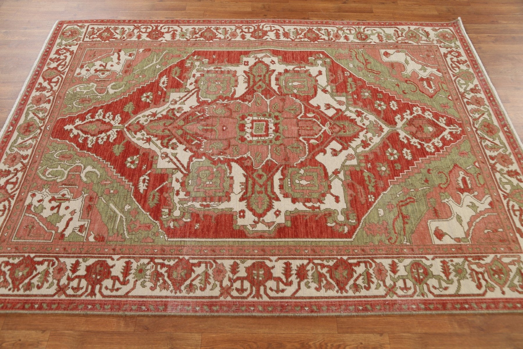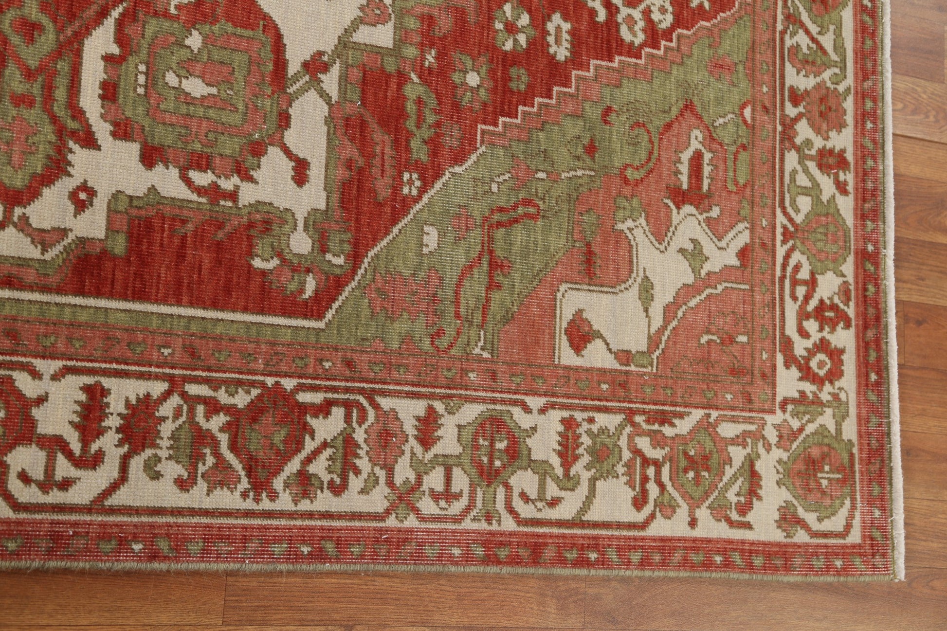 A Beautiful Genuine Turkey Heriz (serapi) rug is Hand Knotted by skillful weavers in Turkey with 100% Wool Material. This rug is in New, First Quality condition. dimensions are 6' 10'' X 5' 0'' in foot and 208 X 152 in centimeter. the primary color is Red.