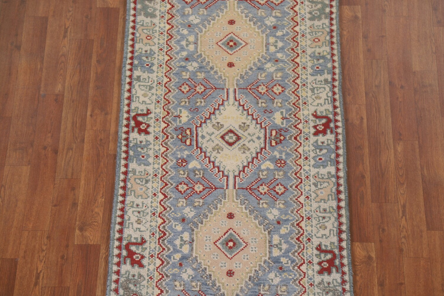 A Beautiful Genuine India Heriz (serapi) rug is Hand Knotted by skillful weavers in India with 100% Wool Material. This rug is in New, First Quality condition. dimensions are 11' 9'' X 2' 7'' in foot and 358 X 79 in centimeter. the primary color is Navy Blue & Blues.