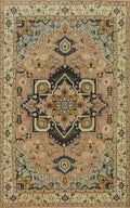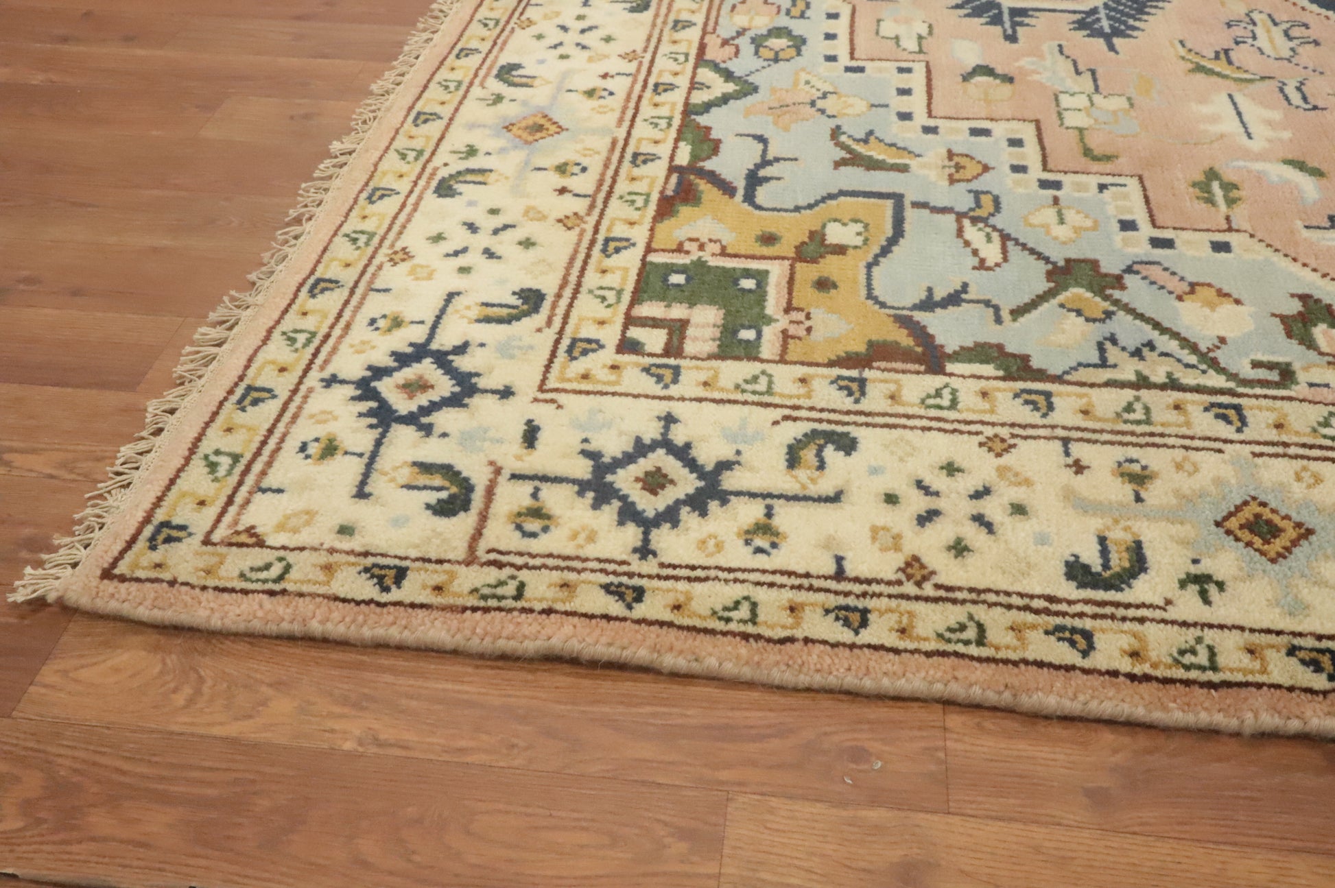 A Beautiful Genuine India Heriz (serapi) rug is Hand Knotted by skillful weavers in India with 100% Wool Material. This rug is in New, First Quality condition. dimensions are 8' 11'' X 6' 0'' in foot and 272 X 183 in centimeter. the primary color is Peach.