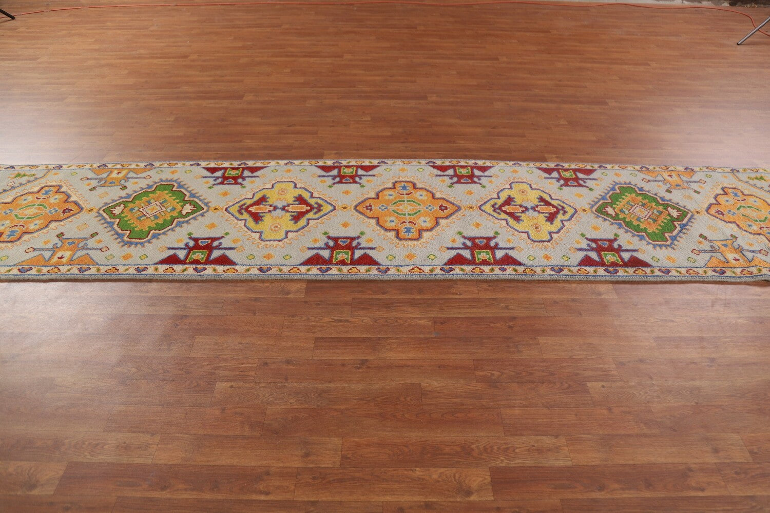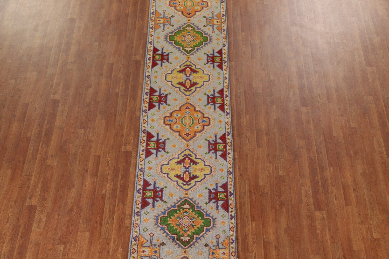 A Beautiful Genuine India Heriz (serapi) rug is Hand Knotted by skillful weavers in India with 100% Wool Material. This rug is in New, First Quality condition. dimensions are 11' 9'' X 2' 7'' in foot and 358 X 79 in centimeter. the primary color is Green.