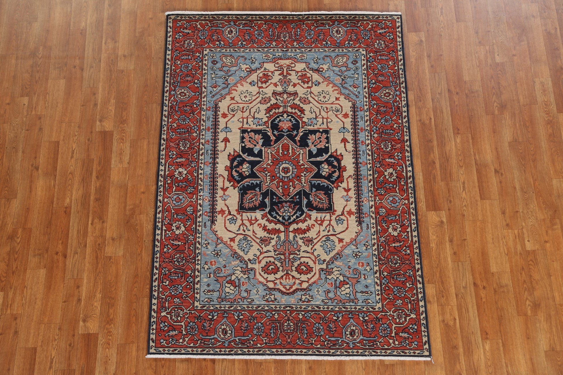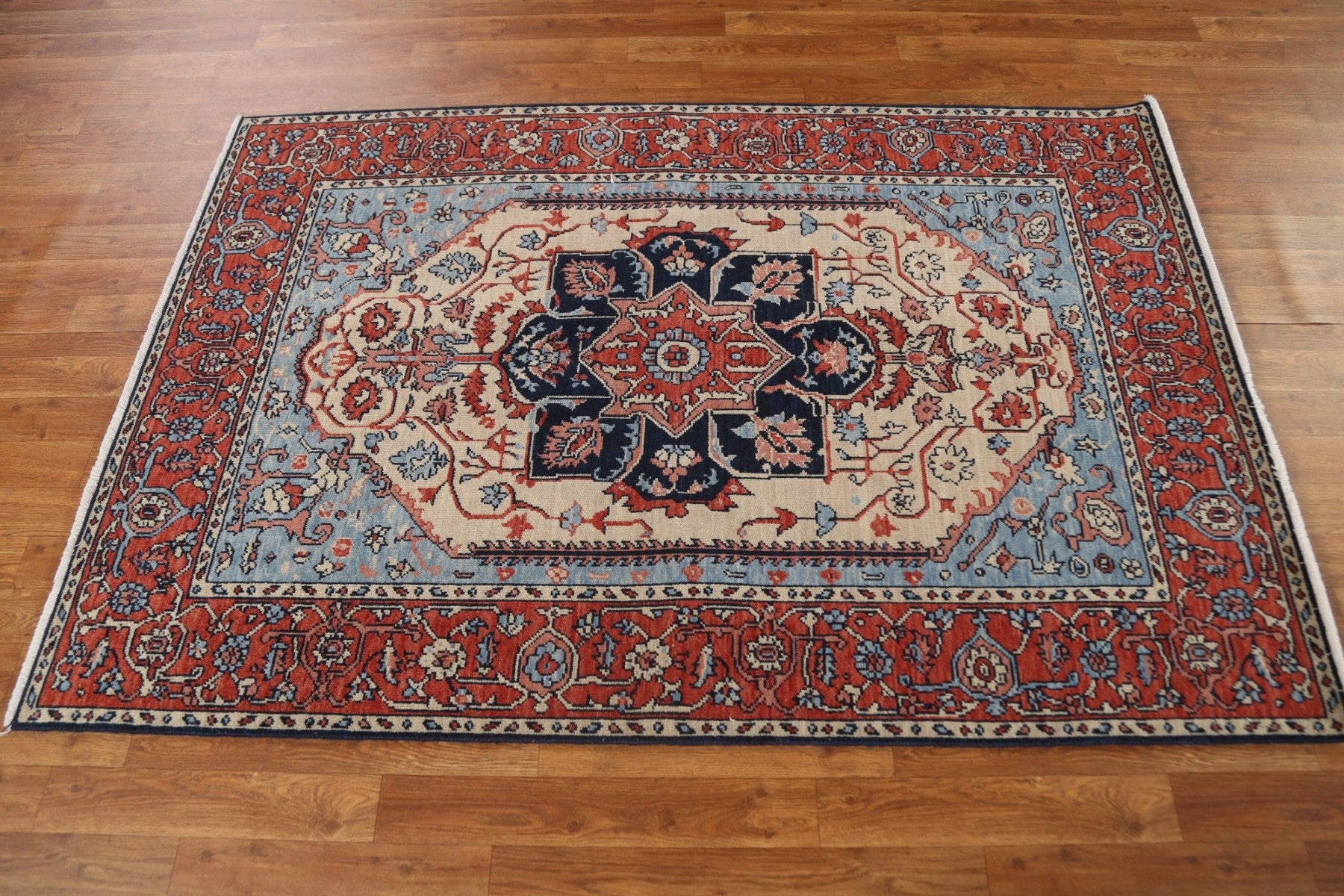 Geometric Heriz Serapi Turkish Area Rug 4x6