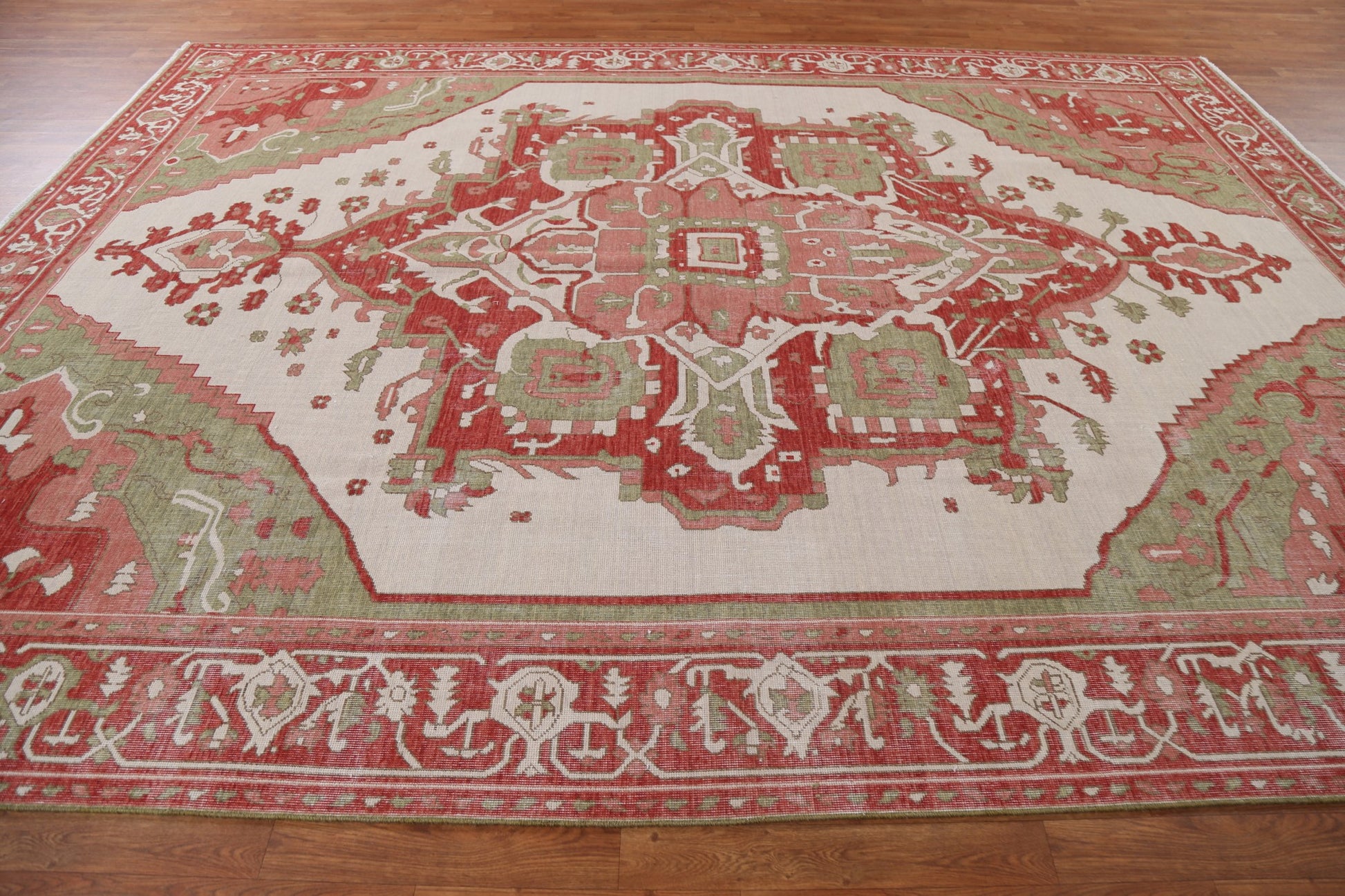 A Beautiful Genuine Turkey Heriz (serapi) rug is Hand Knotted by skillful weavers in Turkey with 100% Wool Material. This rug is in New, First Quality condition. dimensions are 12' 0'' X 9' 0'' in foot and 366 X 274 in centimeter. the primary color is Beige & Ivories.