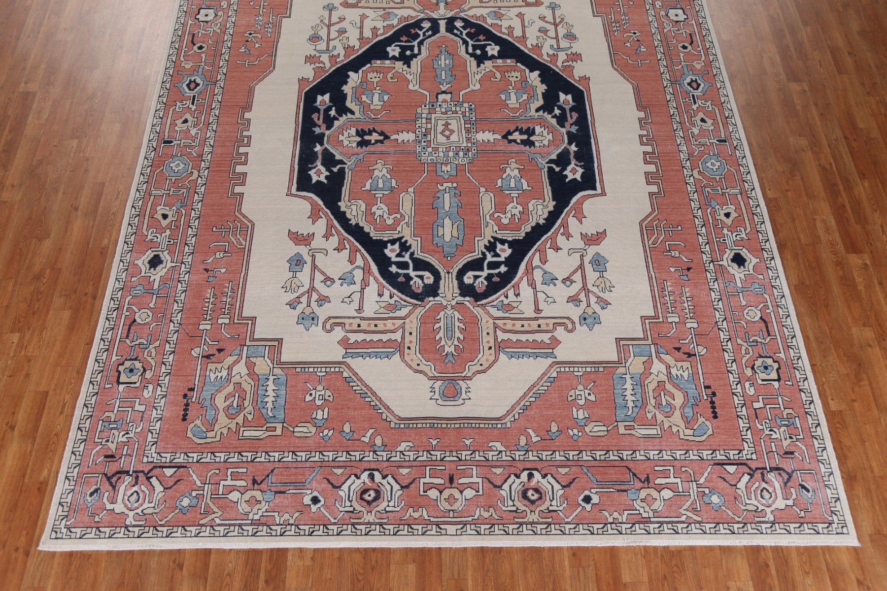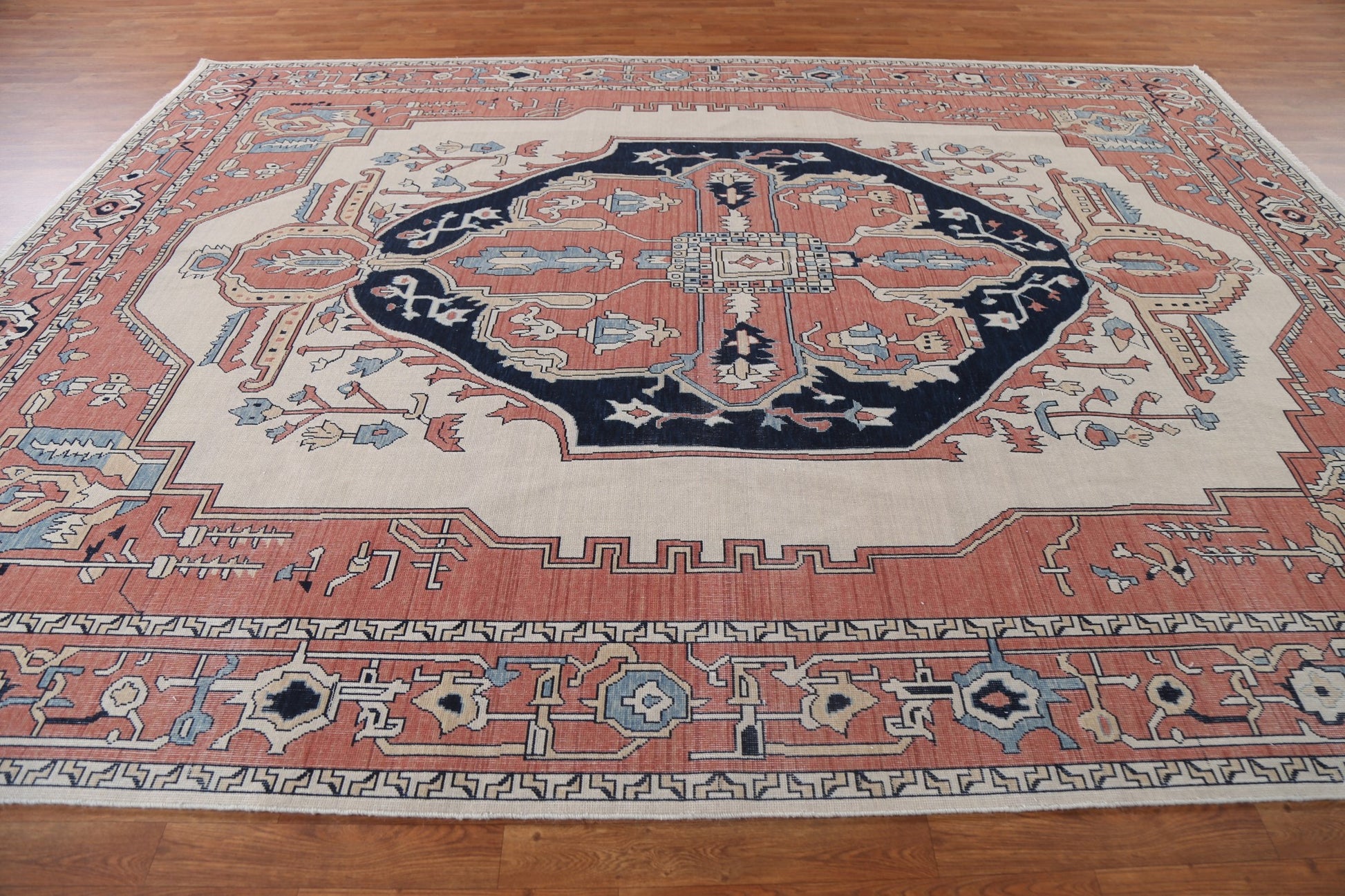 A Beautiful Genuine Turkey Heriz (serapi) rug is Hand Knotted by skillful weavers in Turkey with 100% Wool Material. This rug is in New, First Quality condition. dimensions are 12' 0'' X 9' 0'' in foot and 366 X 274 in centimeter. the primary color is Beige & Ivories.