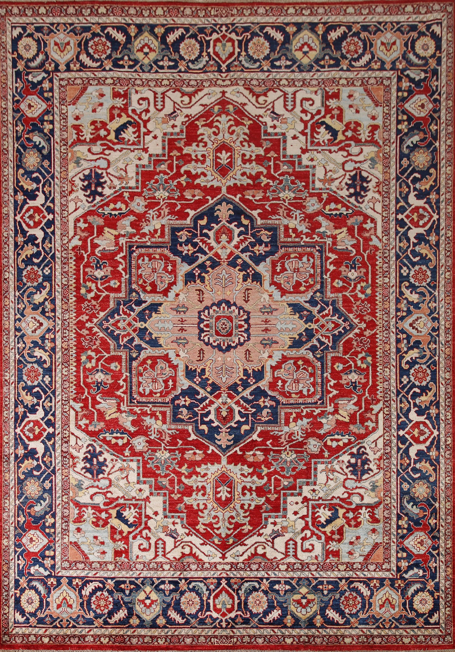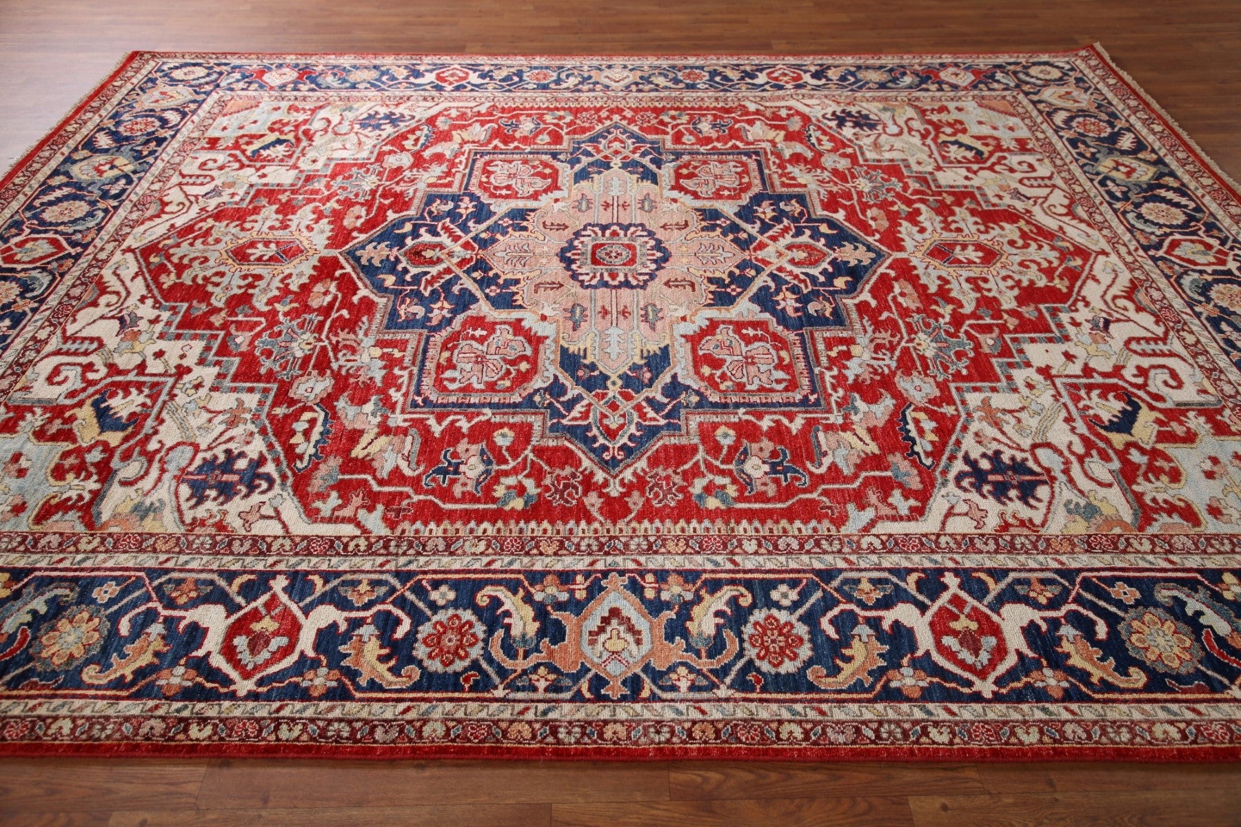 A Beautiful Genuine Pakistan Heriz (serapi) rug is Hand Knotted by skillful weavers in Pakistan with 100% Wool Material. This rug is in New, First Quality condition. dimensions are 10' 1'' X 8' 0'' in foot and 307 X 244 in centimeter. the primary color is Red.