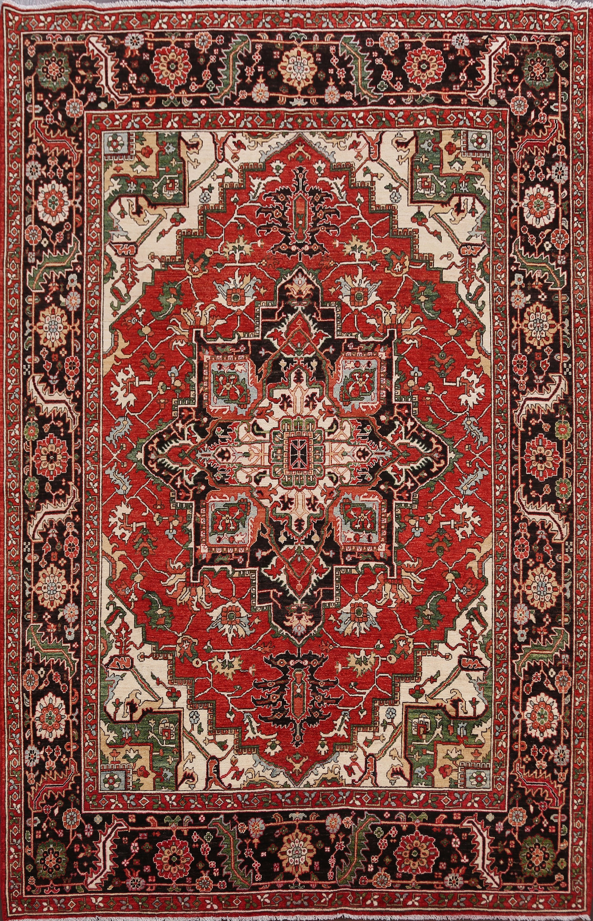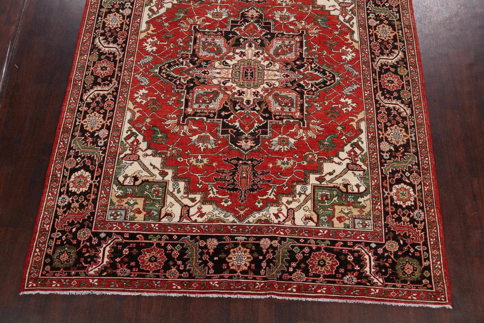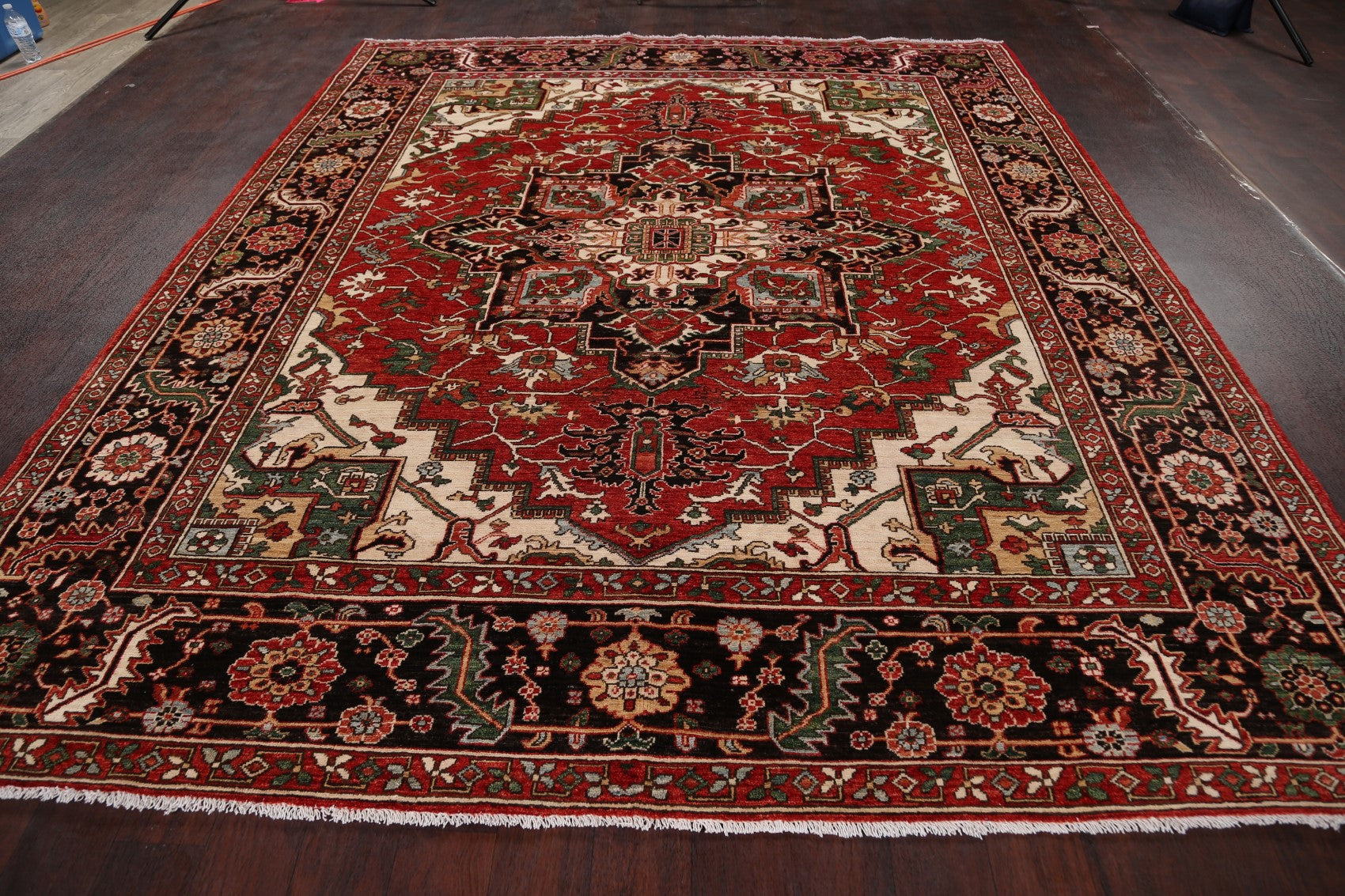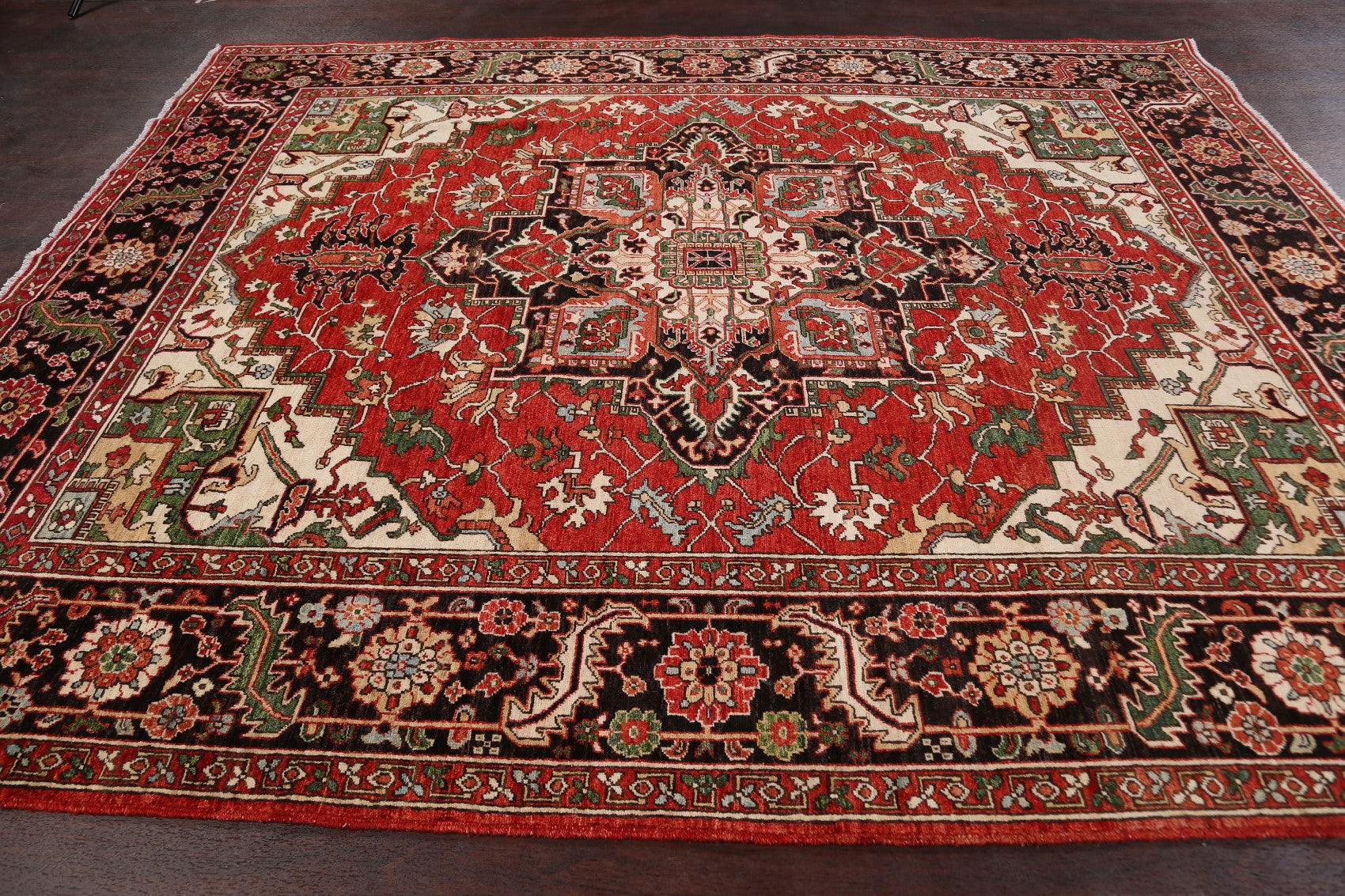 A Beautiful Genuine Pakistan Heriz (serapi) rug is Hand Knotted by skillful weavers in Pakistan with 100% Wool Material. This rug is in New, First Quality condition. dimensions are 9' 6'' X 8' 0'' in foot and 290 X 244 in centimeter. the primary color is Red.