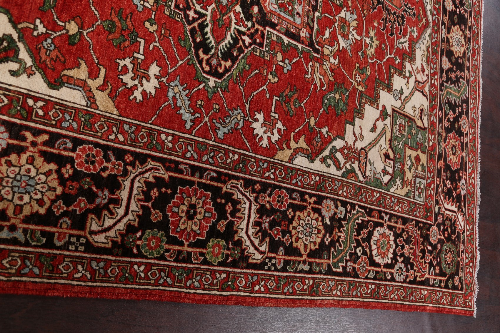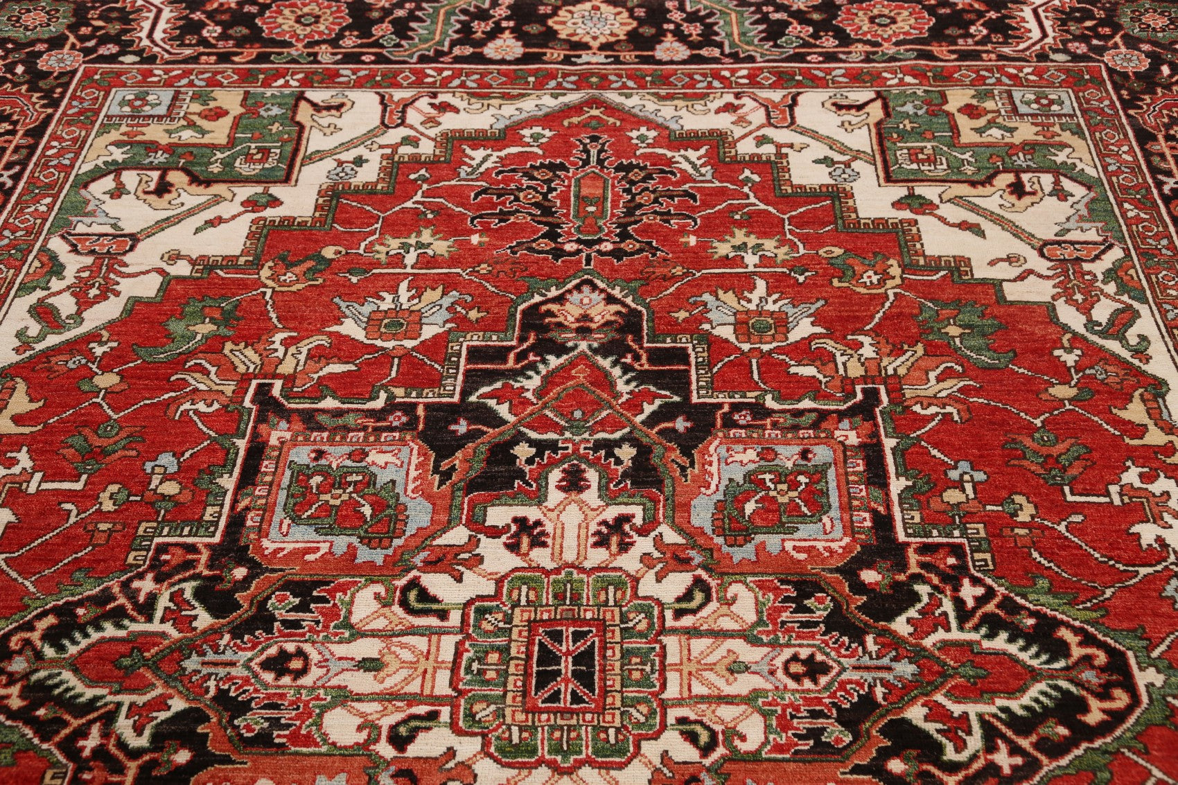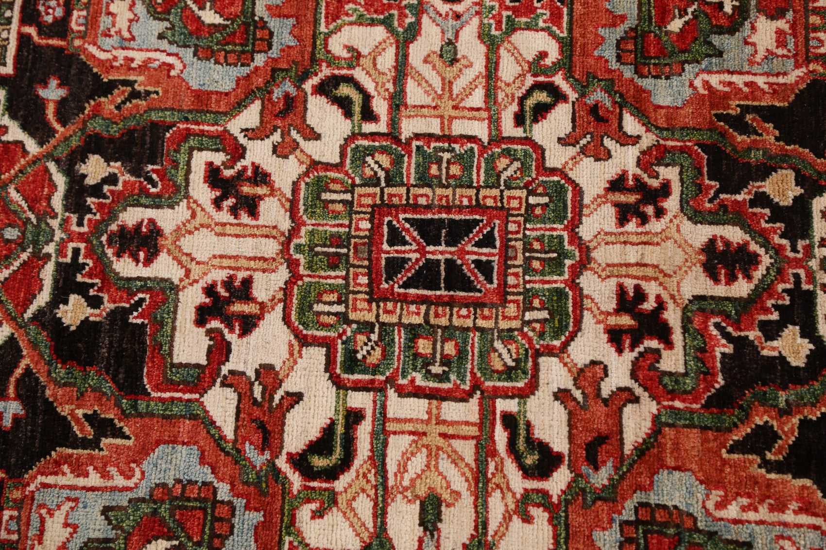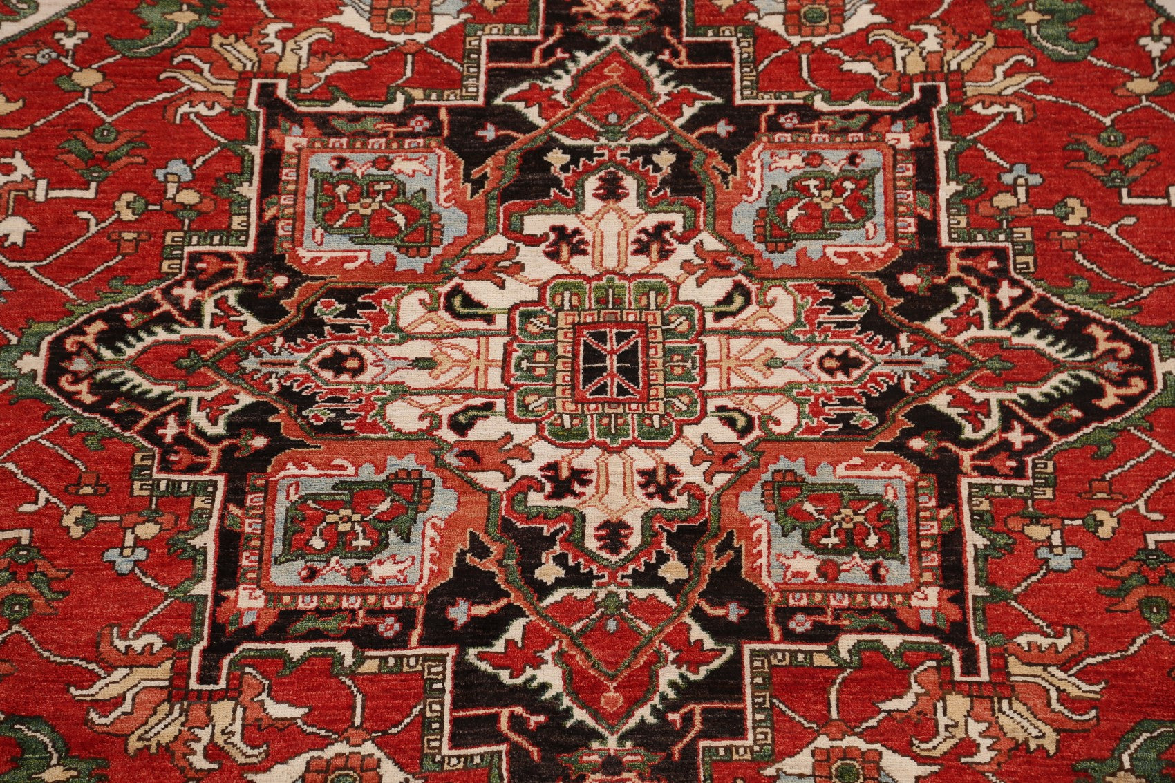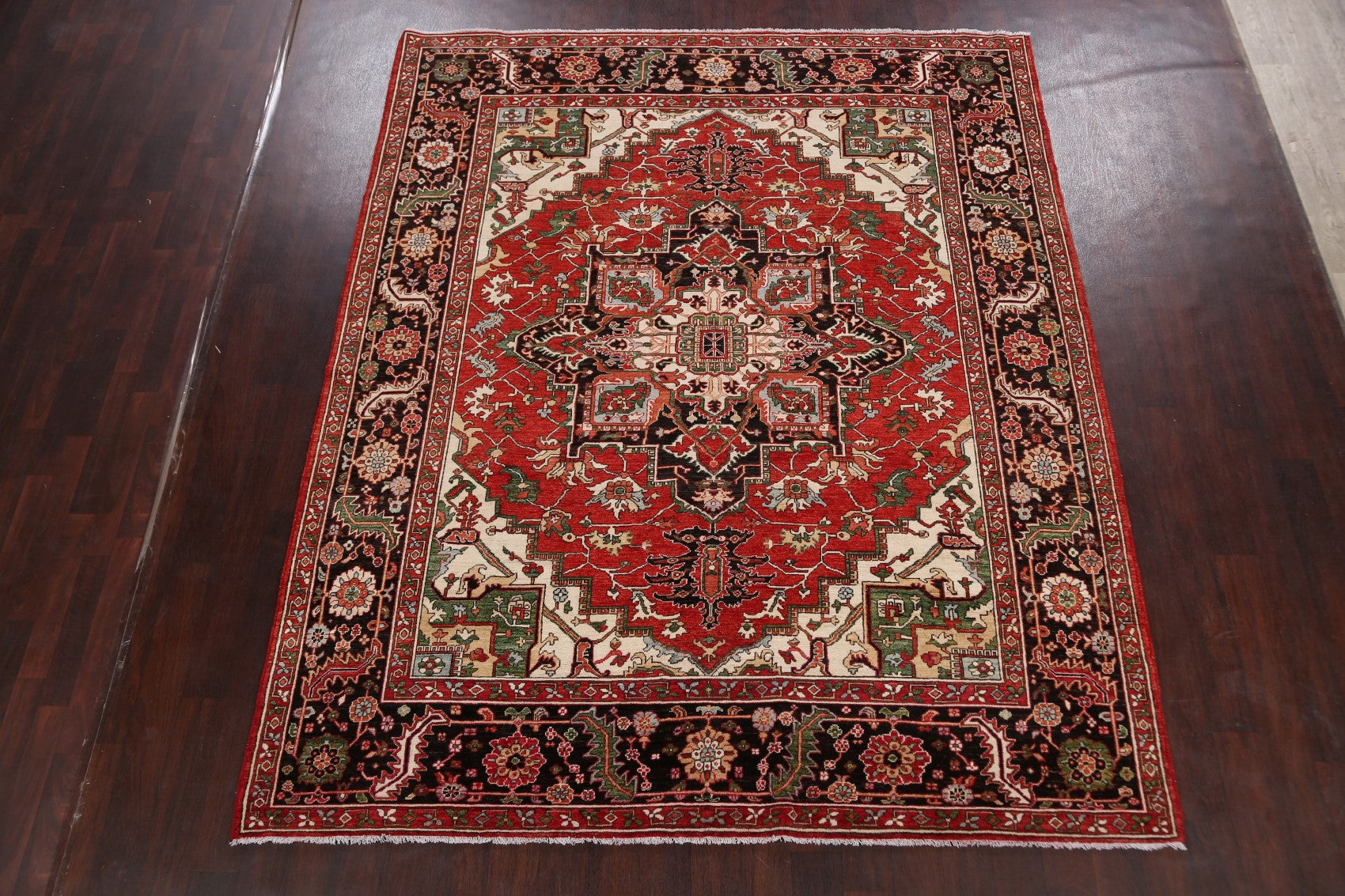 A Beautiful Genuine Pakistan Heriz (serapi) rug is Hand Knotted by skillful weavers in Pakistan with 100% Wool Material. This rug is in New, First Quality condition. dimensions are 9' 6'' X 8' 0'' in foot and 290 X 244 in centimeter. the primary color is Red.