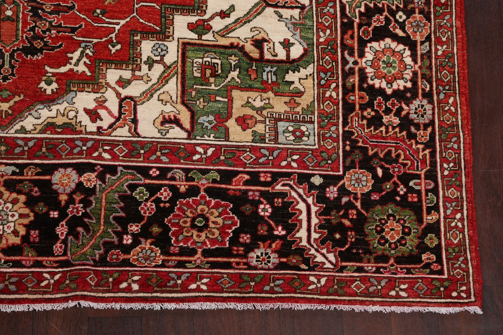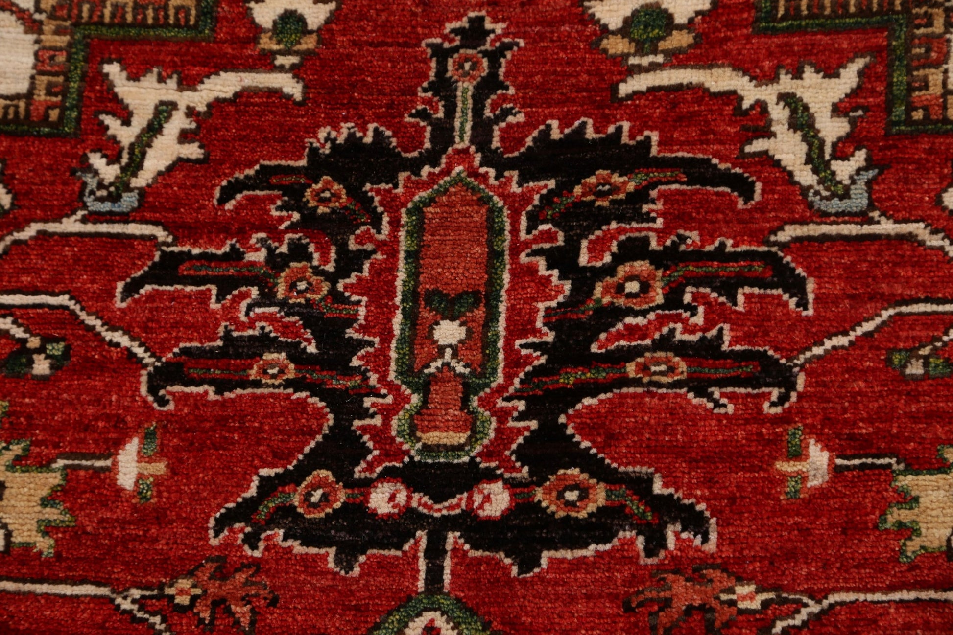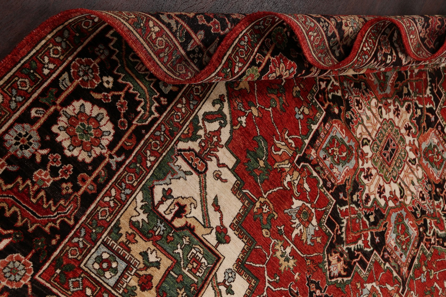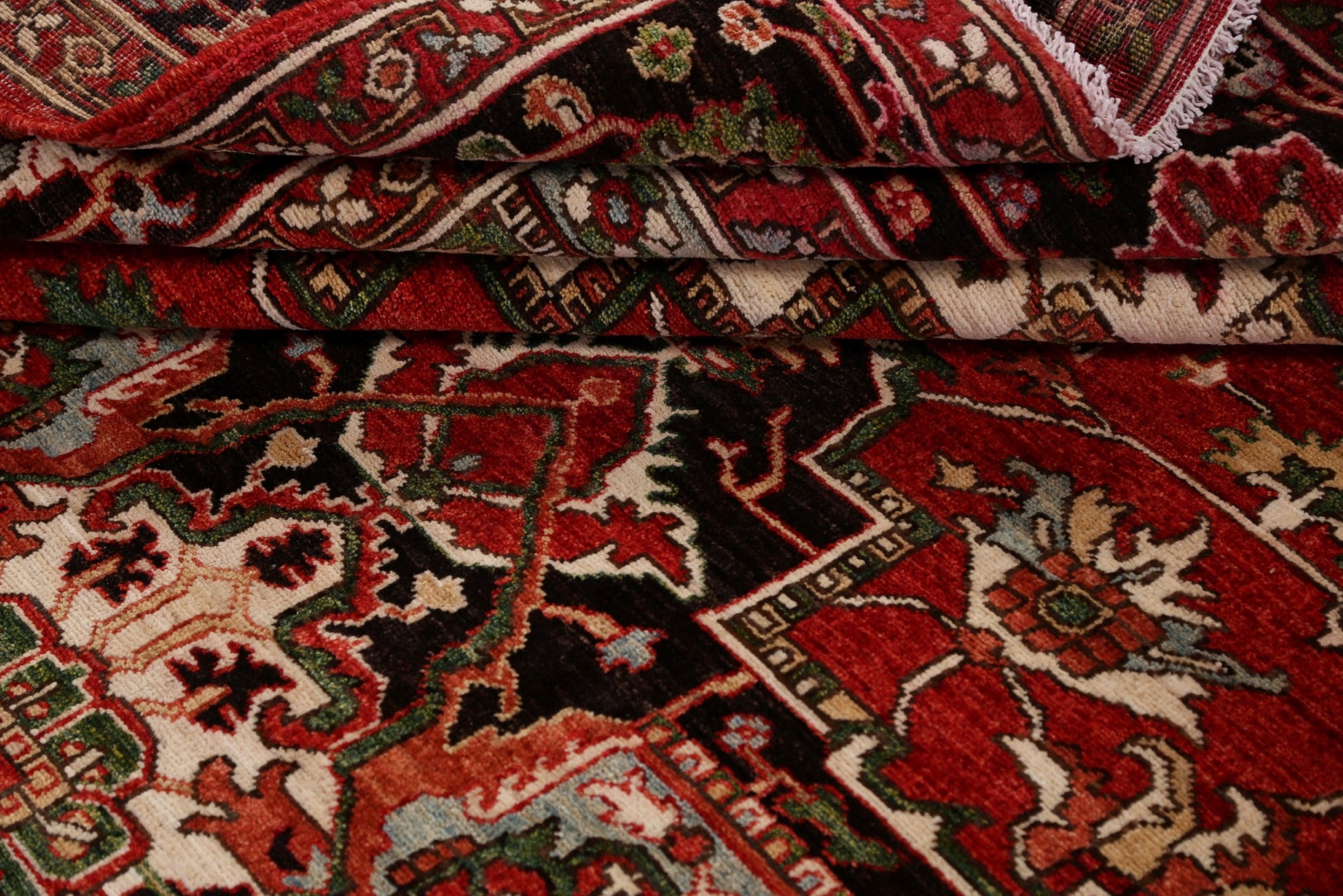 A Beautiful Genuine Pakistan Heriz (serapi) rug is Hand Knotted by skillful weavers in Pakistan with 100% Wool Material. This rug is in New, First Quality condition. dimensions are 9' 6'' X 8' 0'' in foot and 290 X 244 in centimeter. the primary color is Red.