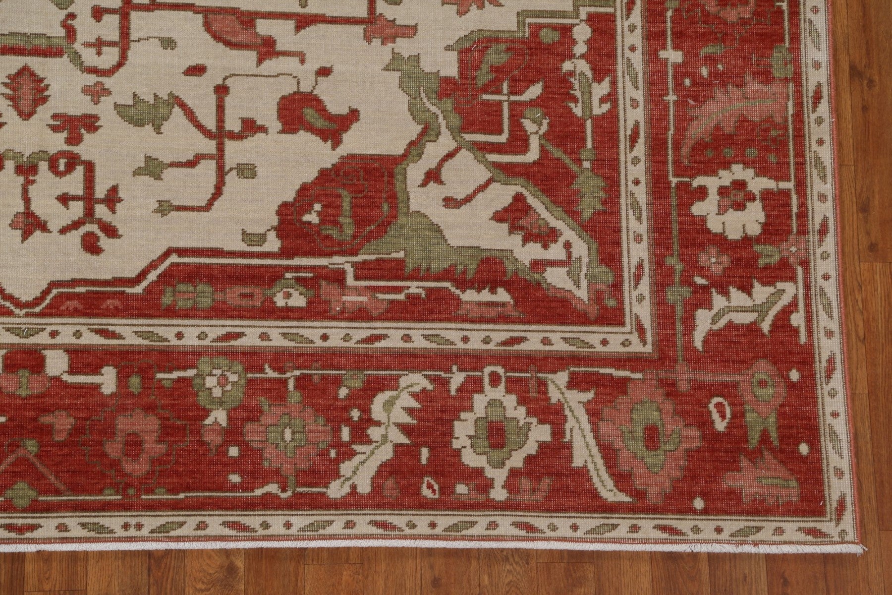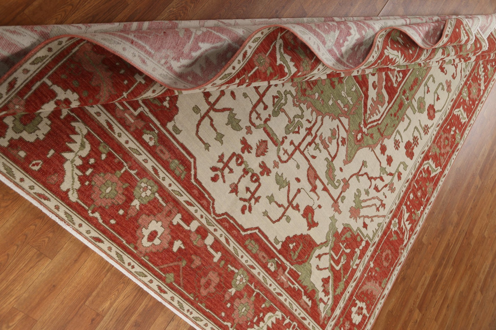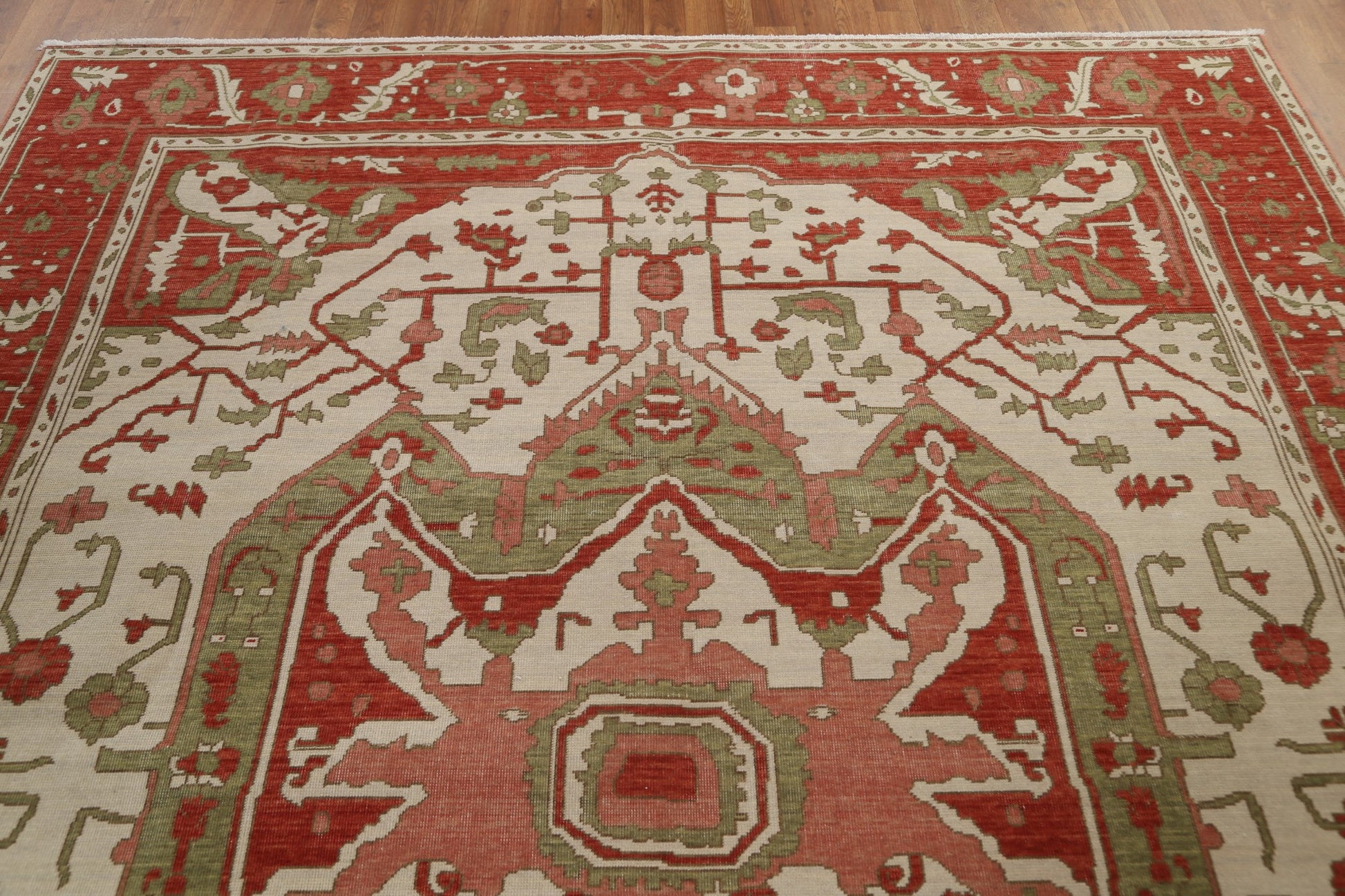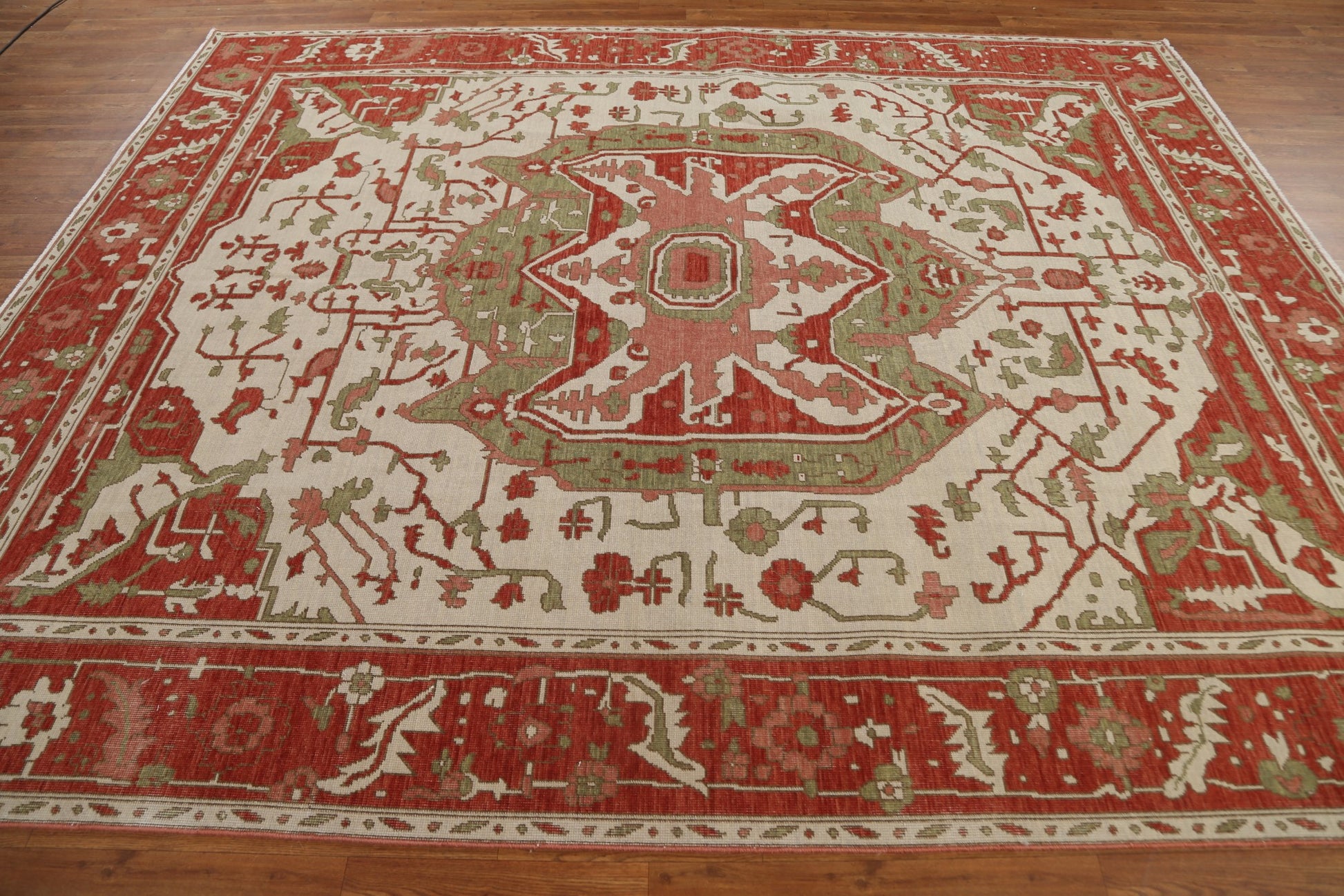 A Beautiful Genuine Turkey Heriz (serapi) rug is Hand Knotted by skillful weavers in Turkey with 100% Wool Material. This rug is in New, First Quality condition. dimensions are 9' 9'' X 8' 0'' in foot and 297 X 244 in centimeter. the primary color is Beige & Ivories.