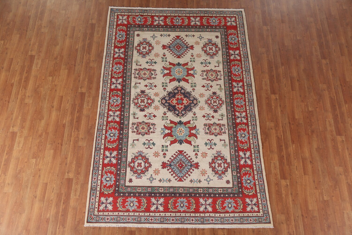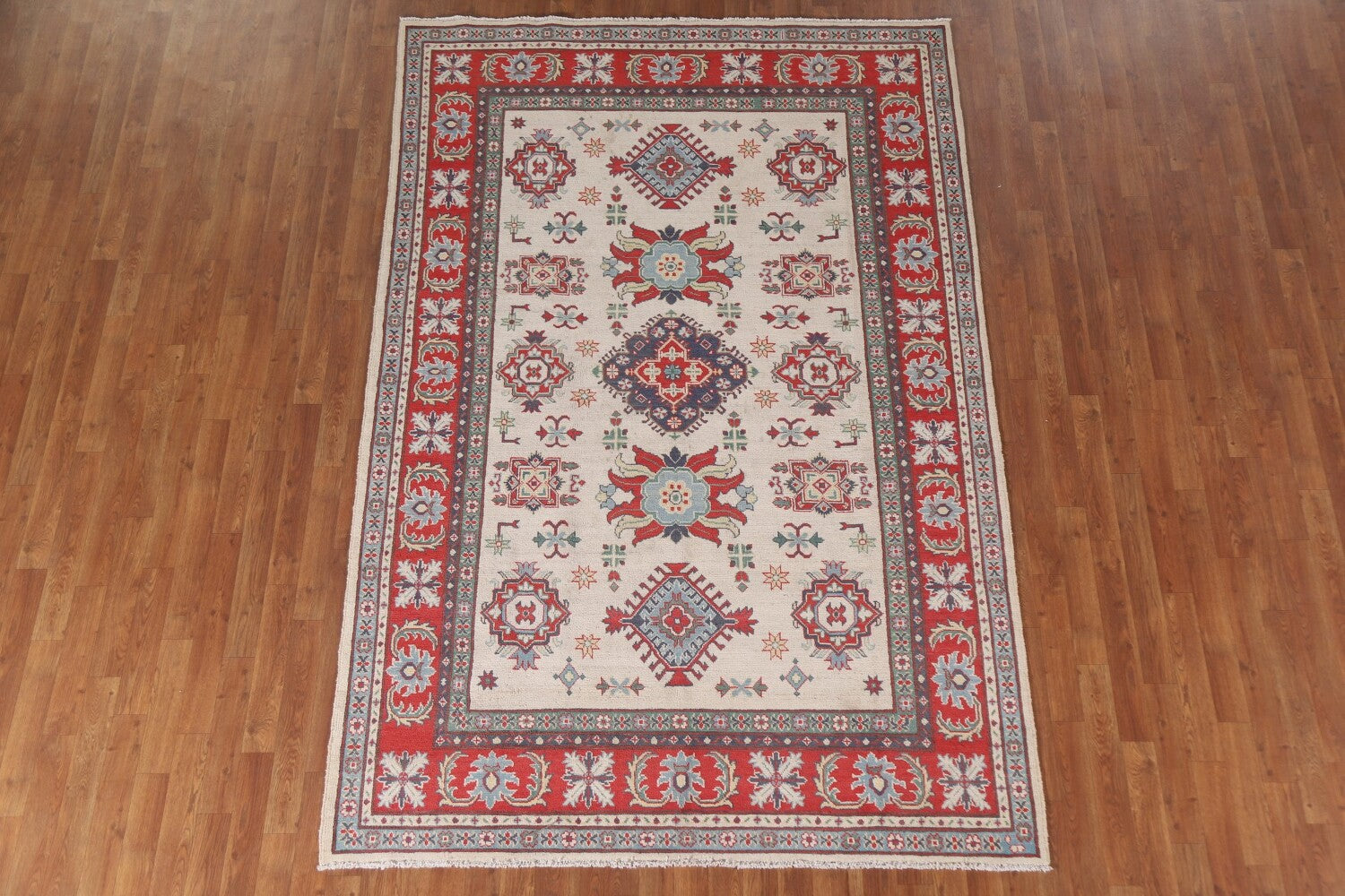 Geometric Ivory Kazak Oriental Area Rug 6x9
