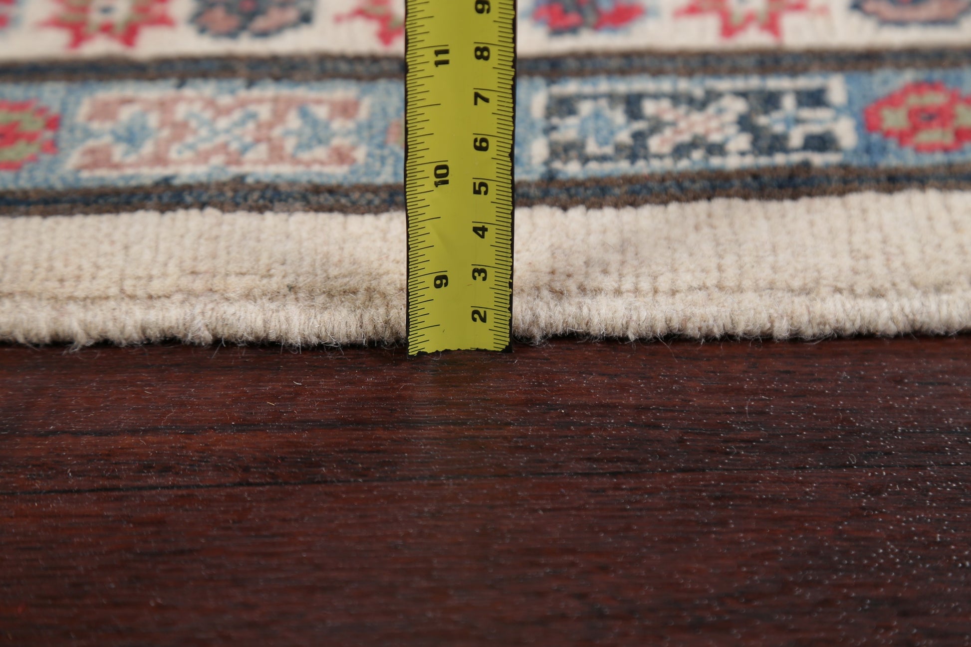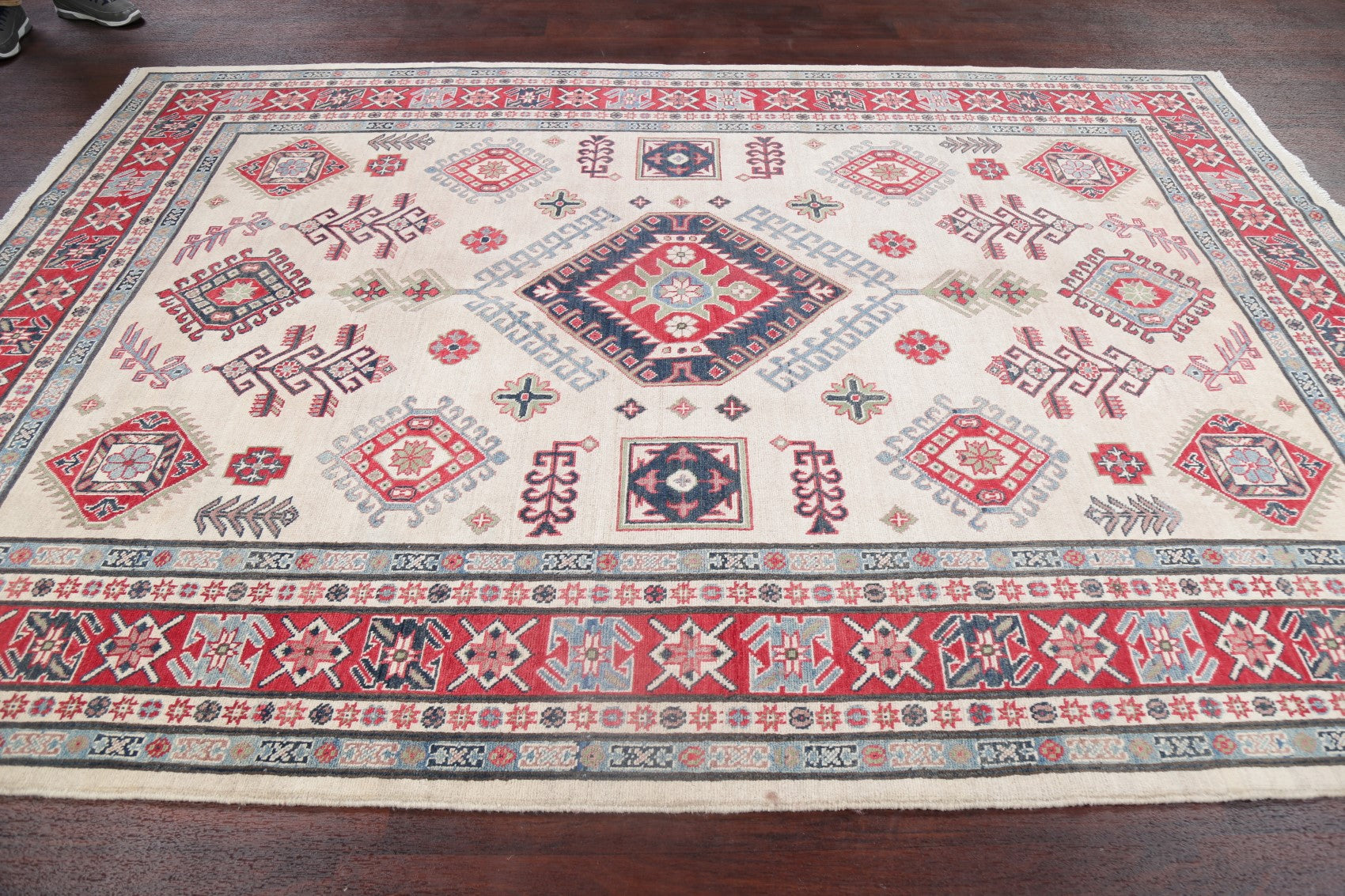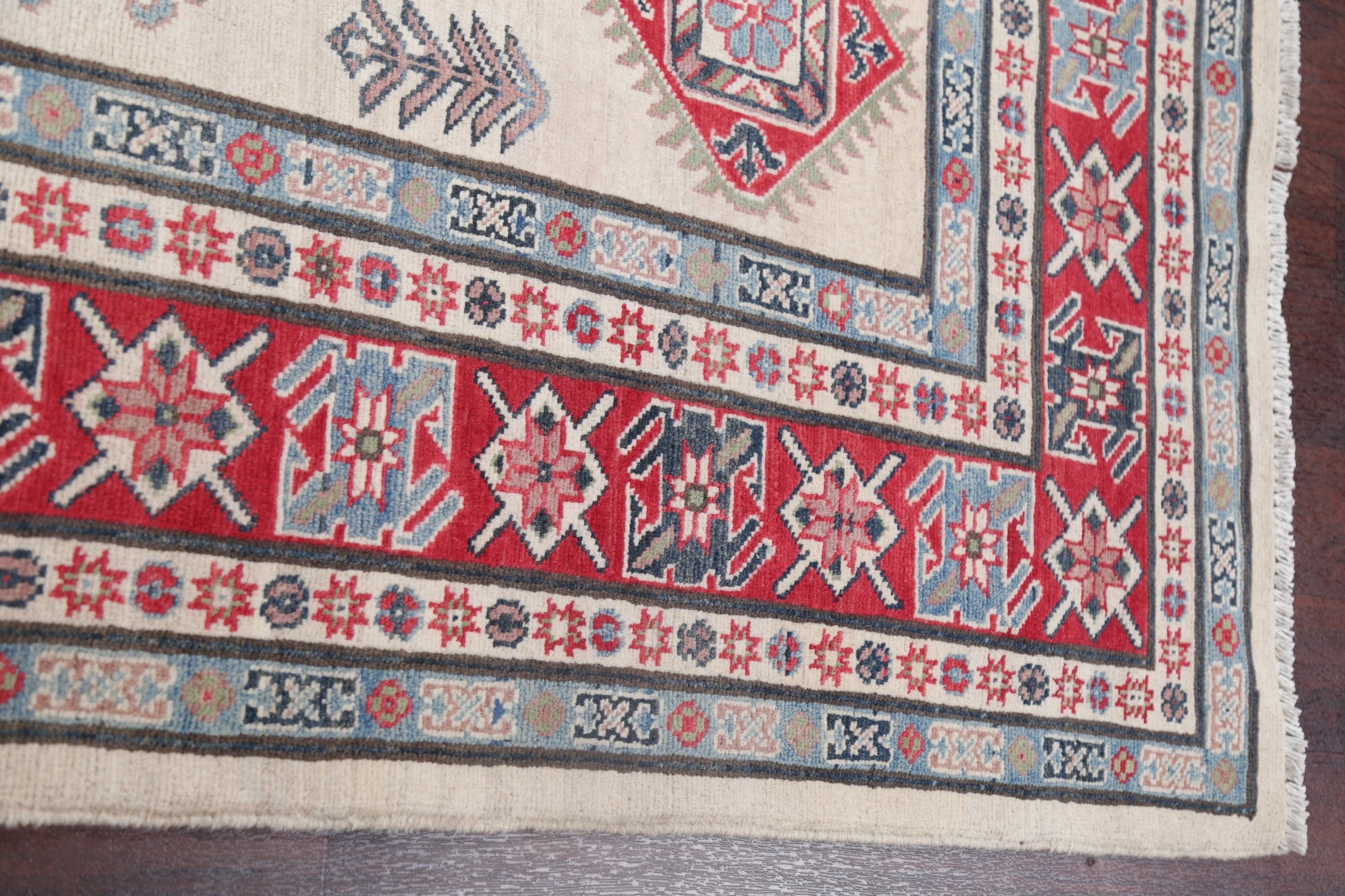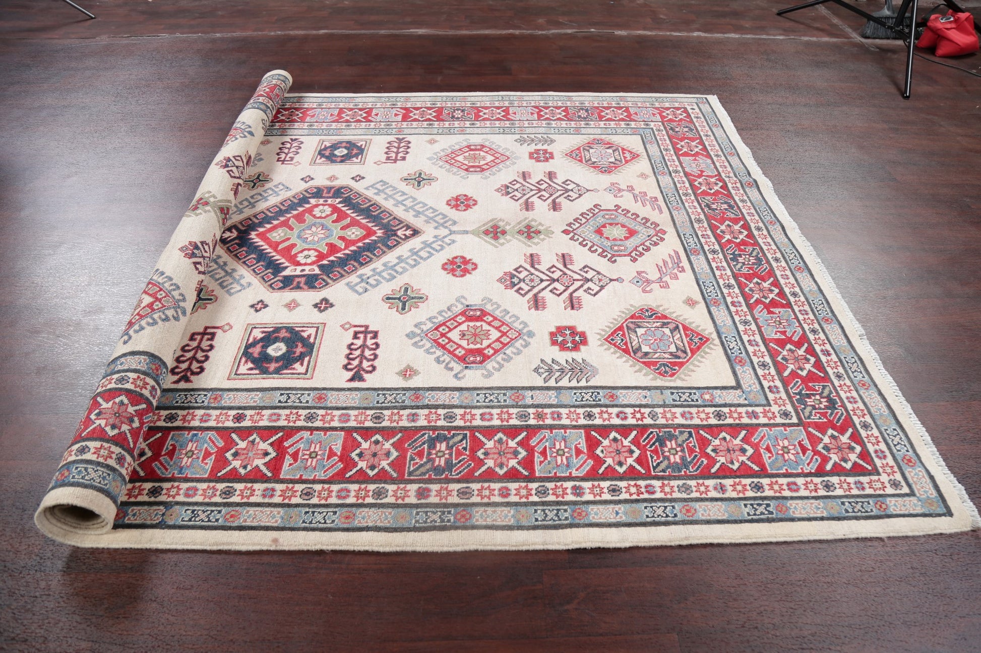Geometric Ivory Super Kazak Oriental Wool Area Rug 7x9