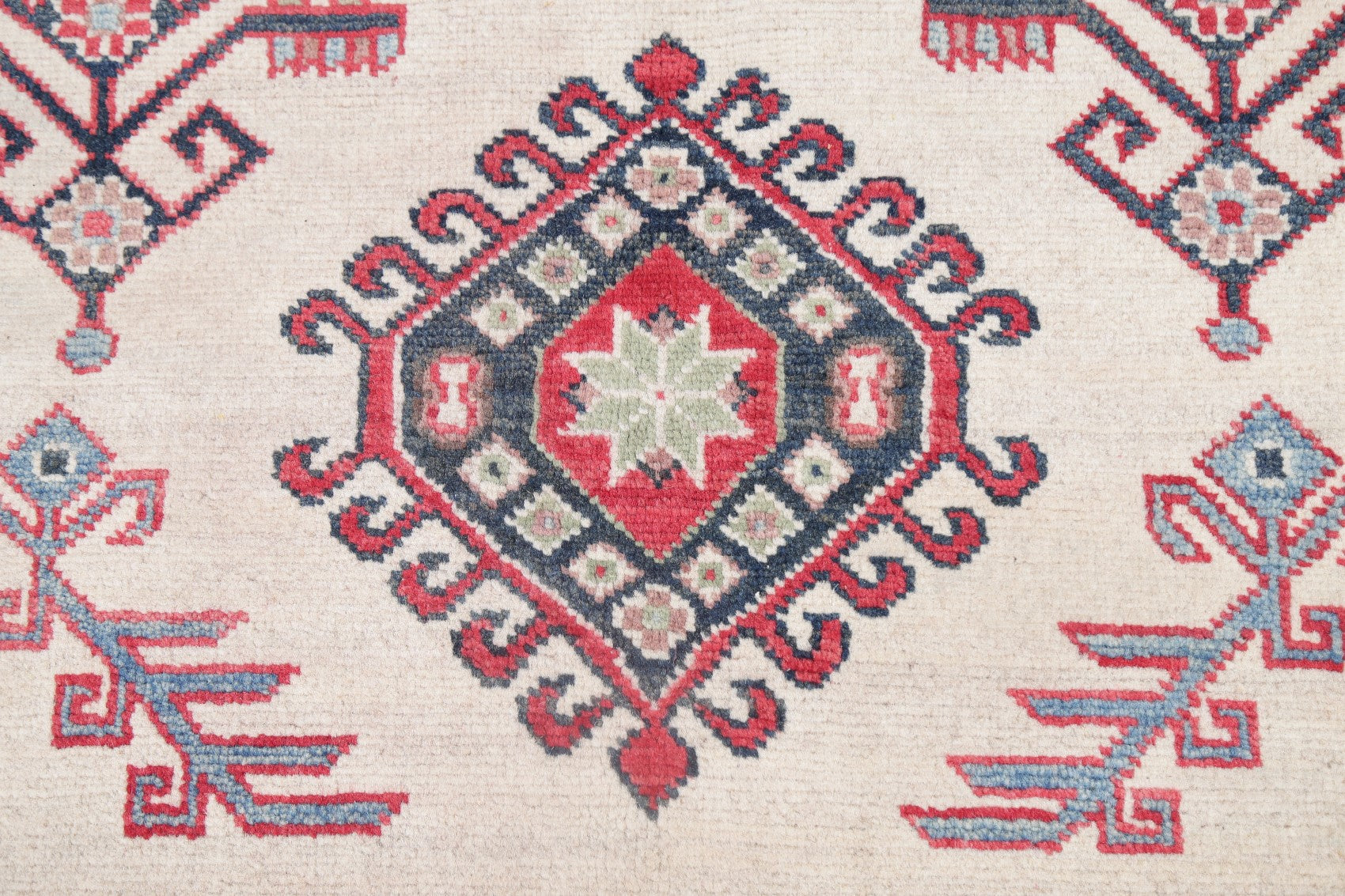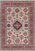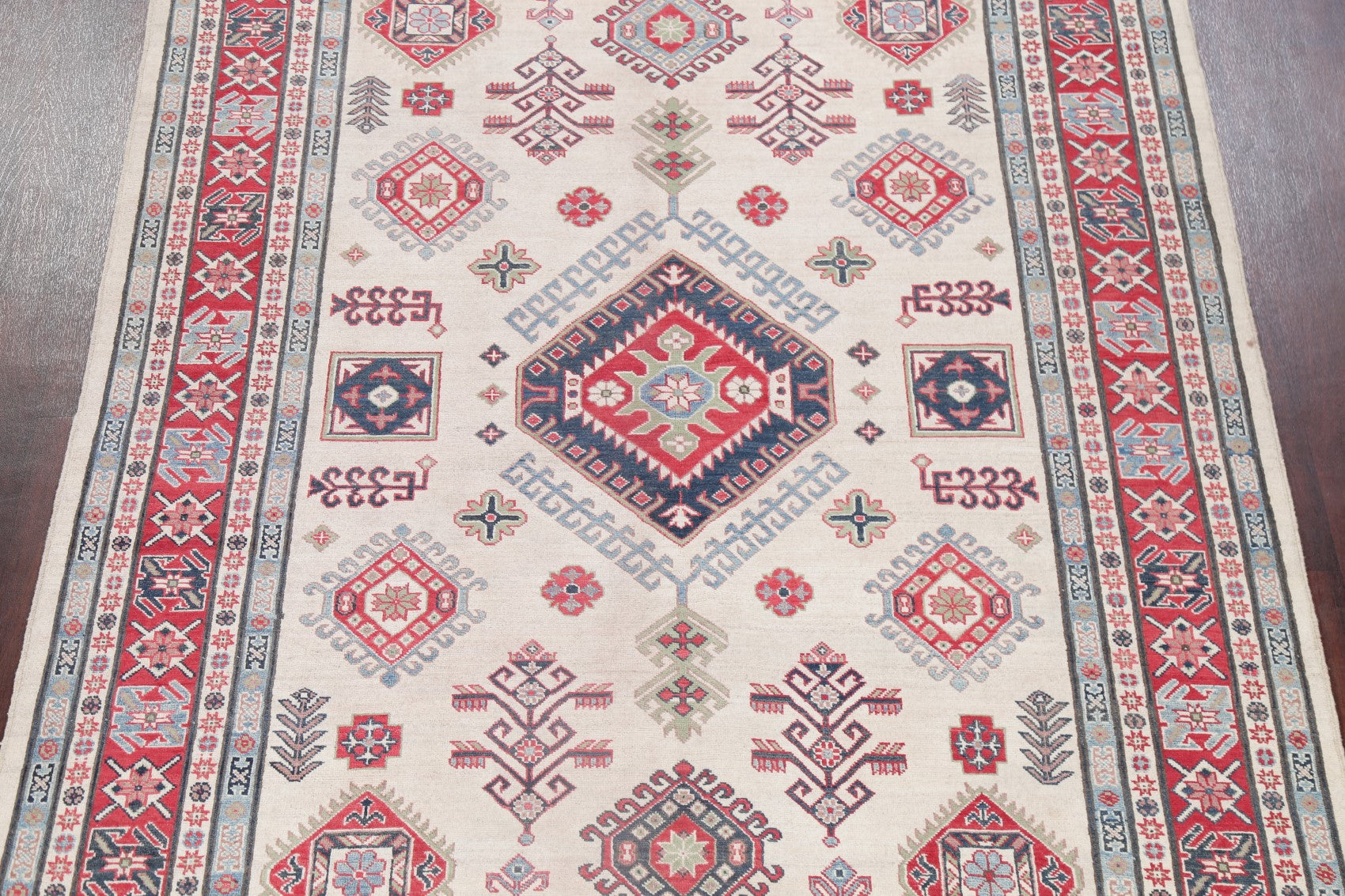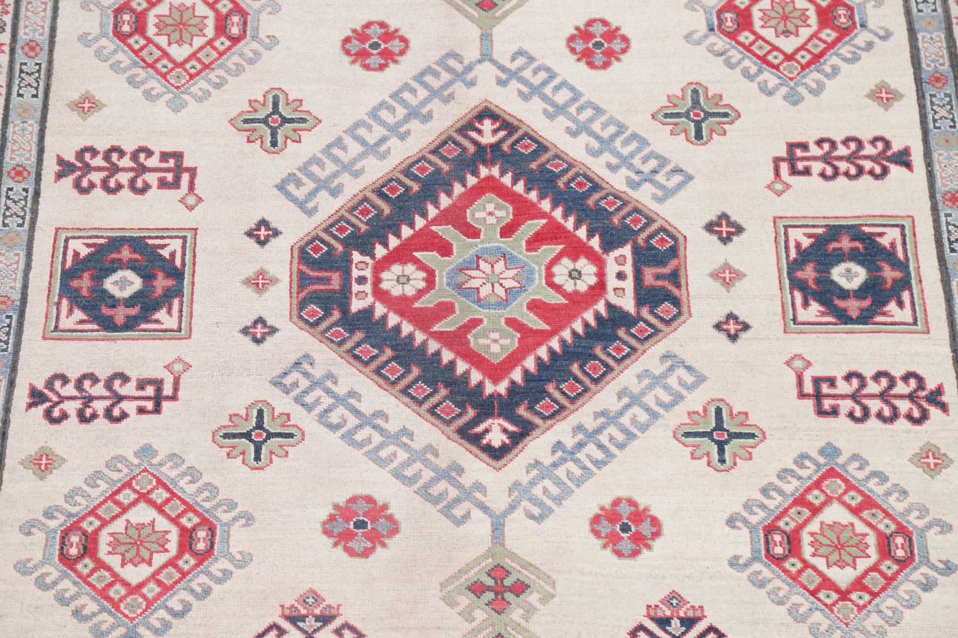 Geometric Ivory Super Kazak Oriental Wool Area Rug 7x9