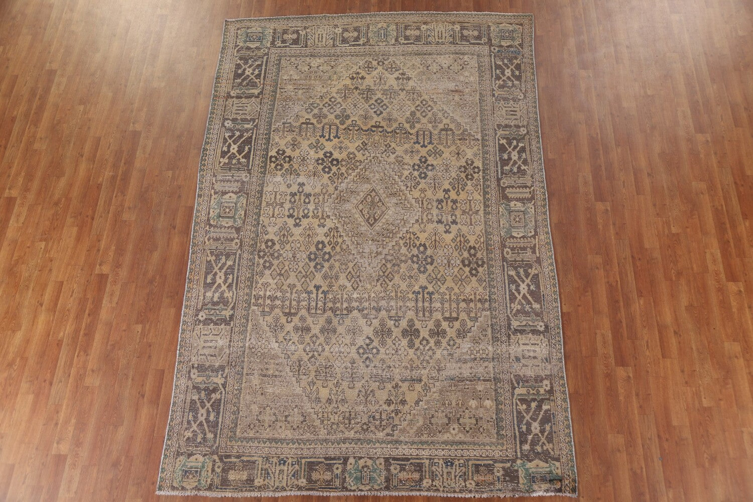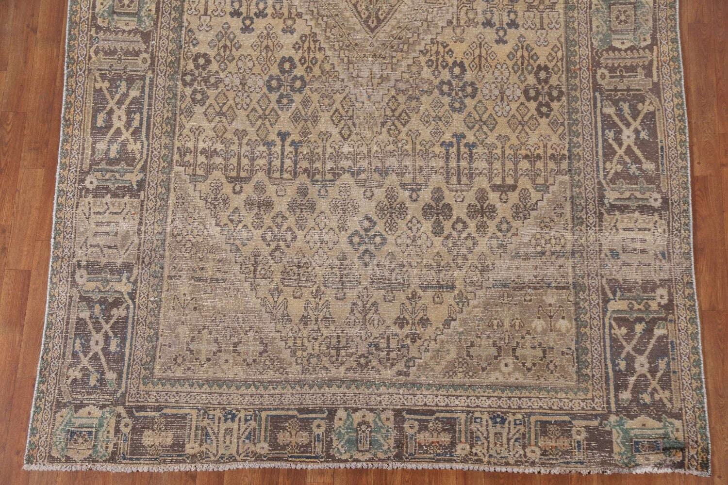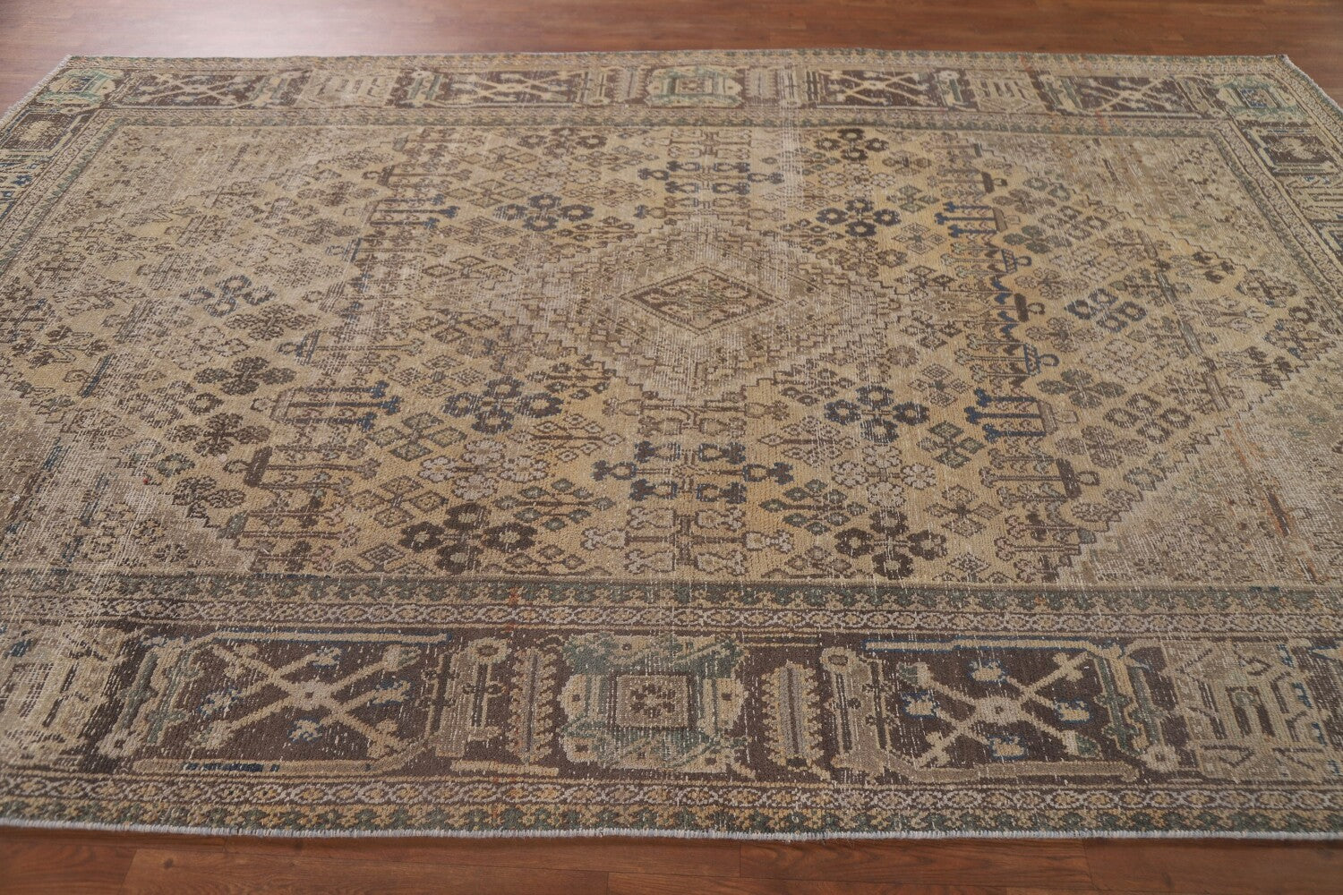 A Beautiful Genuine Persia ( Persia ) Joshaghan rug is Hand Knotted by skillful weavers in Persia ( Persia ) with 100% Wool Material. This rug is in Very Good (Repair) condition. dimensions are 10' 5'' X 6' 10'' in foot and 318 X 208 in centimeter. the primary color is Peach.