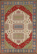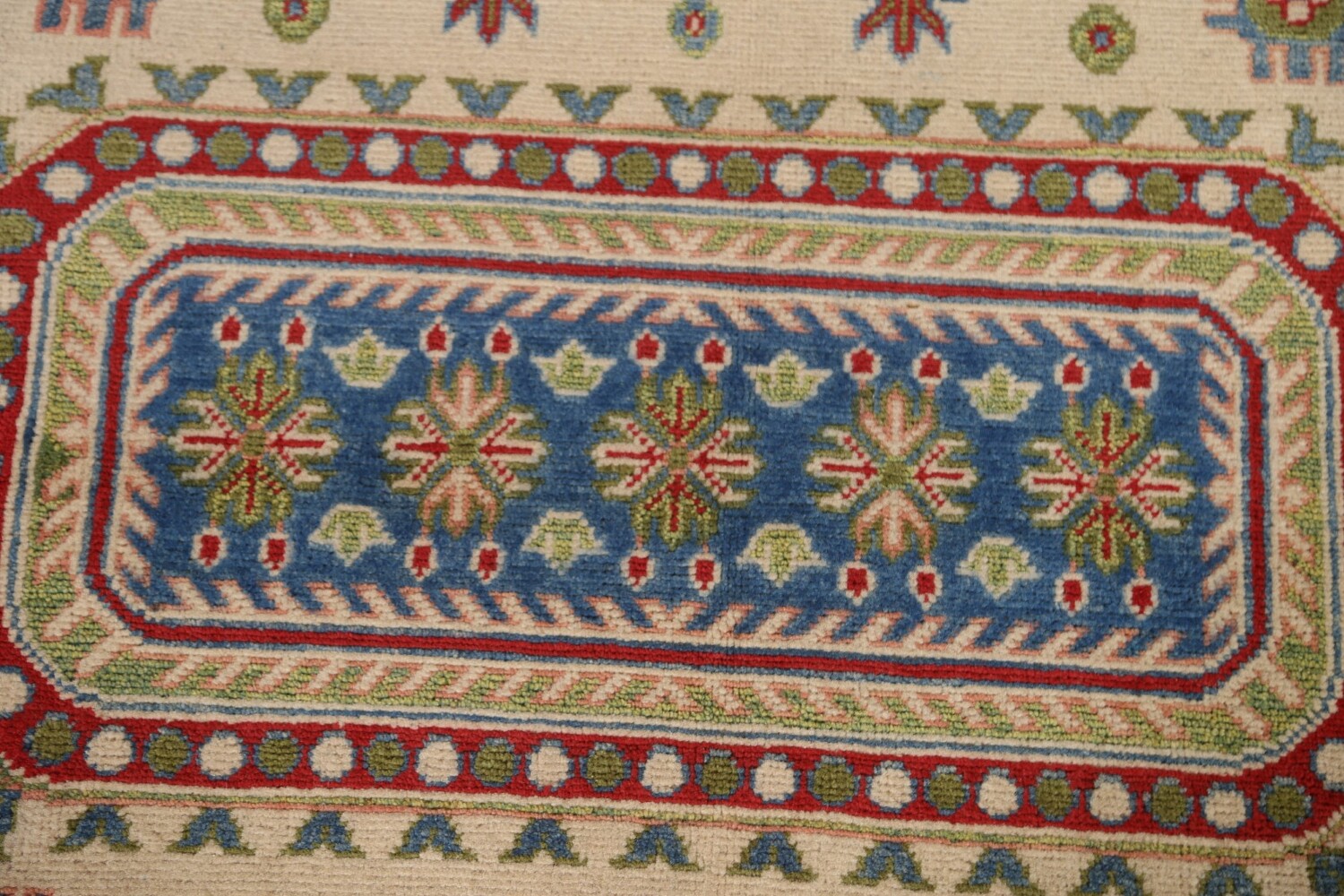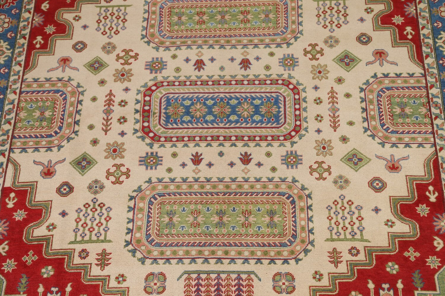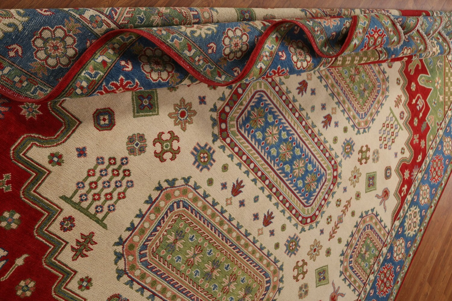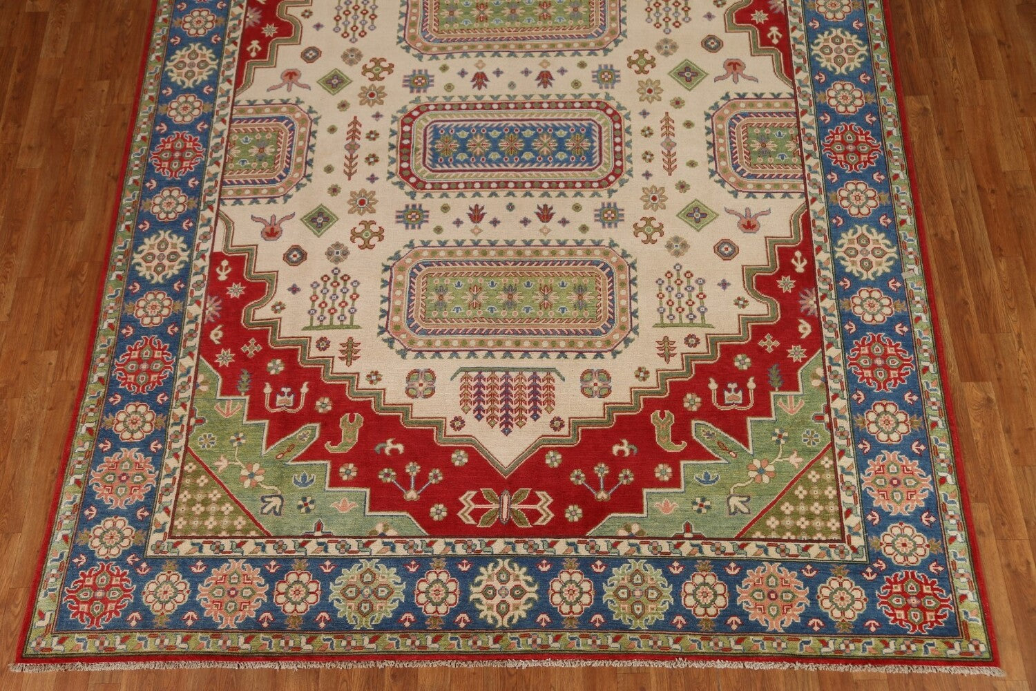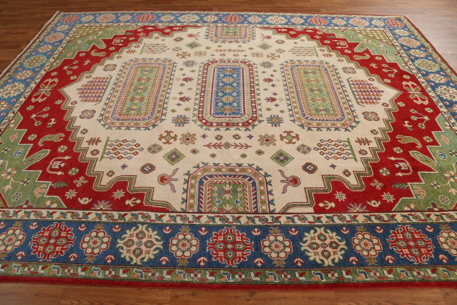A Beautiful Genuine Pakistan Kazak rug is Hand Knotted by skillful weavers in Pakistan with 100% Wool Material. This rug is in New, First Quality condition. dimensions are 10' 5'' X 8' 3'' in foot and 318 X 251 in centimeter. the primary color is Beige & Ivories.