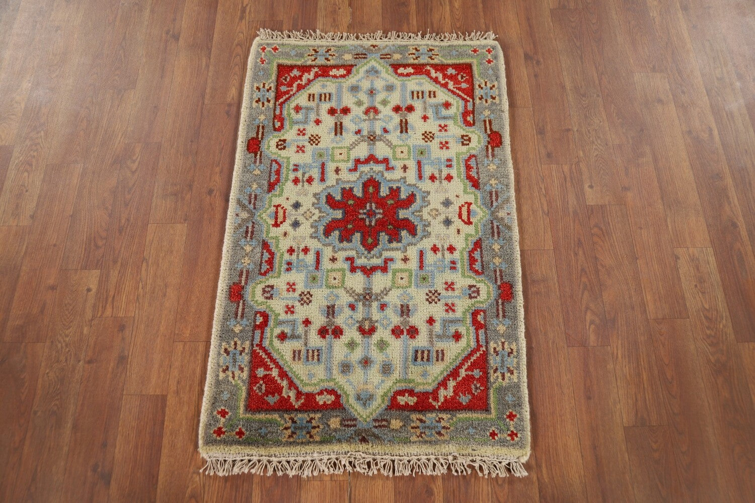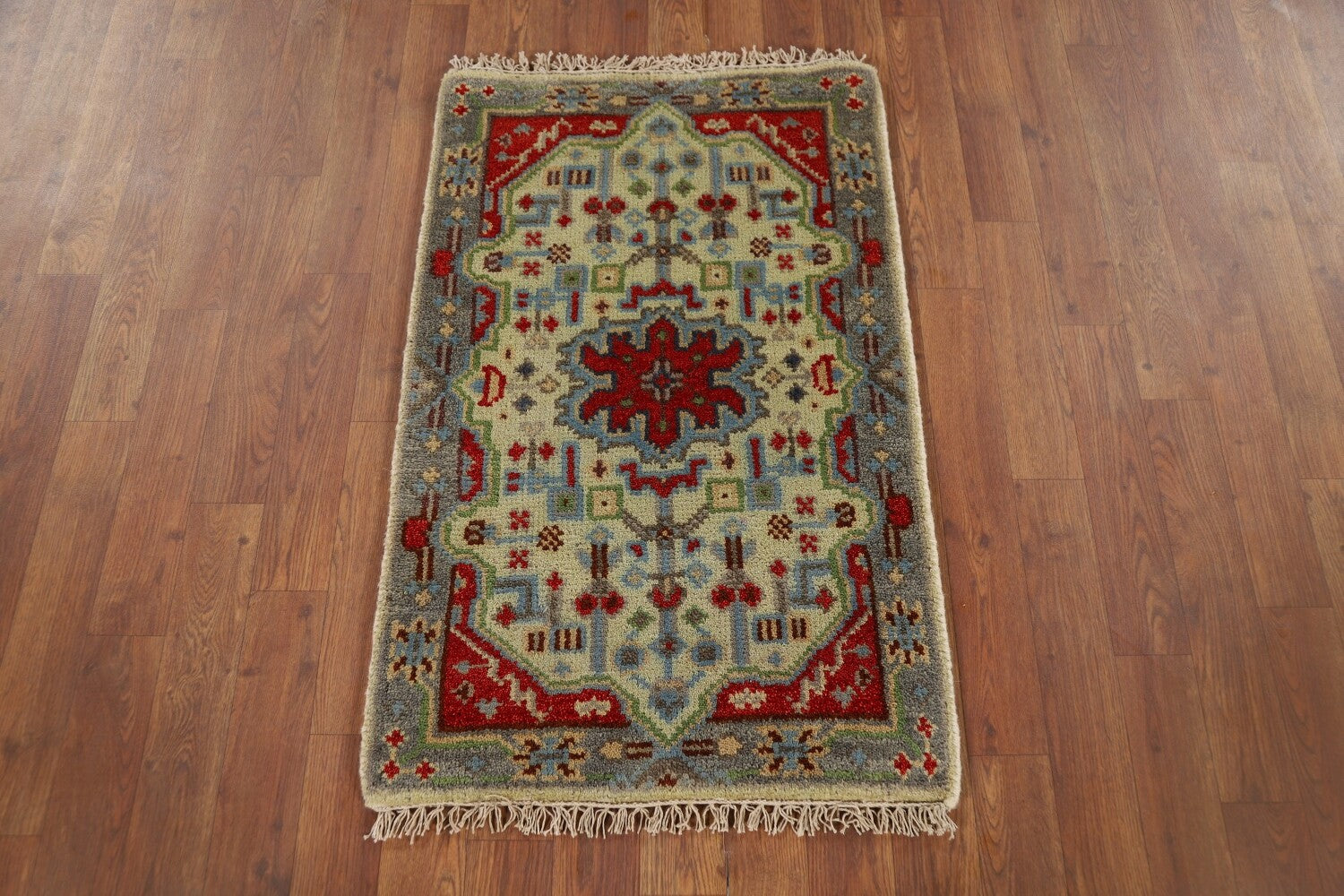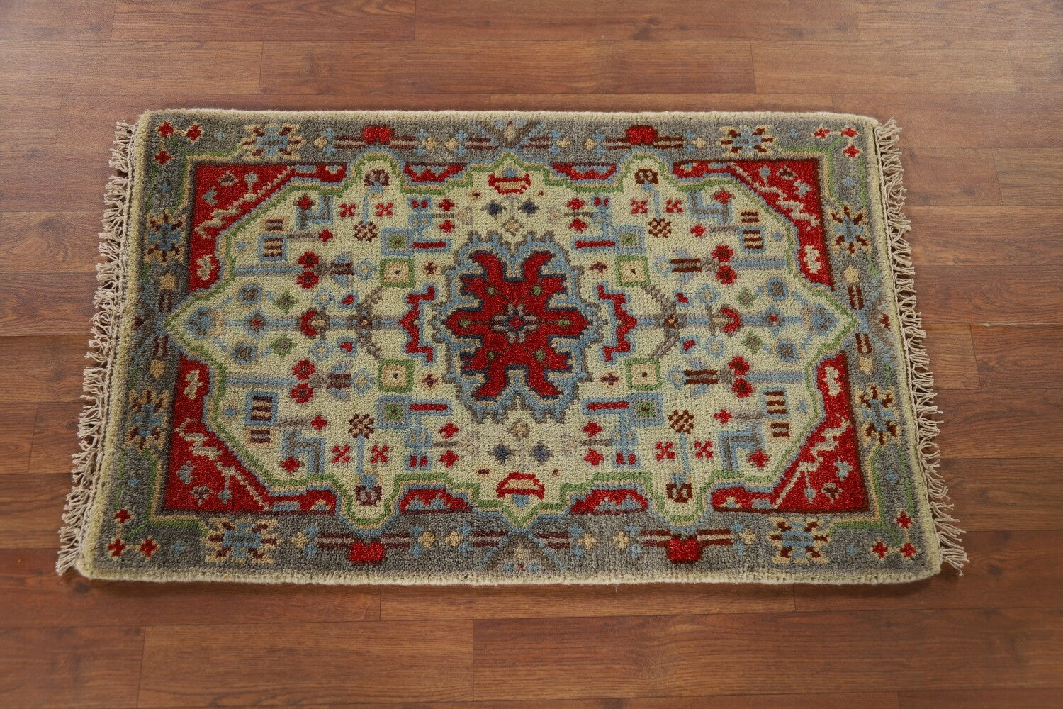 A Beautiful Genuine India Kazak rug is Hand Knotted by skillful weavers in India with 100% Wool Material. This rug is in New, First Quality condition. dimensions are 3' 0'' X 2' 0'' in foot and 91 X 61 in centimeter. the primary color is Green.