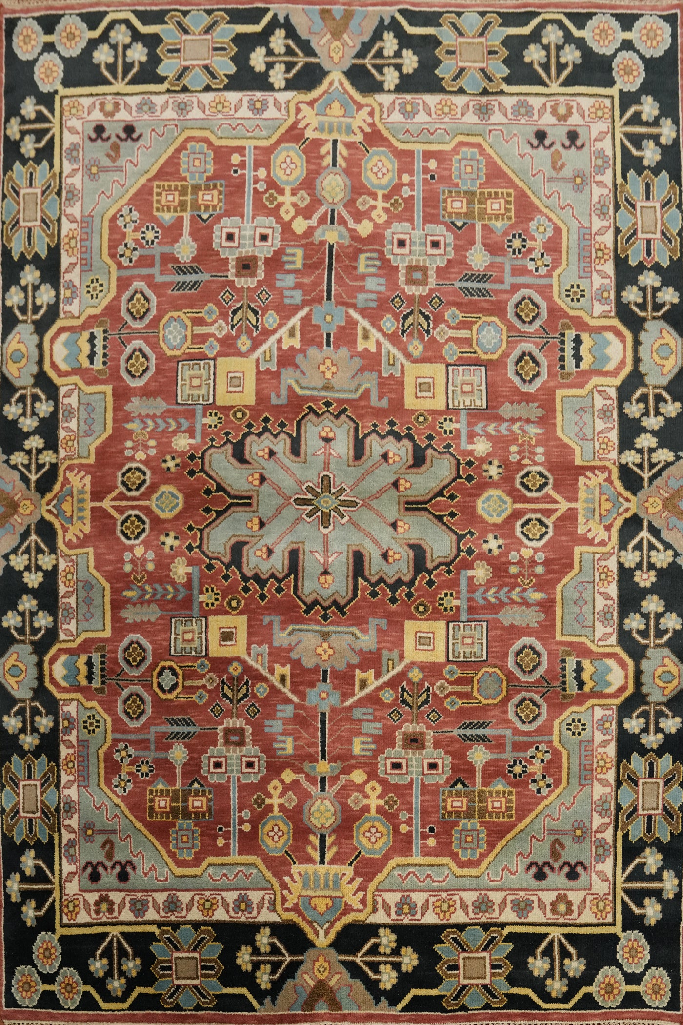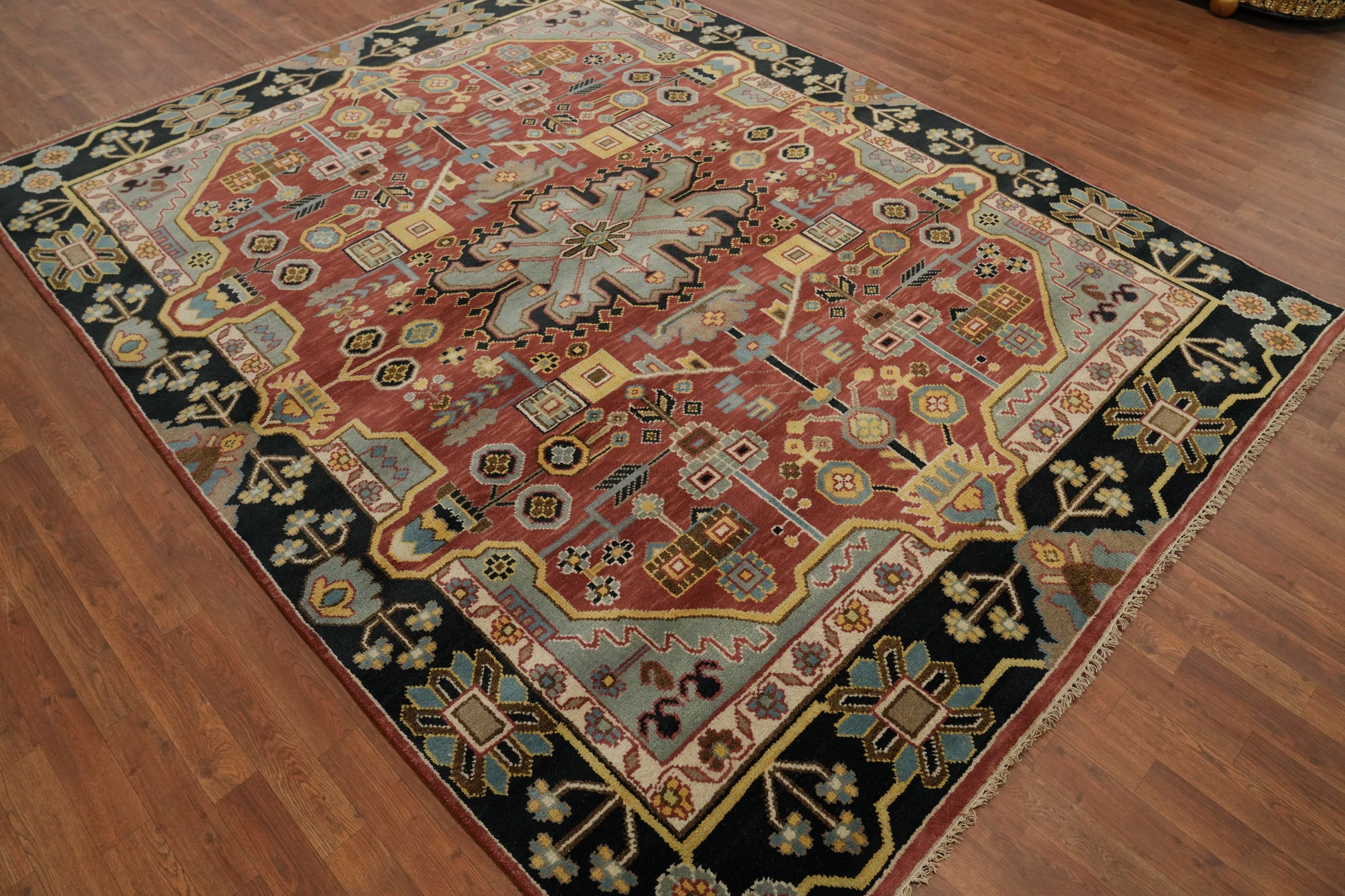 A Beautiful Genuine India Kazak rug is Hand Knotted by skillful weavers in India with 100% Wool Material. This rug is in New, First Quality condition. dimensions are 9' 11'' X 7' 10'' in foot and  302 X 239 in centimeter. the primary color is Oranges & Rust.