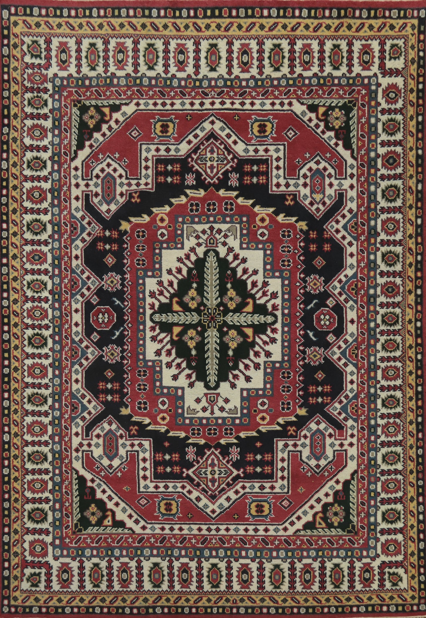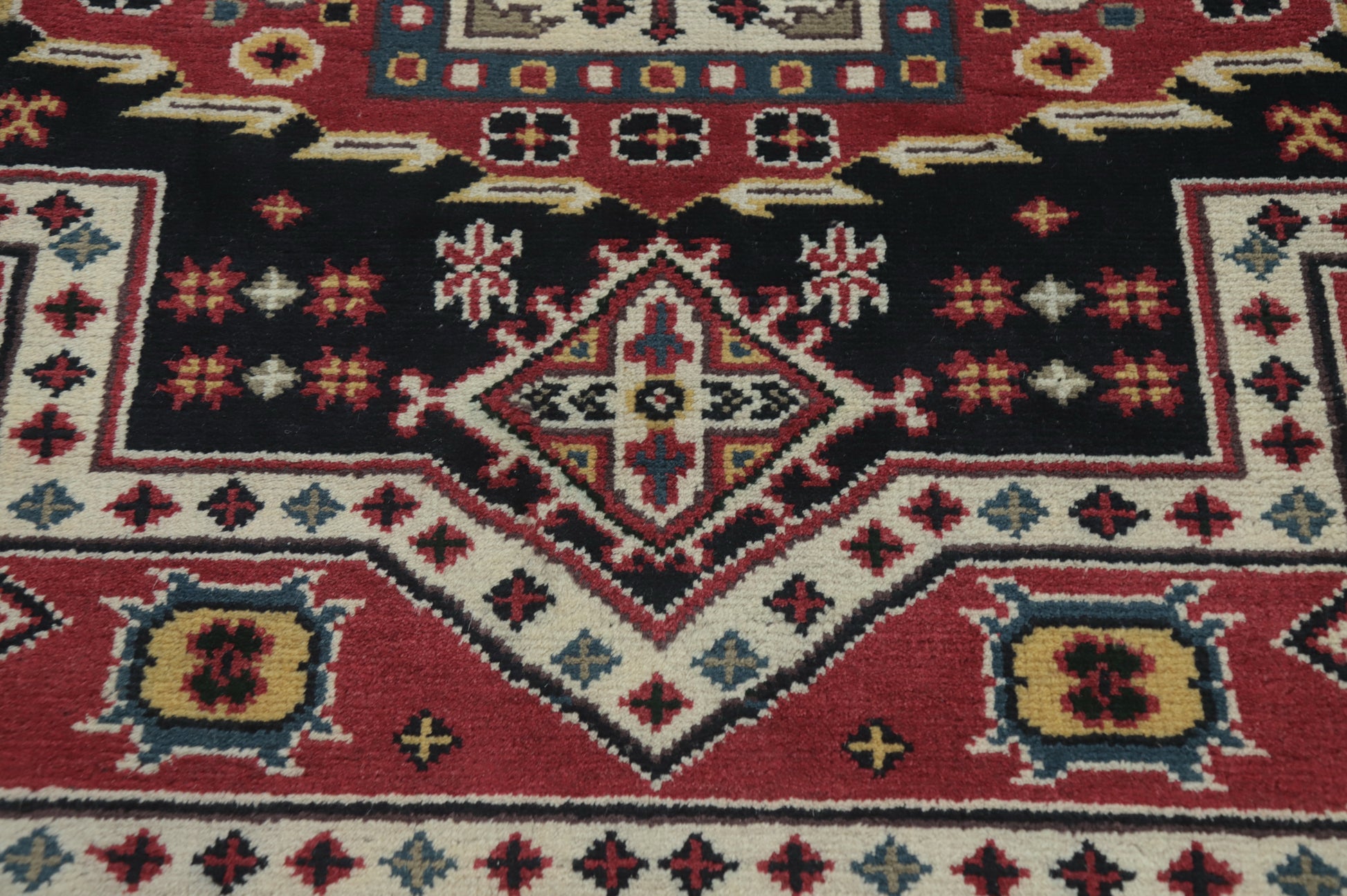 A Beautiful Genuine India Kazak rug is Hand Knotted by skillful weavers in India with 100% Wool Material. This rug is in New, First Quality condition. dimensions are 11' 9'' X 8' 9'' in foot and 358 X 267 in centimeter. the primary color is Black.