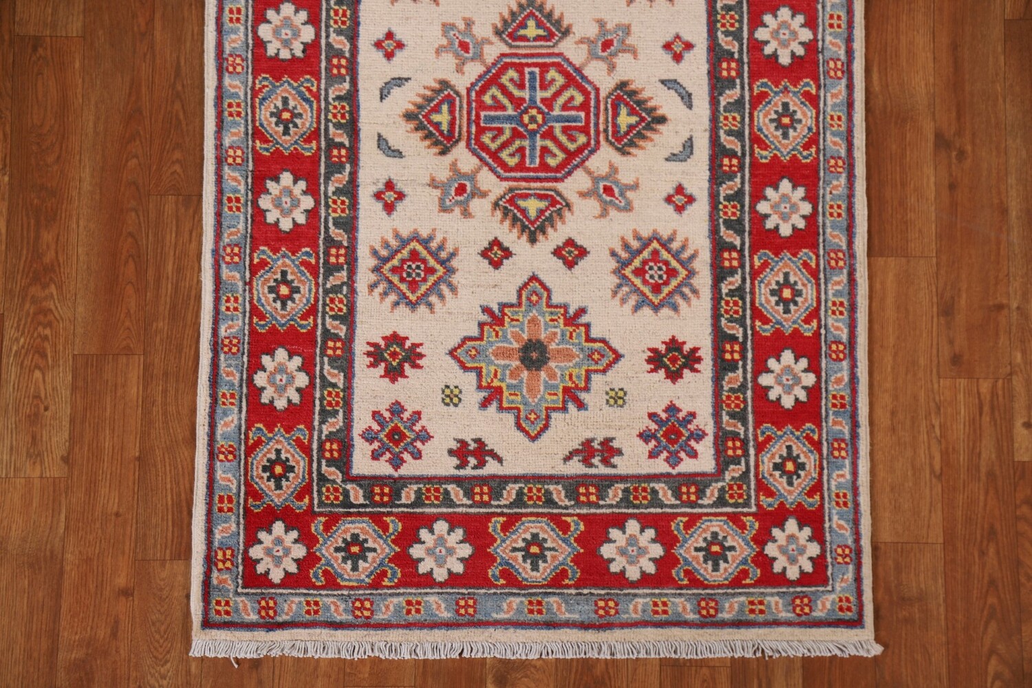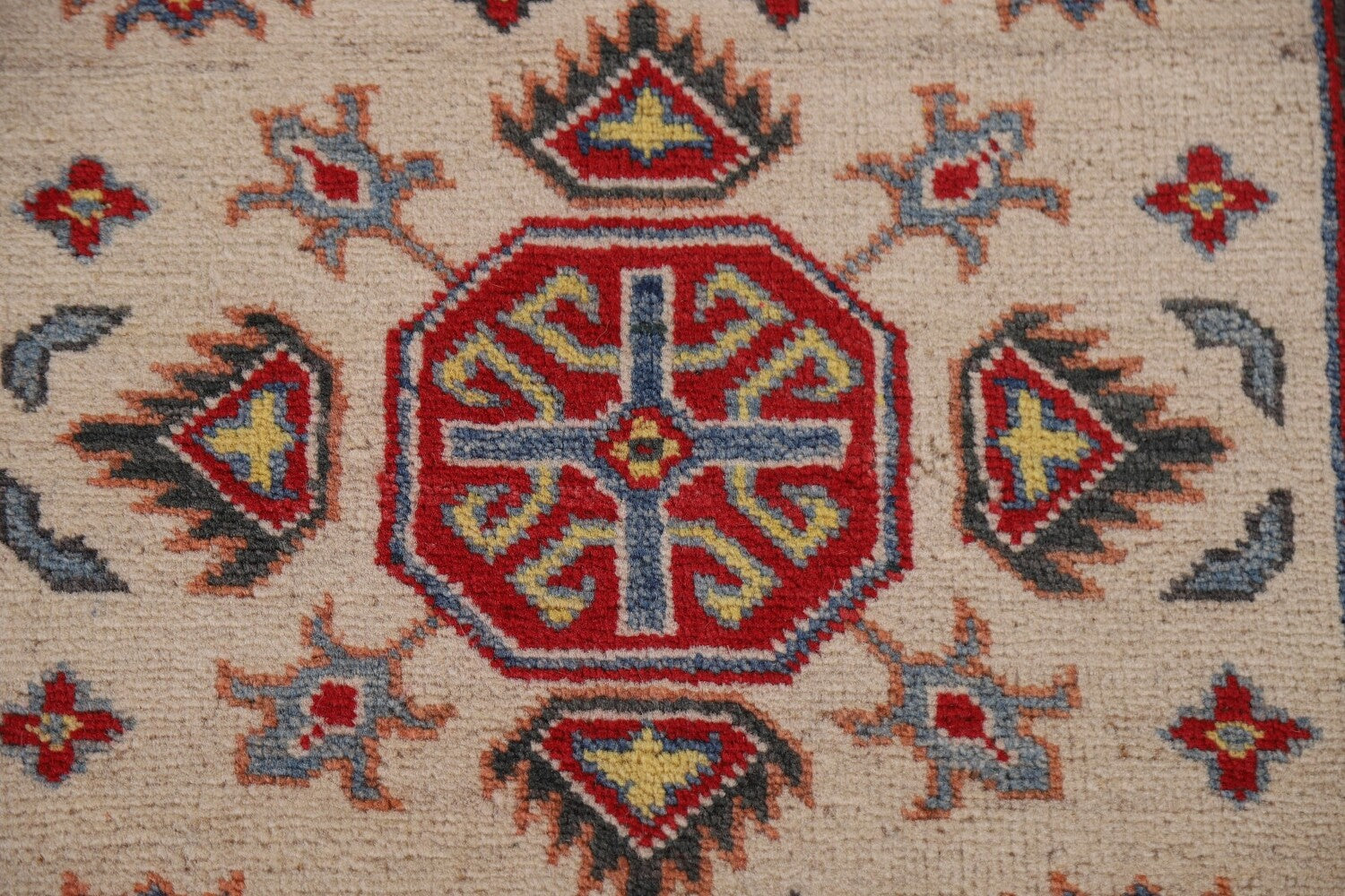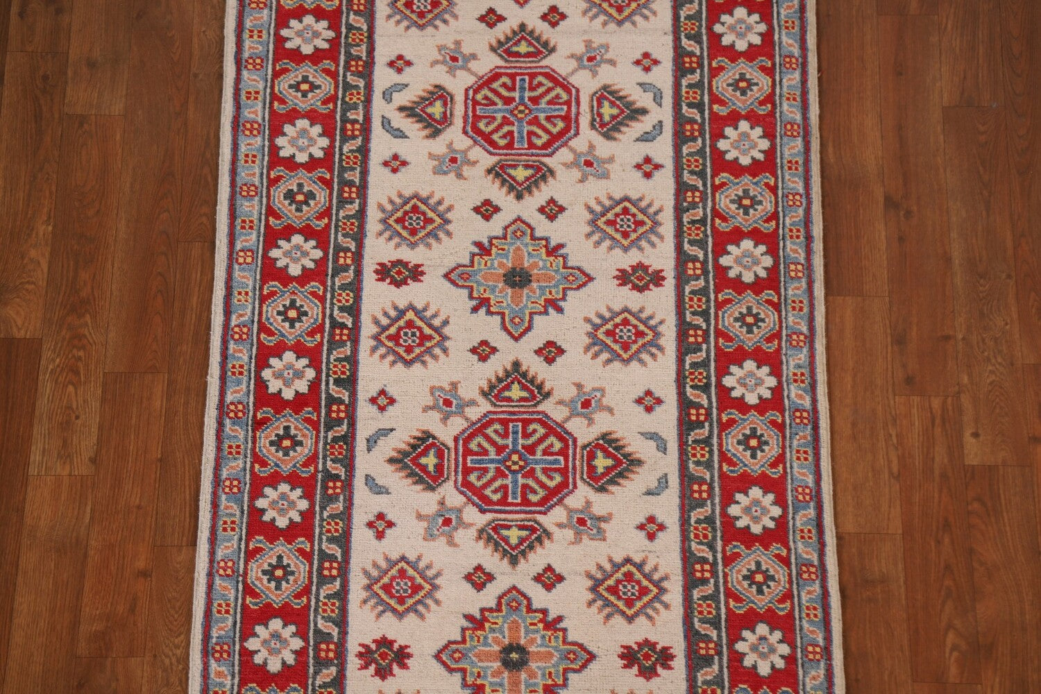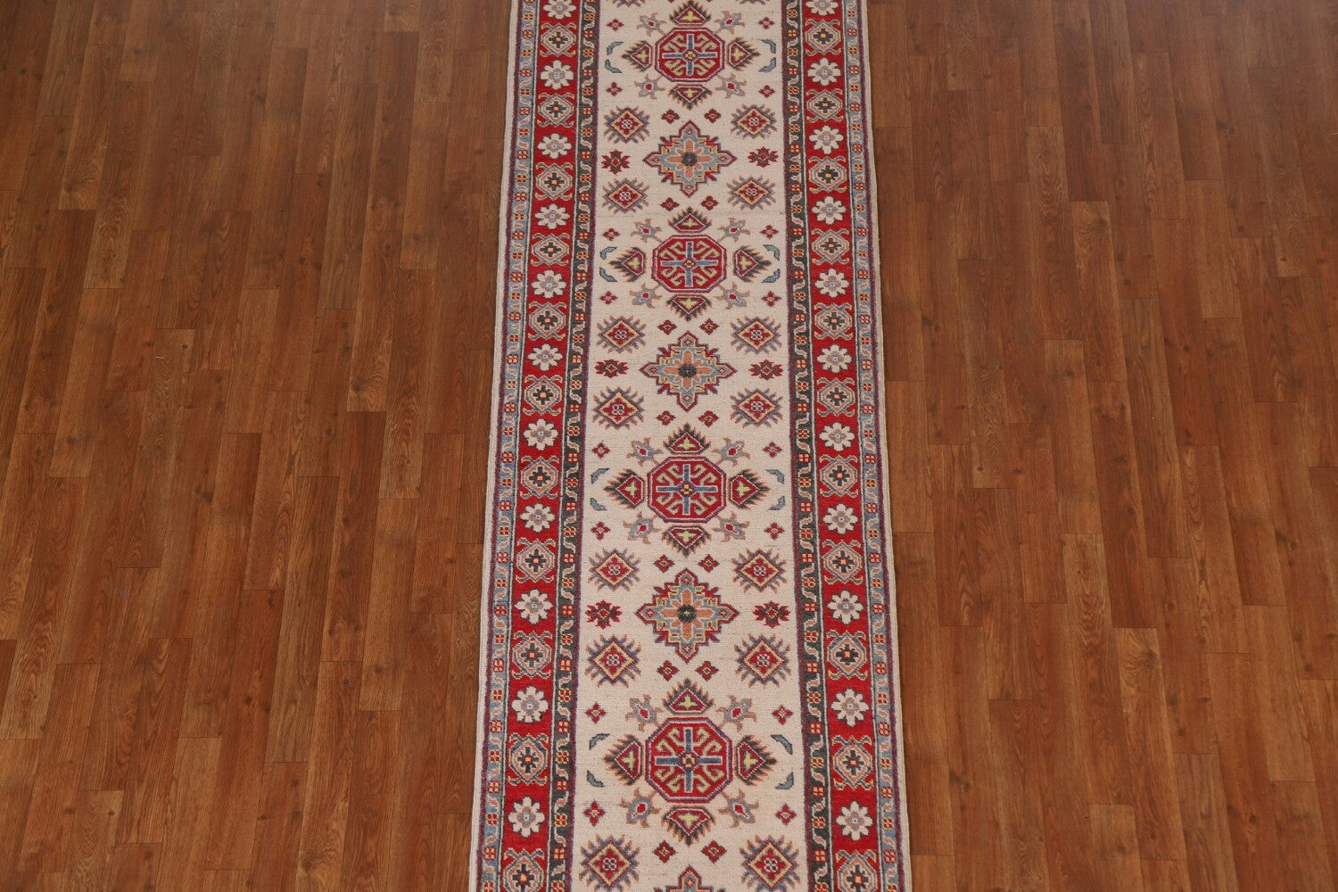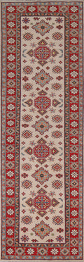 Geometric Kazak Ivory Runner Rug 3x10